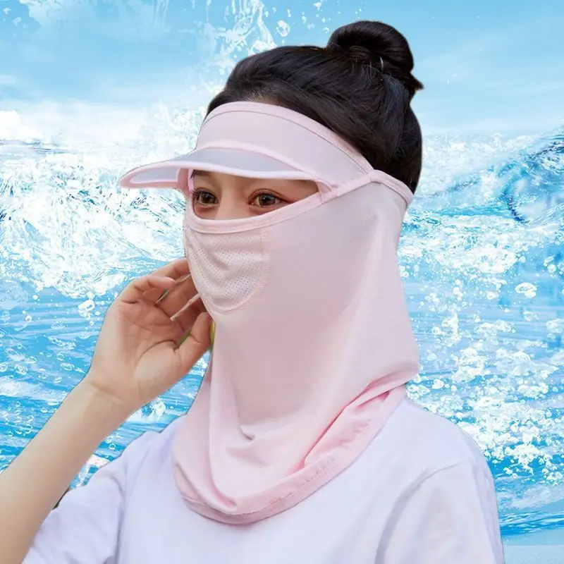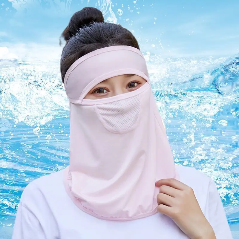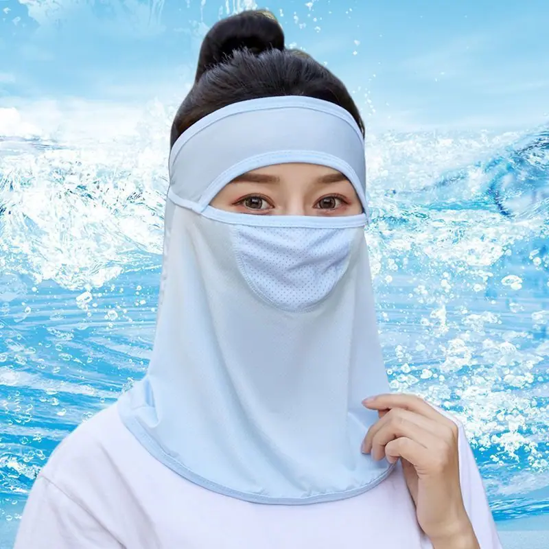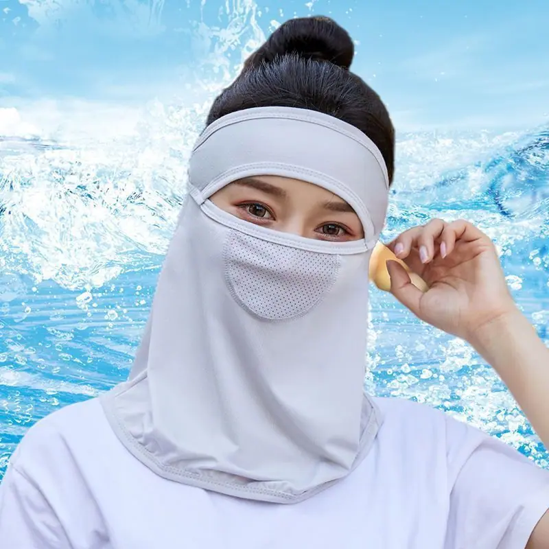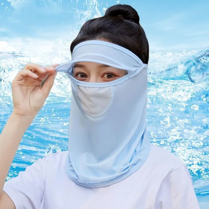 Protector Solar de Primavera y Verano Seda de Hielo Fina para Mujer Protección UV Sombrilla Facial Completa para Montar al Aire Libre Máscara Antipolvo Transpirable