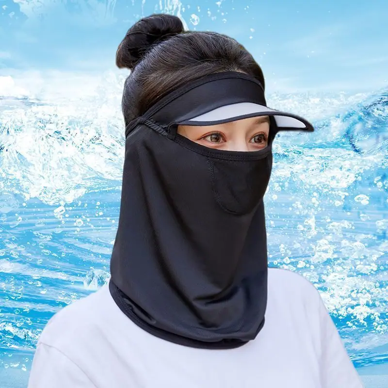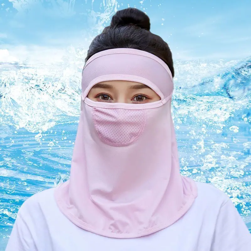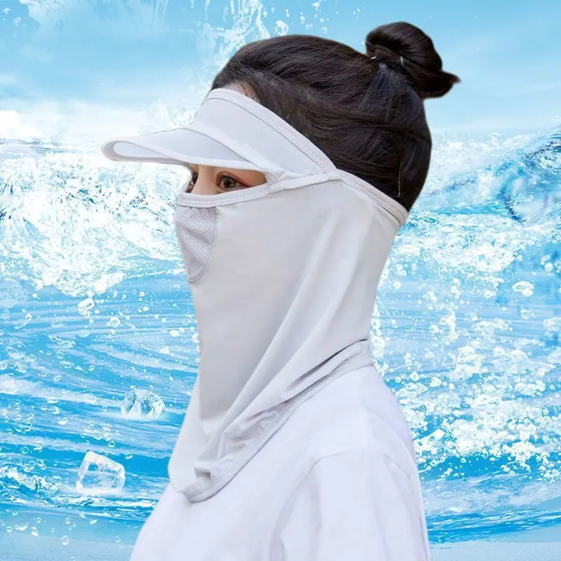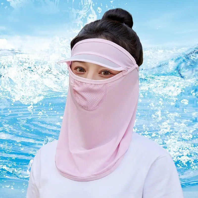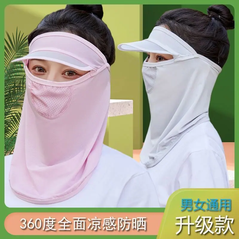 Protector Solar de Primavera y Verano Seda de Hielo Fina para Mujer Protección UV Sombrilla Facial Completa para Montar al Aire Libre Máscara Antipolvo Transpirable