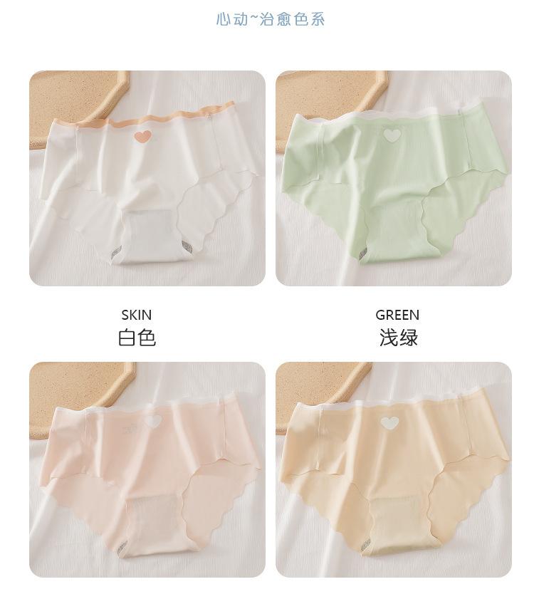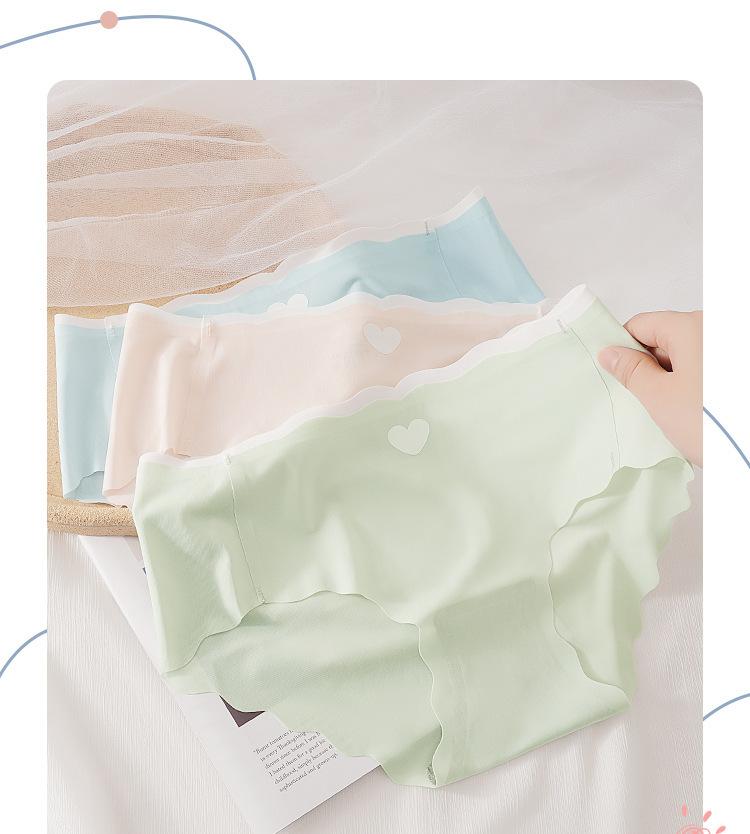 Ropa Interior Nueva Sin Costuras de Seda de Hielo para Mujer, Entrepierna de Algodón Puro Transpirable con Corazón, Talla Grande, Cintura Media, Calzoncillos Triangulares Delgados para Niñas