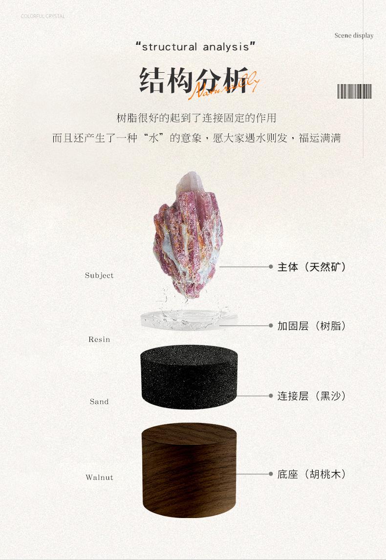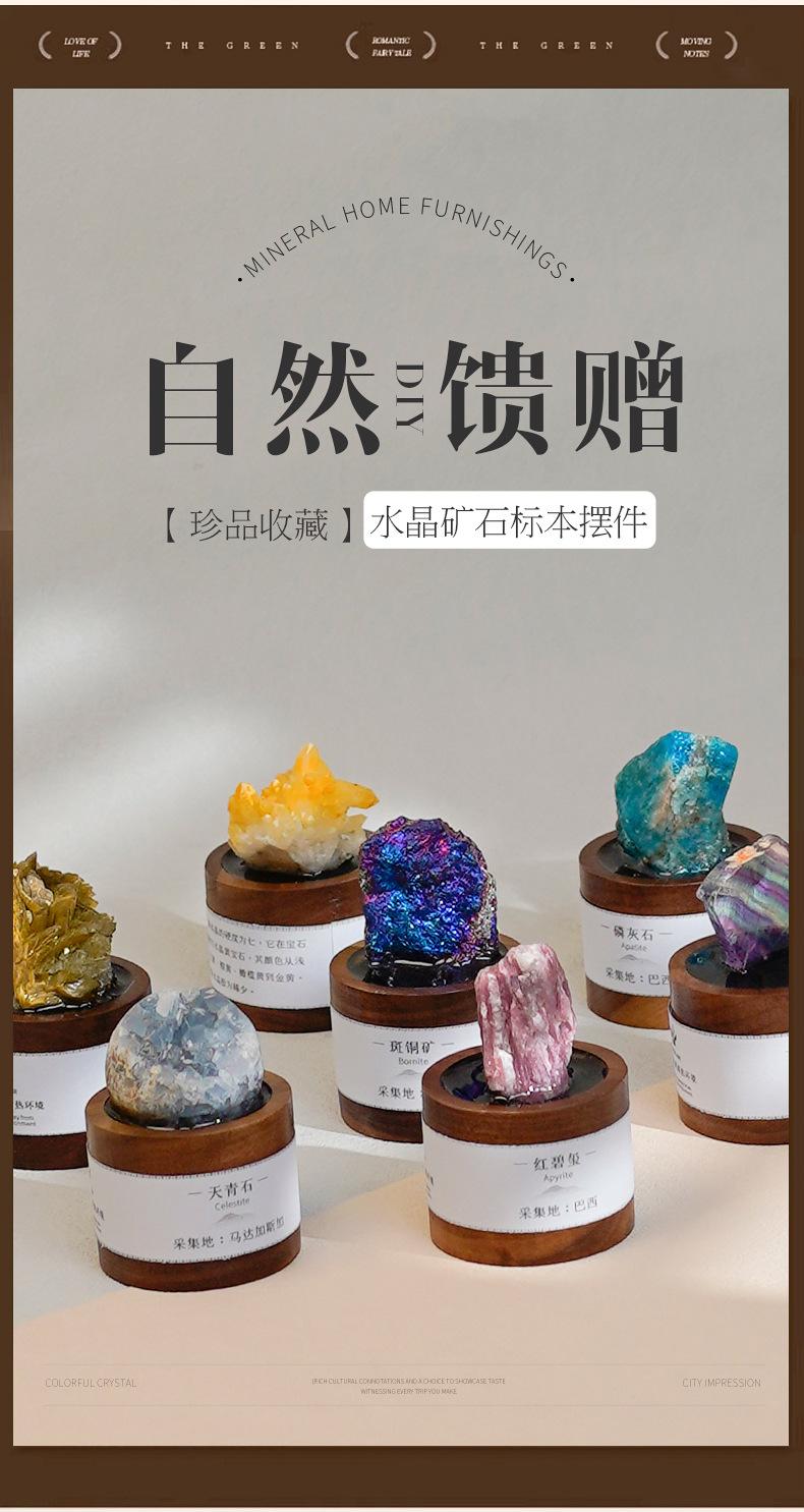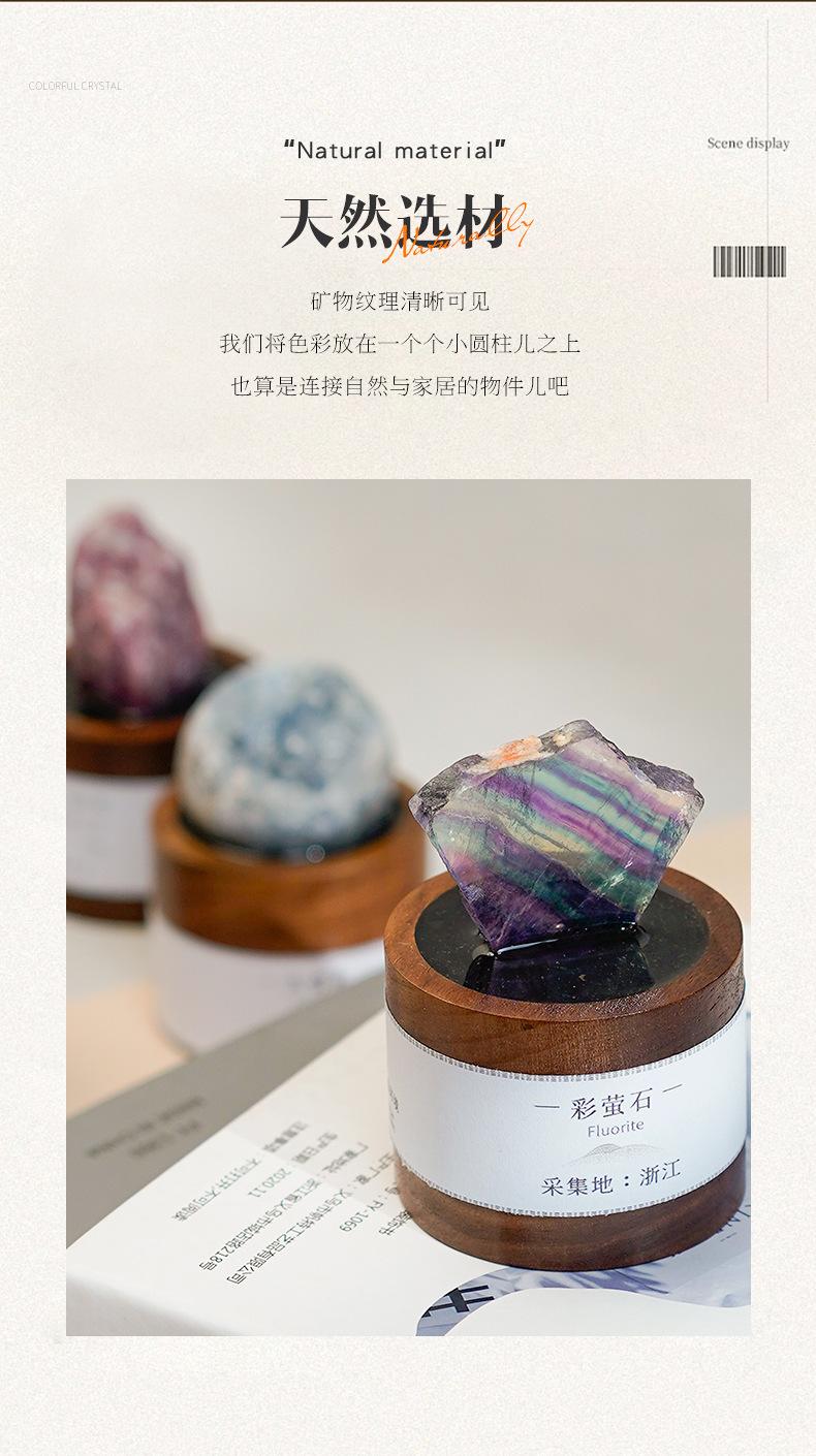 Espécimen de Mineral de Cristal Natural Adornos Creativos de Nogal Hechos a Mano Fluorita Mineral Goteo de Pegamento y Adornos de Piedra Expansiva Dummy