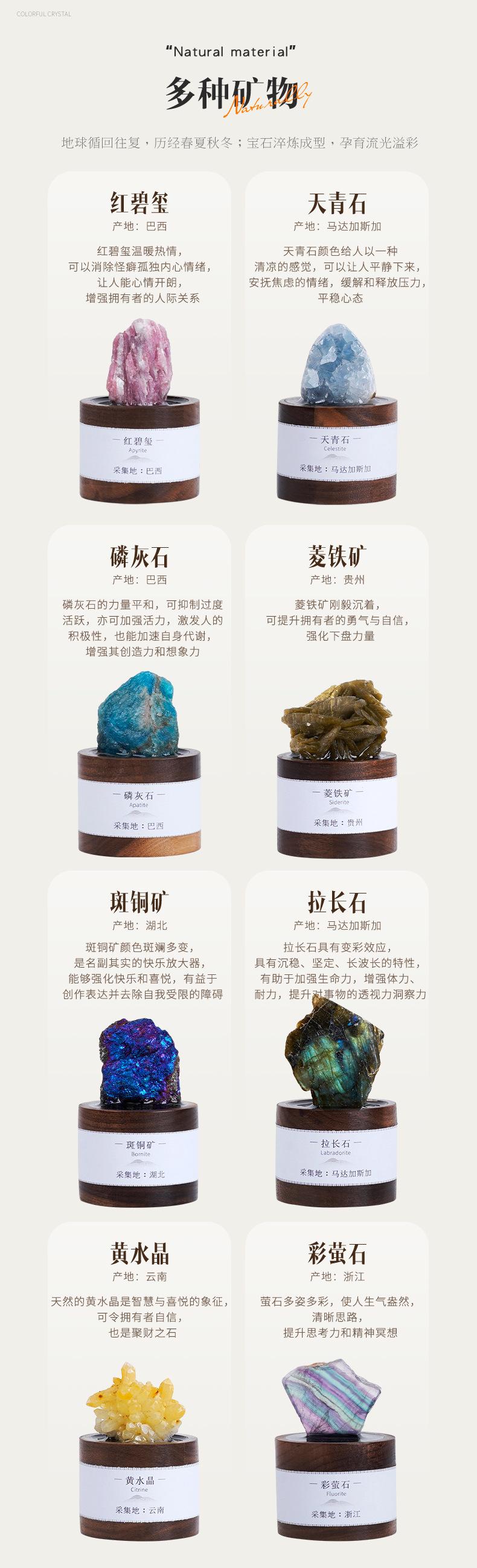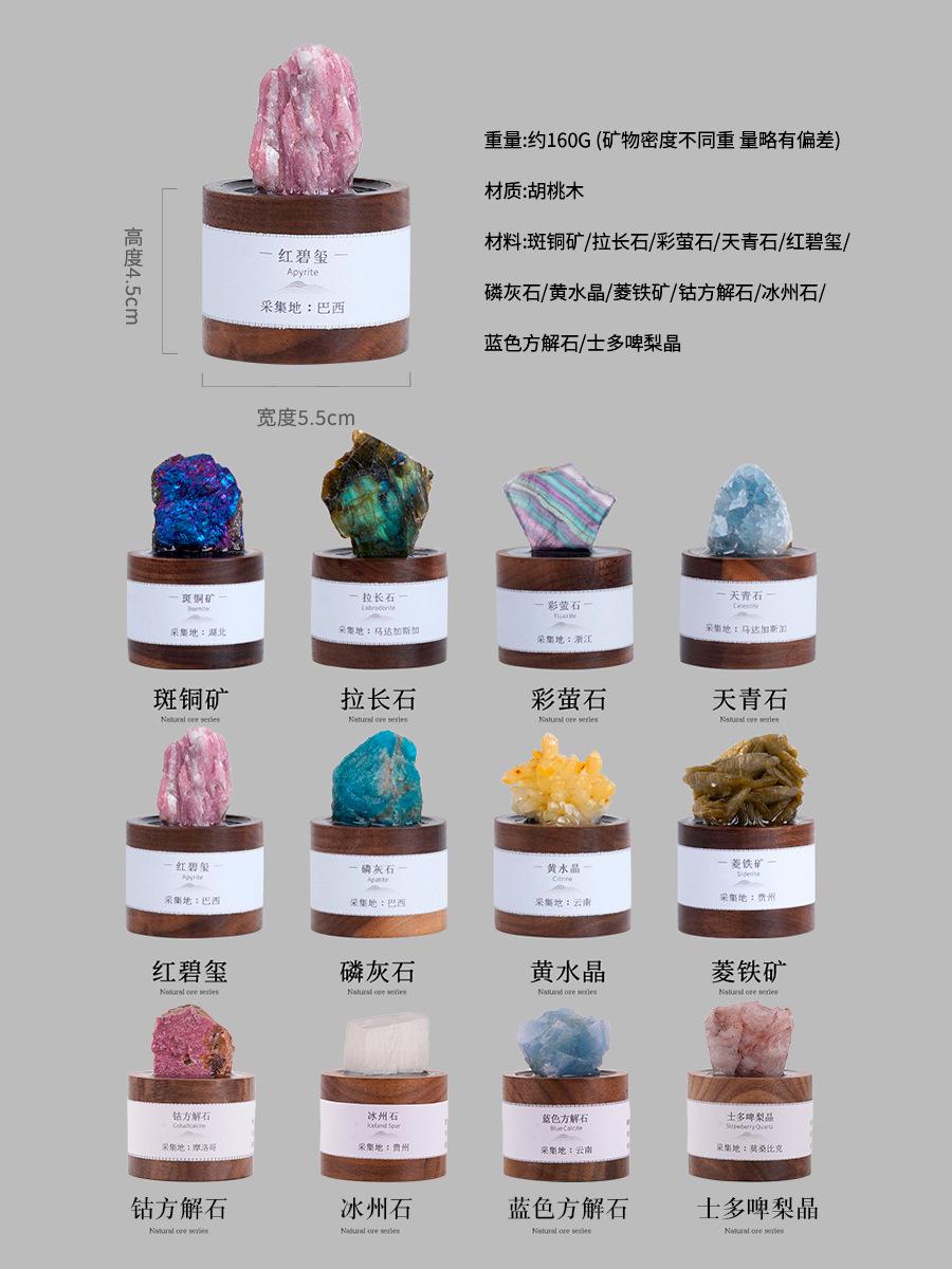 1 colored fluorite, 2 labradorite, 3 azure stone, 4 red tourmaline, 5 rhodochrosite, 6apatite, 7 azurite, 8 co...
