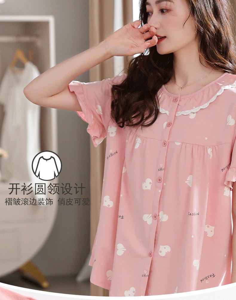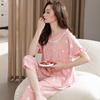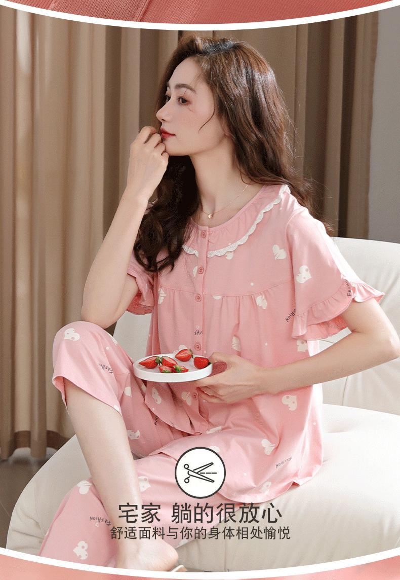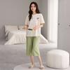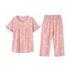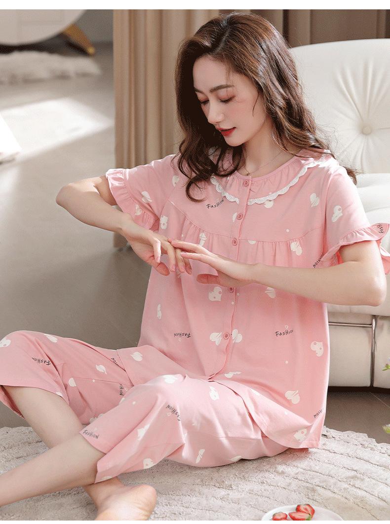 Pijama para Mujer Nuevo Verano Delgado Algodón Puro Manga Corta Pantalón Capri Ropa para el Hogar Mamá Cárdigan Conjunto de Dos Piezas