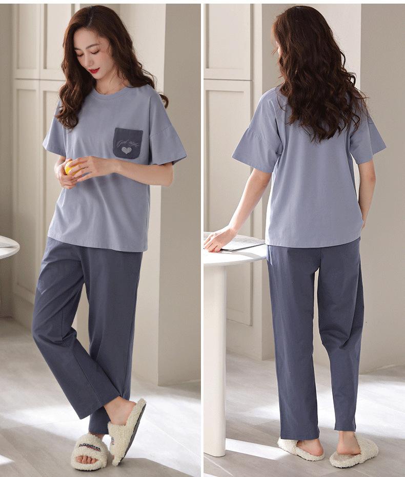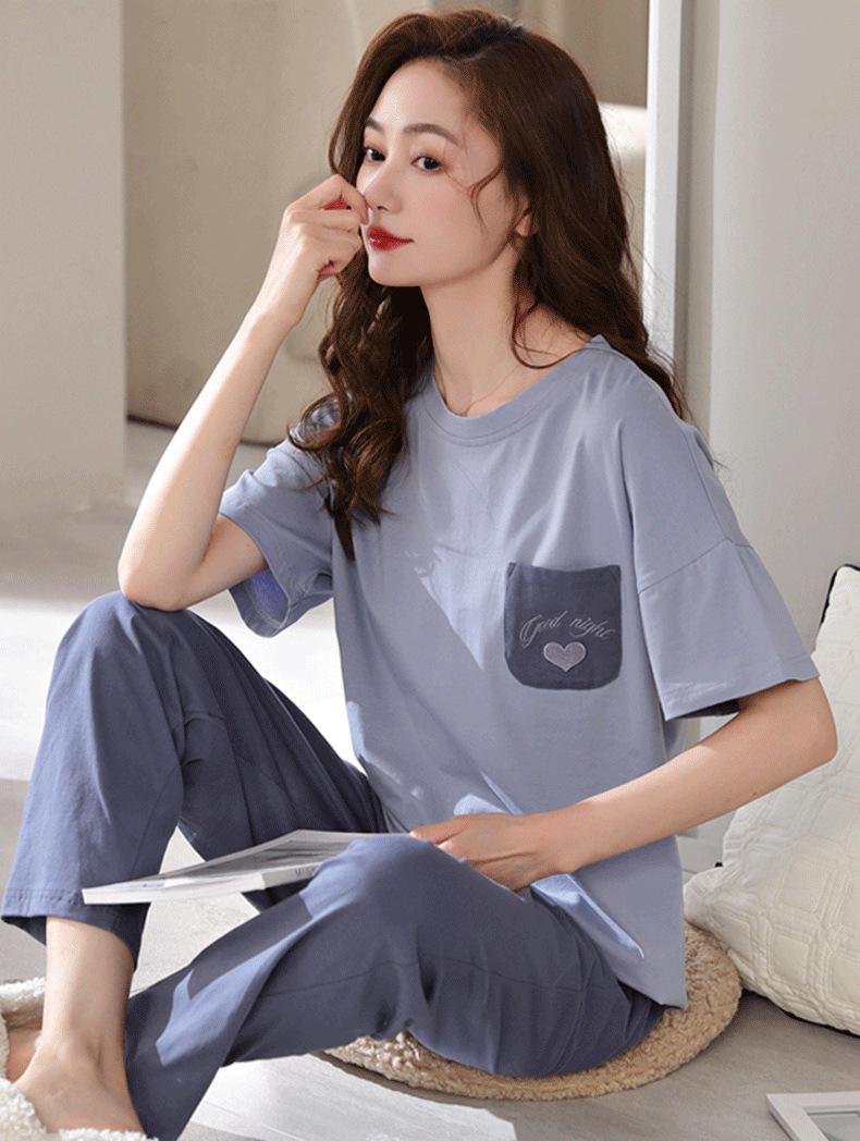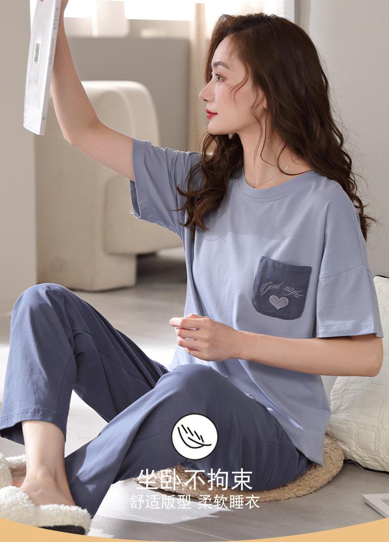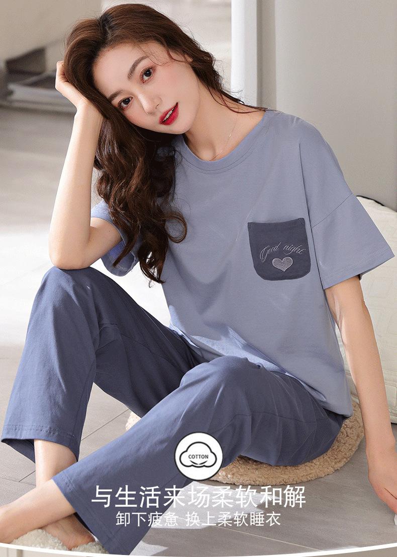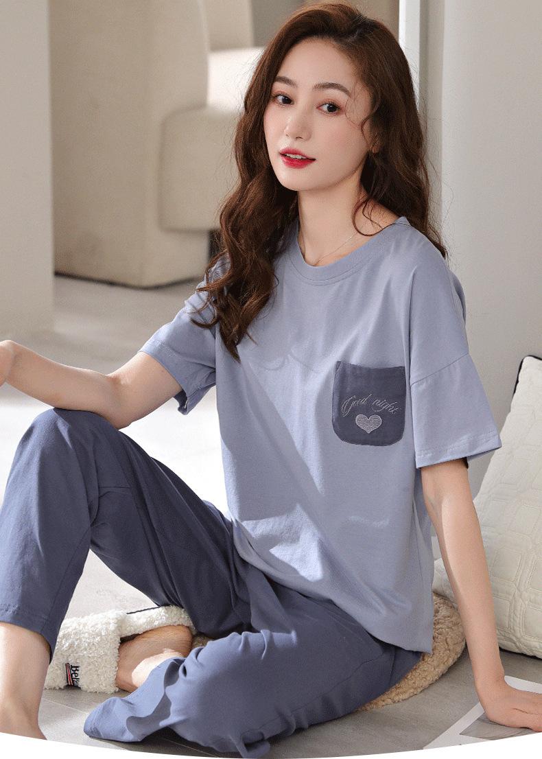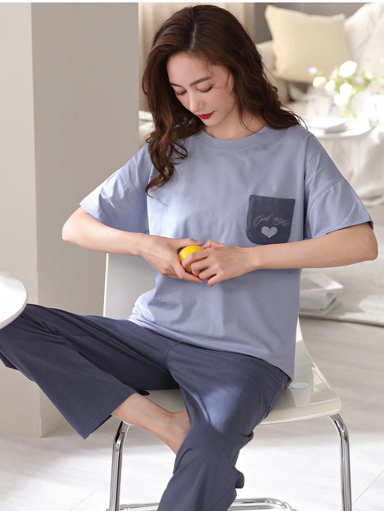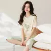 Pijama para Mujer Verano Algodón Puro Manga Corta Pantalón Traje Verano Delgado Nuevo Estilo Casual Ropa de Casa Usable