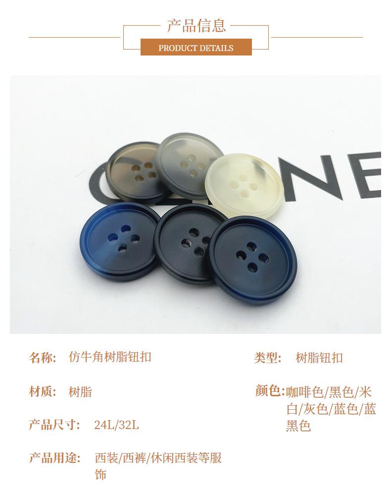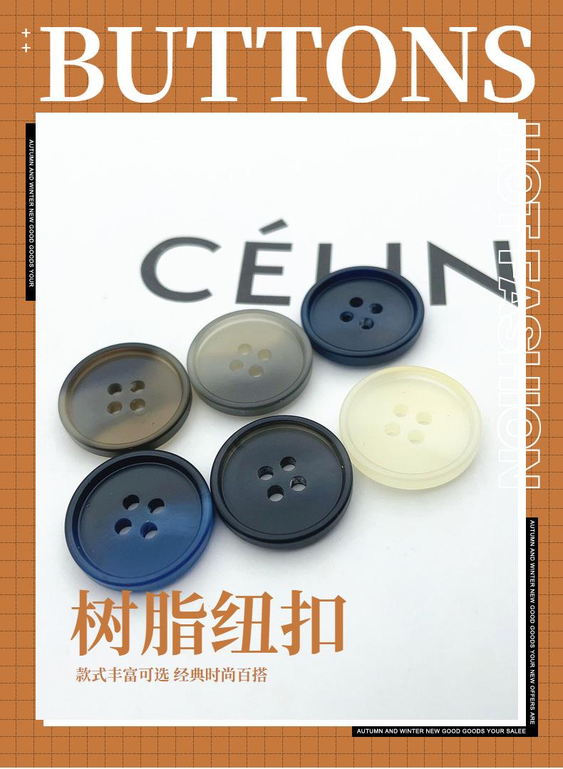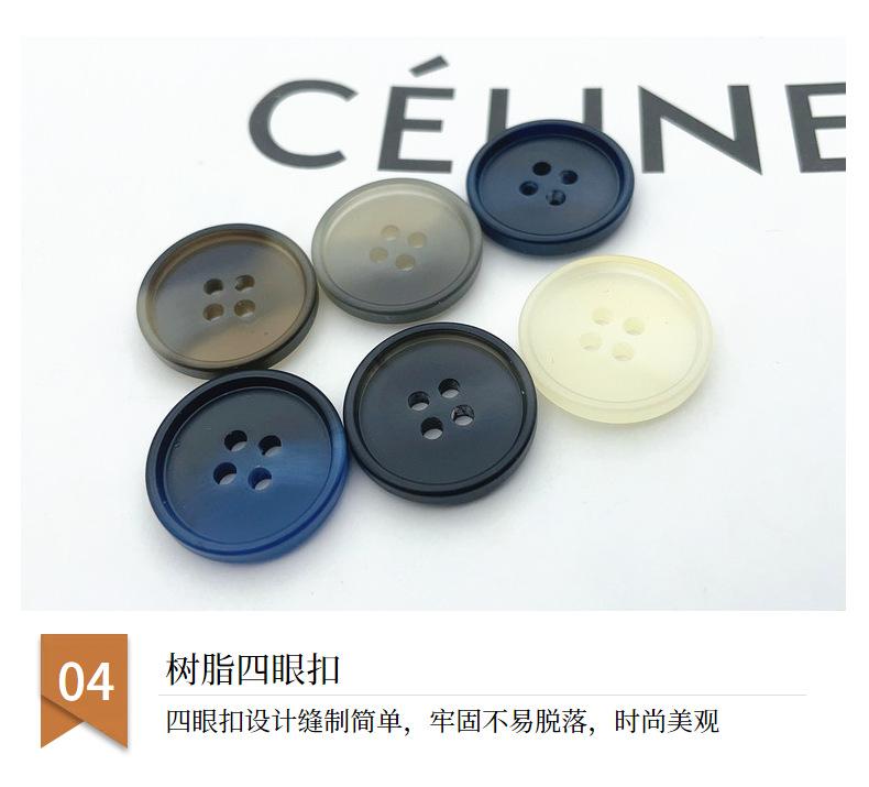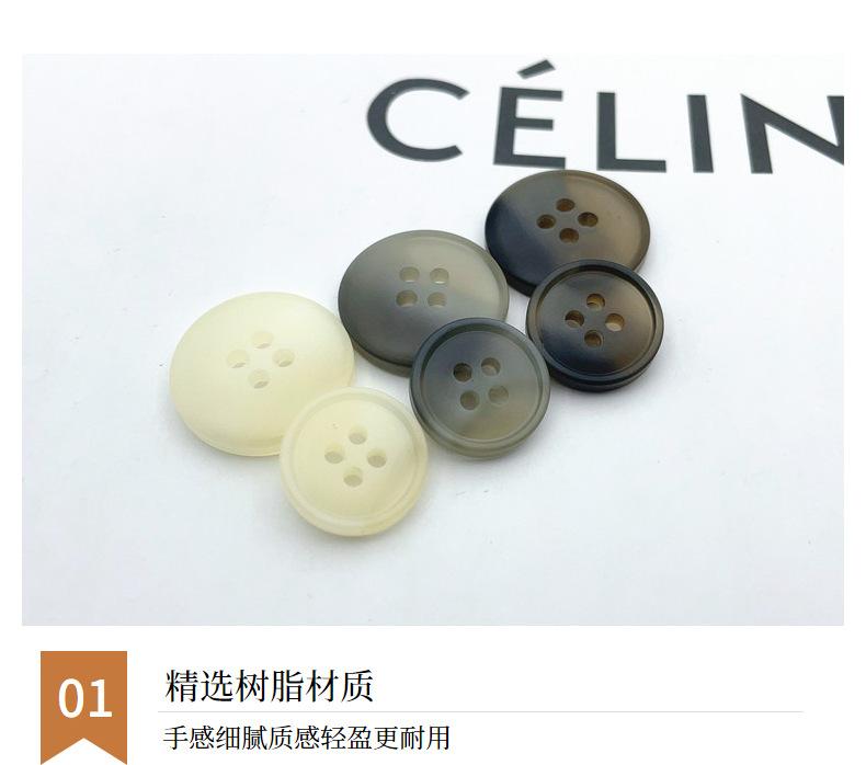 Suministro directo de fábrica botones de resina de cuatro ojos botones de ropa de traje simple de moda botones de pantalones cortavientos traje casual