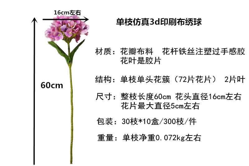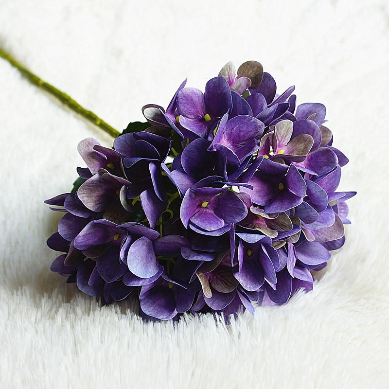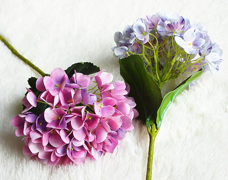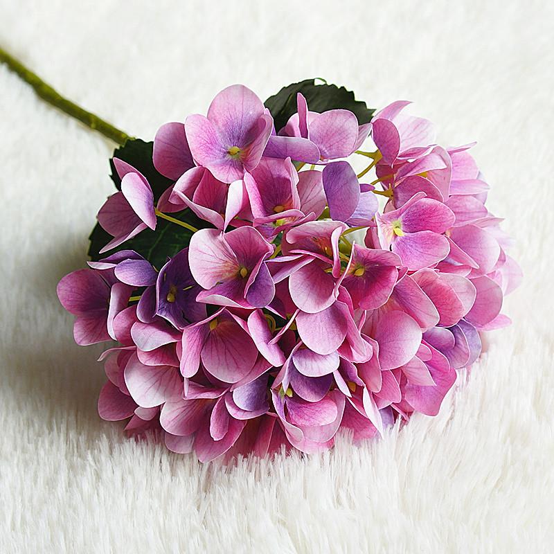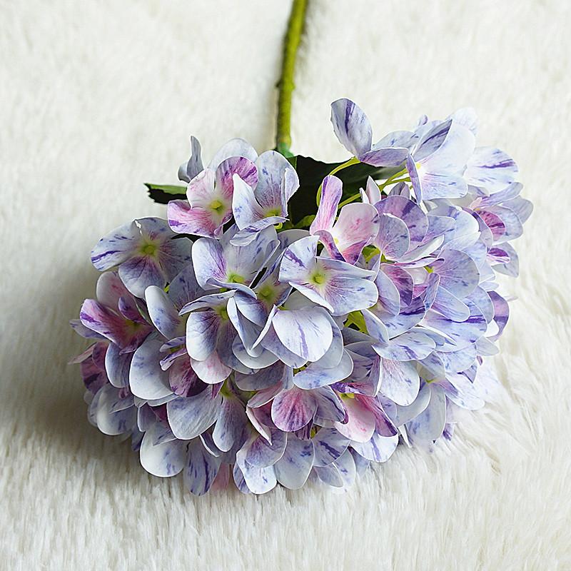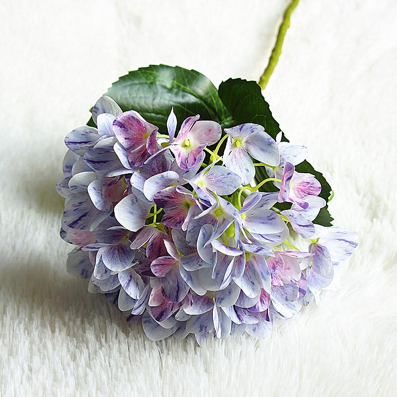 Oferta especial Simulación de un solo tallo Hortensia de tela impresa en 3D Adornos de decoración suave para el hogar Flores para fotografía de boda Flores artificiales