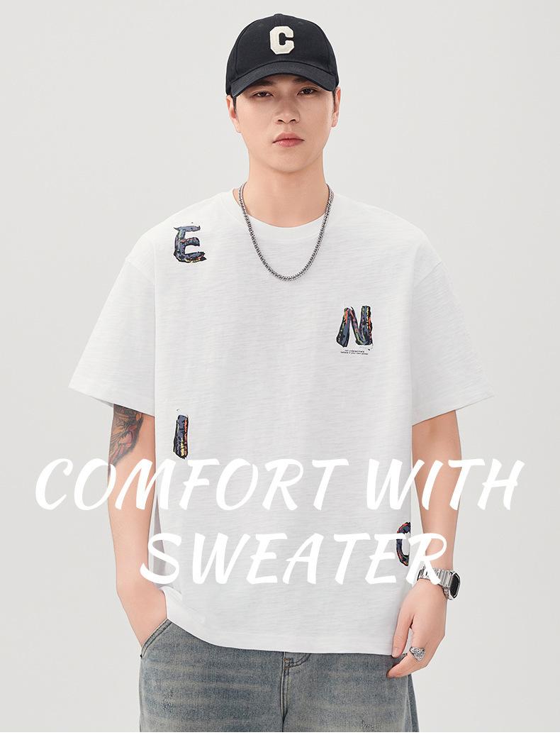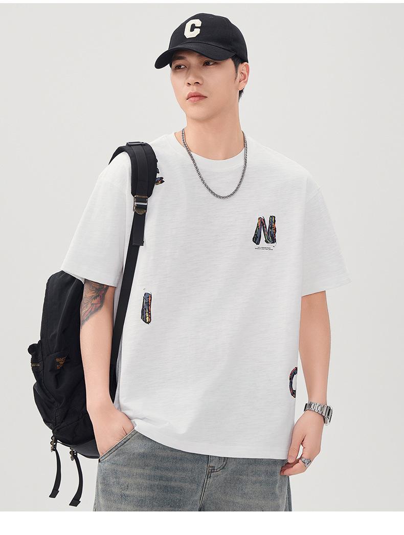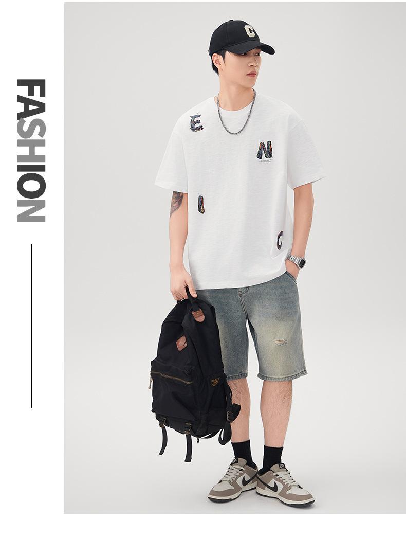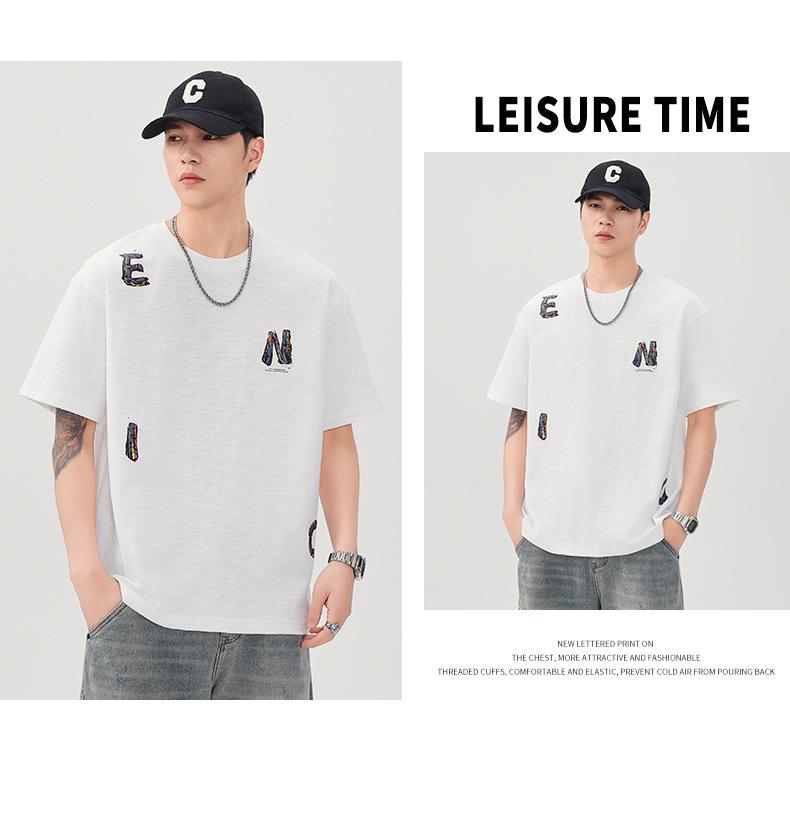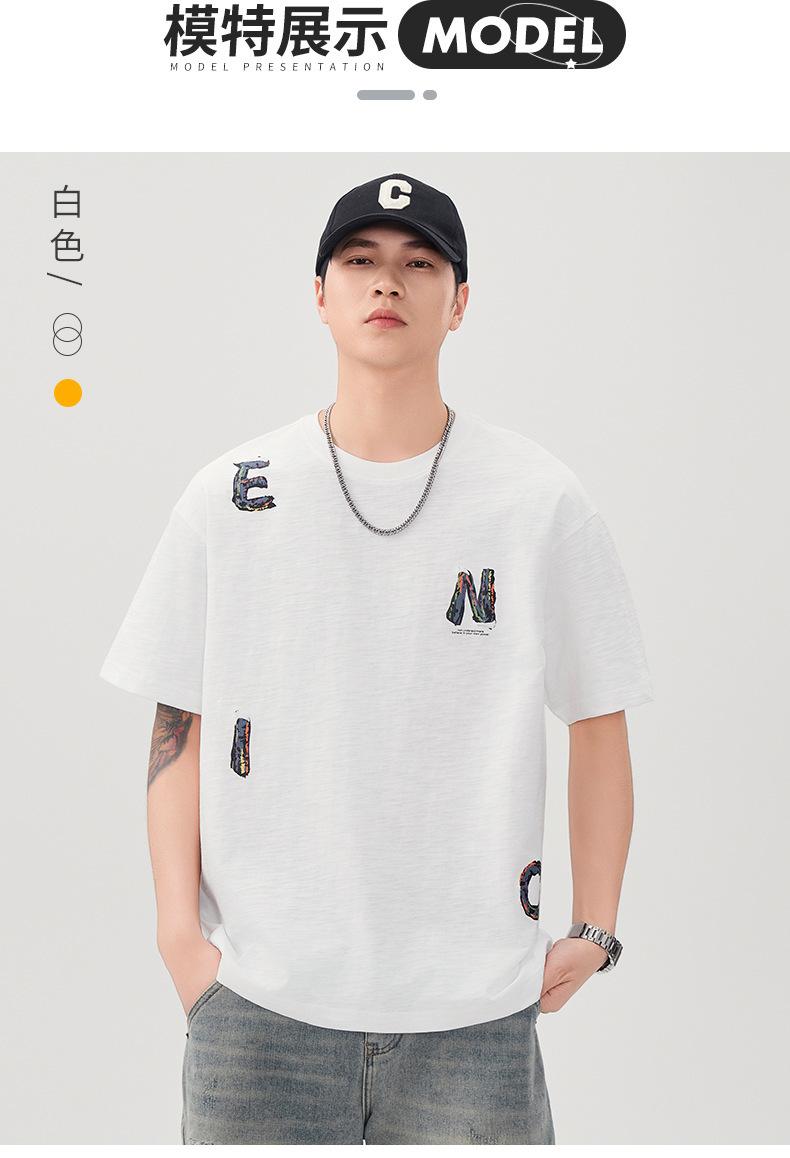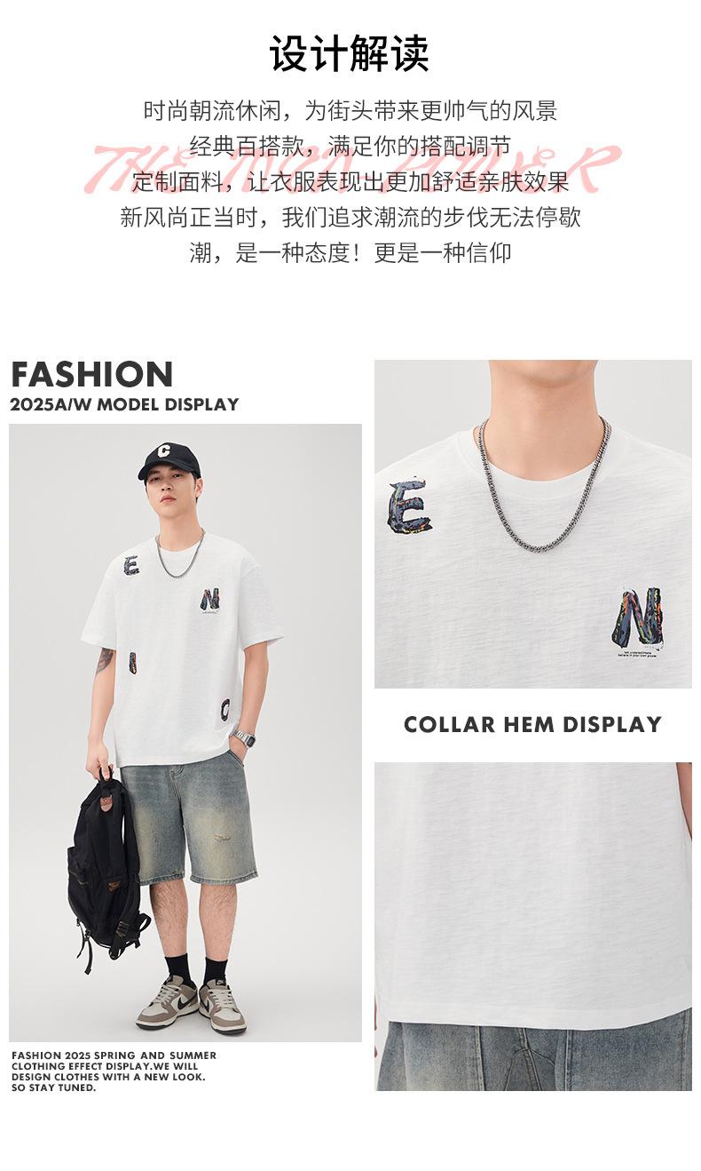 2025 Nueva Camiseta Holgada de Verano de Manga Corta para Hombre, Tendencia, Talla Grande, Estampada, Fresca, Blanca, Casual, Cuello Redondo, Top Camiseta
