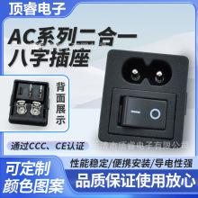 Toma de corriente CA, toma de dos núcleos en forma de 8 con interruptor, toma de corriente para electrodomésticos DB dos en uno cuadrada en forma de barco, toma industrial