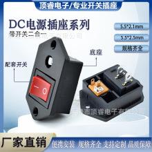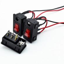 Toma de CC con pasador de orificio para tornillo de montaje Fuente de alimentación de CC tipo barco con conector de toma de interruptor de luz dos en uno 5521