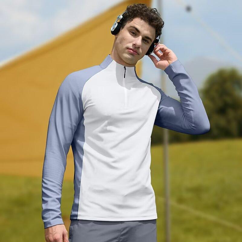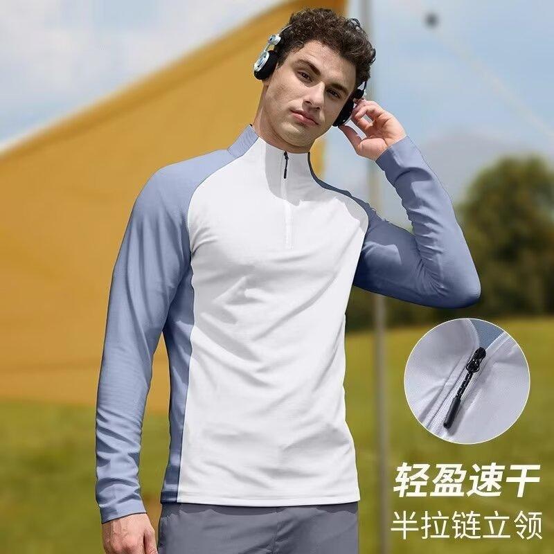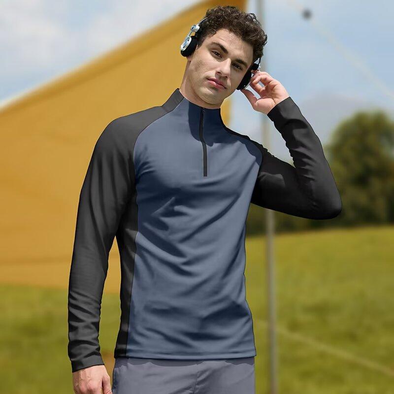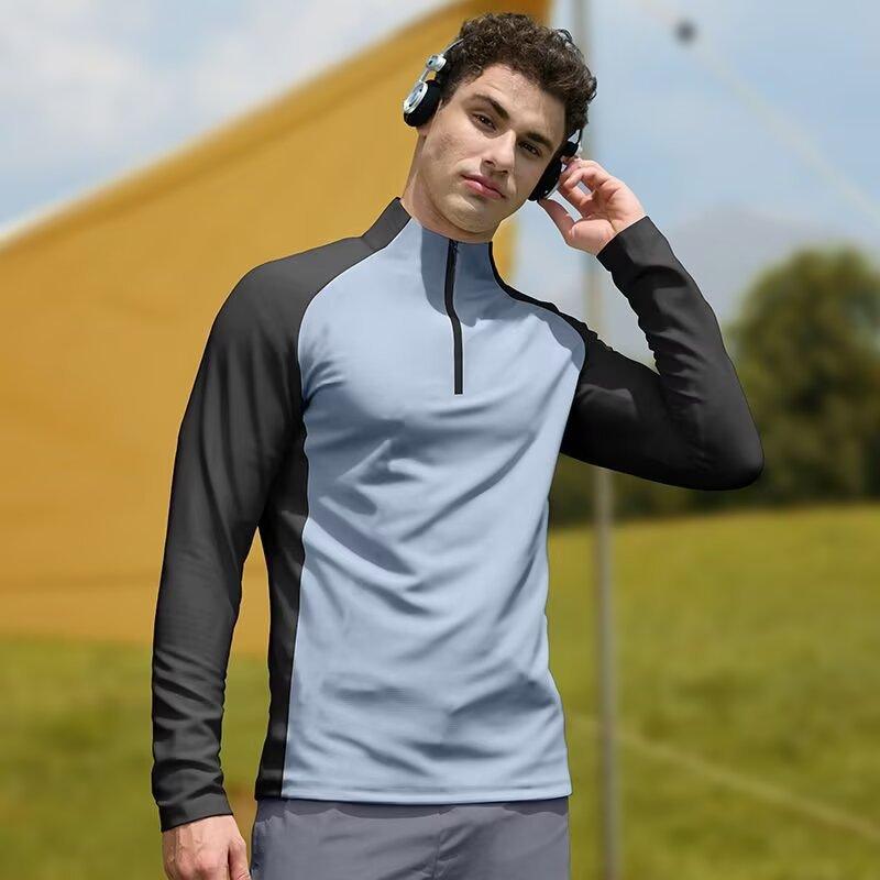 Compra Playera Deportiva de Cuatro Estaciones para Hombre con Media Cremallera Manga Larga Secado Rápido Entrenamiento Cuello Alto Fitness Exterior Bloque de Color Top para Correr al por mayor en Joom.pro