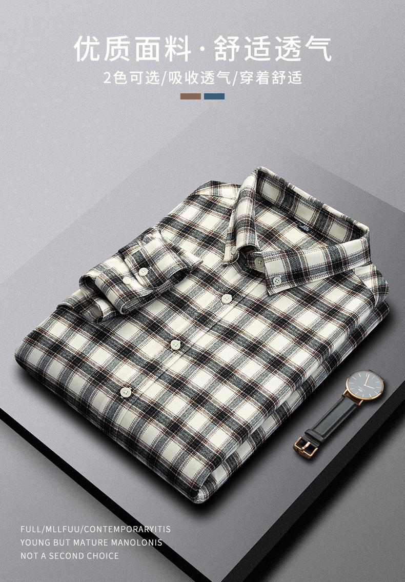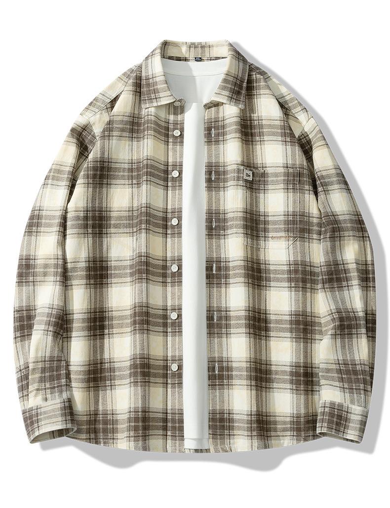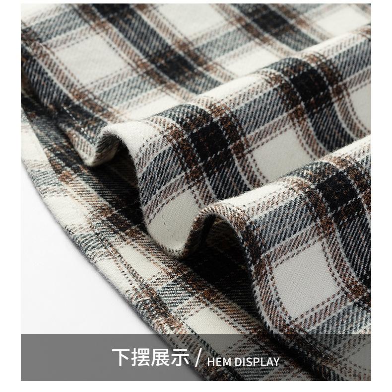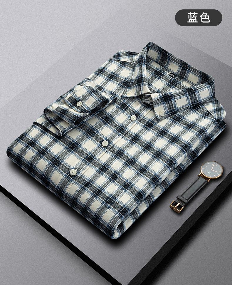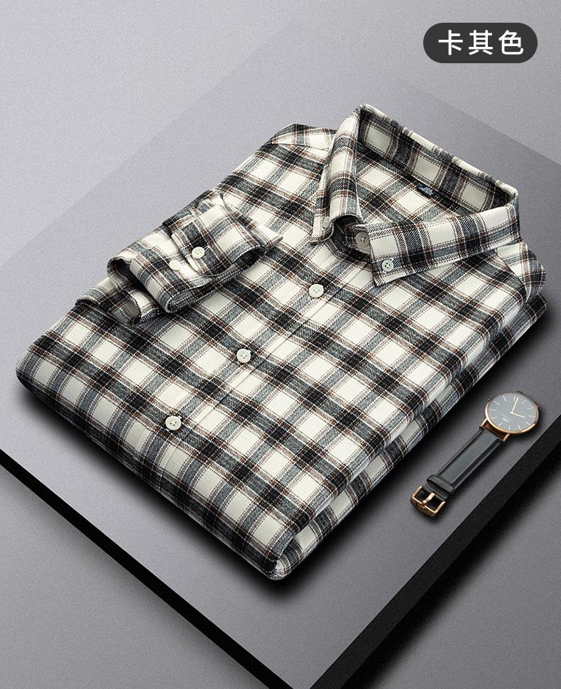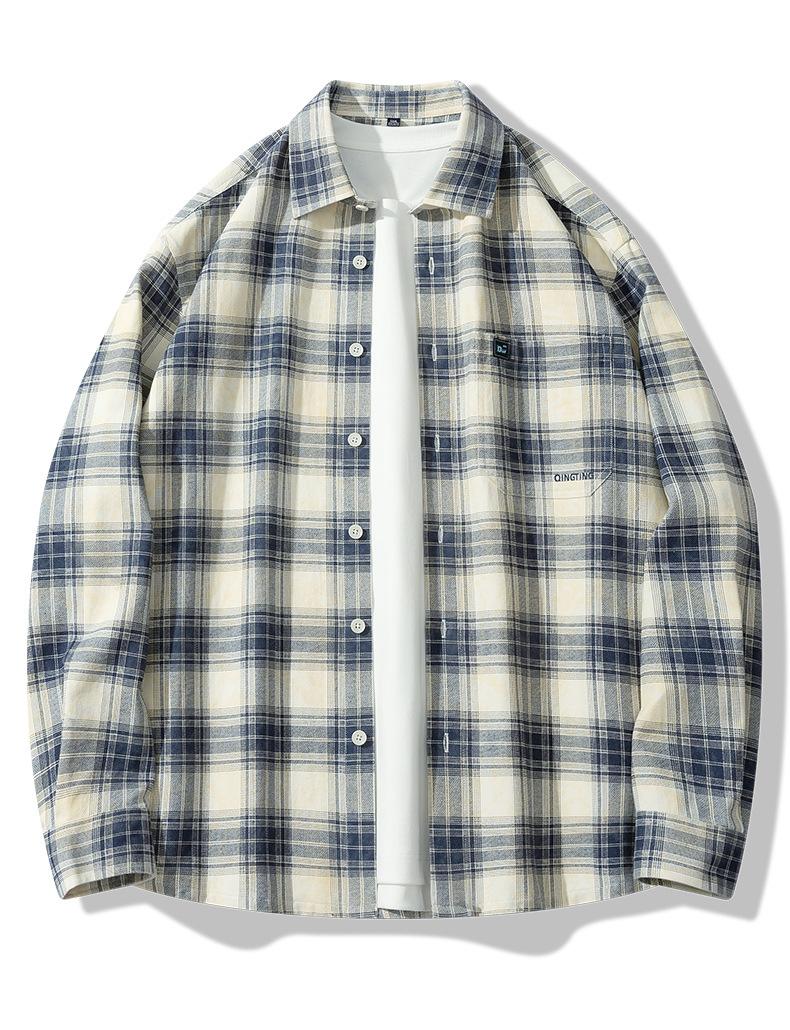 Camisa de Manga Larga de Algodón Puro 100% Nueva de Primavera y Otoño Cuello Vuelto Ropa Casual para Hombre Diario Chaqueta Delgada a Cuadros Camisa de Hombre
