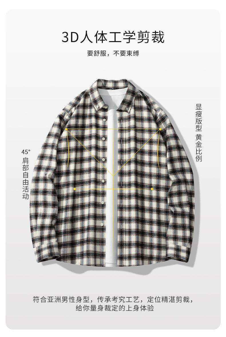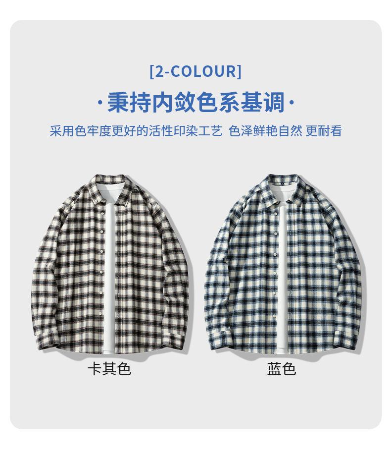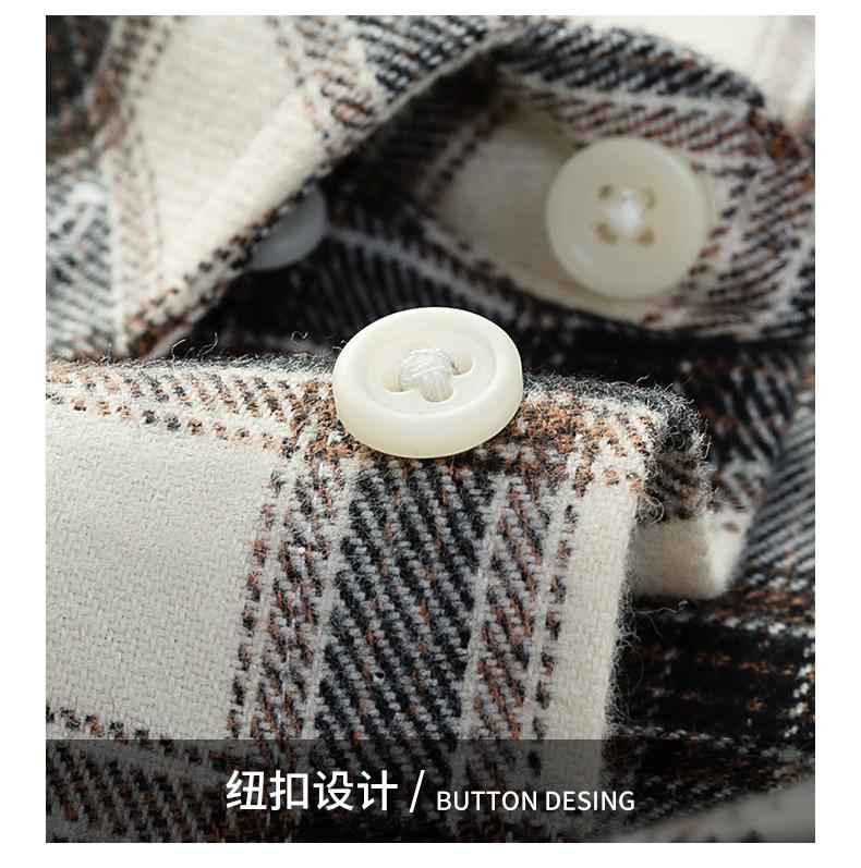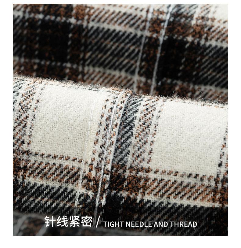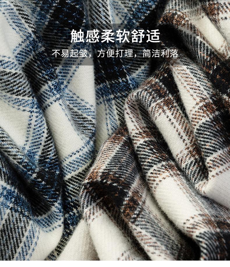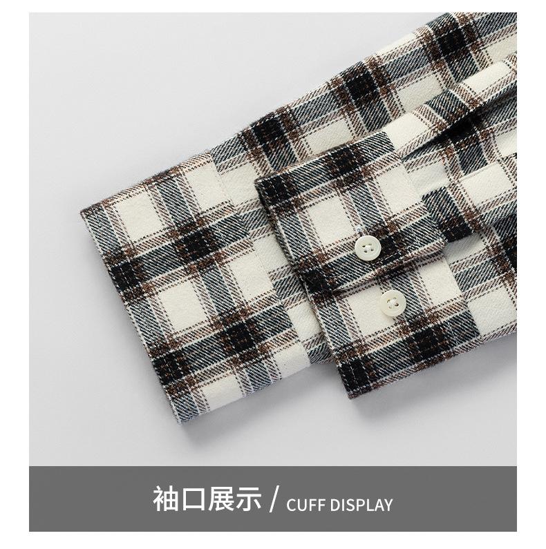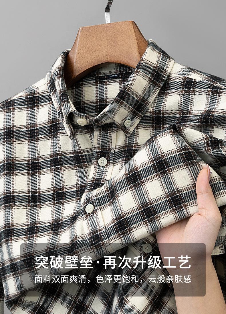 Camisa de Manga Larga de Algodón Puro 100% Nueva de Primavera y Otoño Cuello Vuelto Ropa Casual para Hombre Diario Chaqueta Delgada a Cuadros Camisa de Hombre