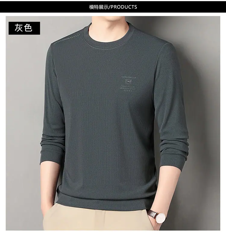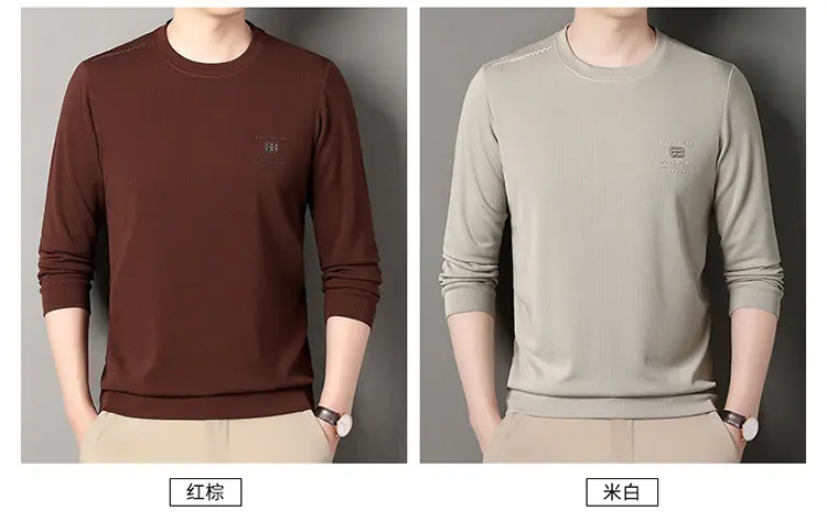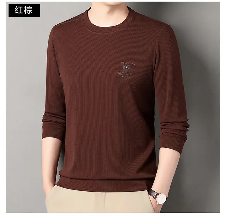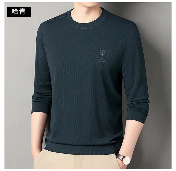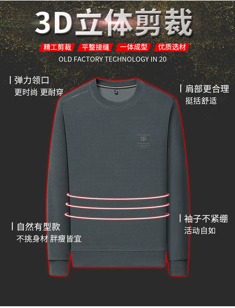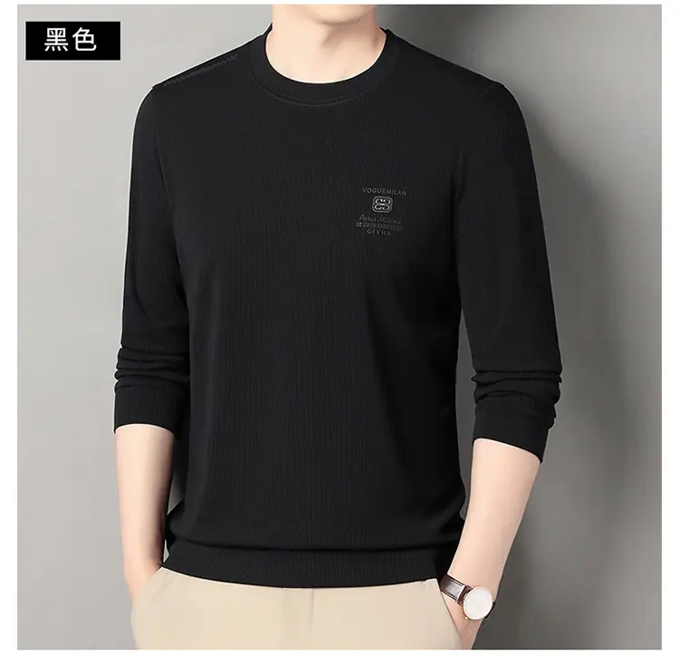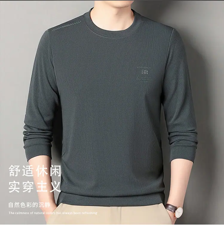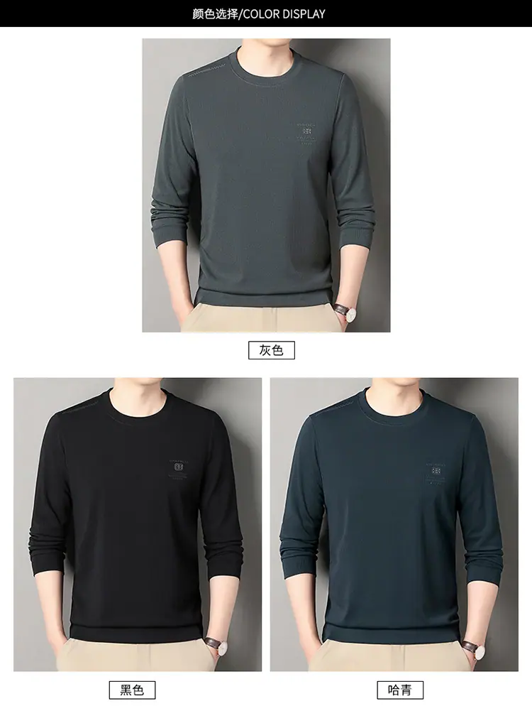 Sudadera para hombres de mediana edad y jóvenes 2025 otoño nueva camiseta de manga larga cuello redondo casual estampado ropa de otoño top camisa base
