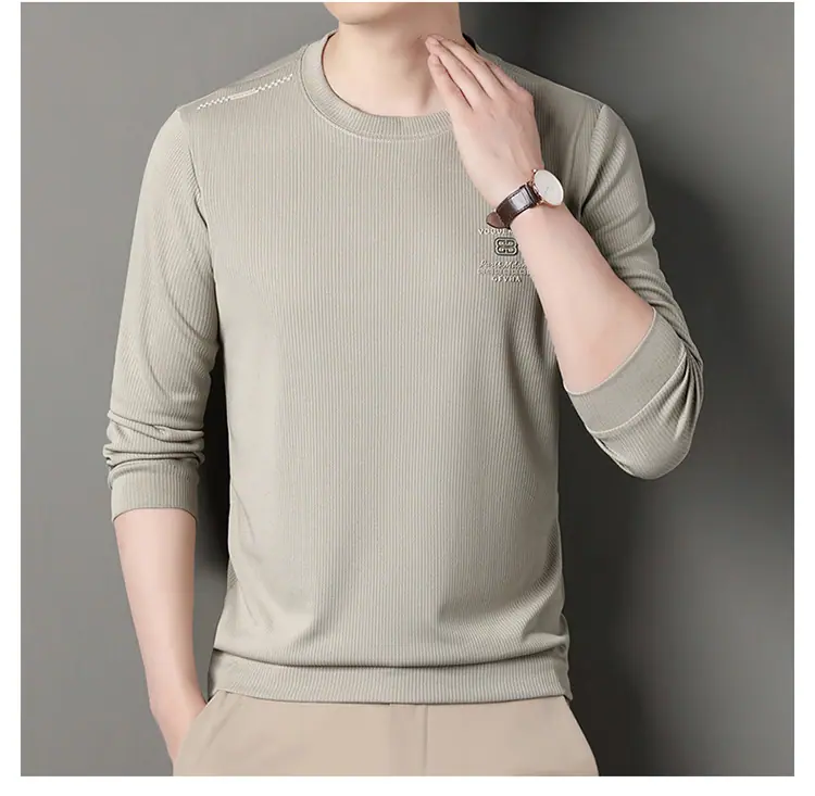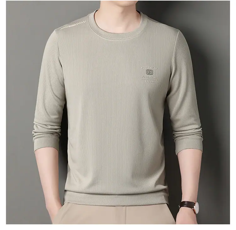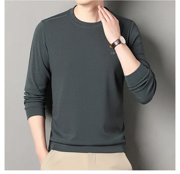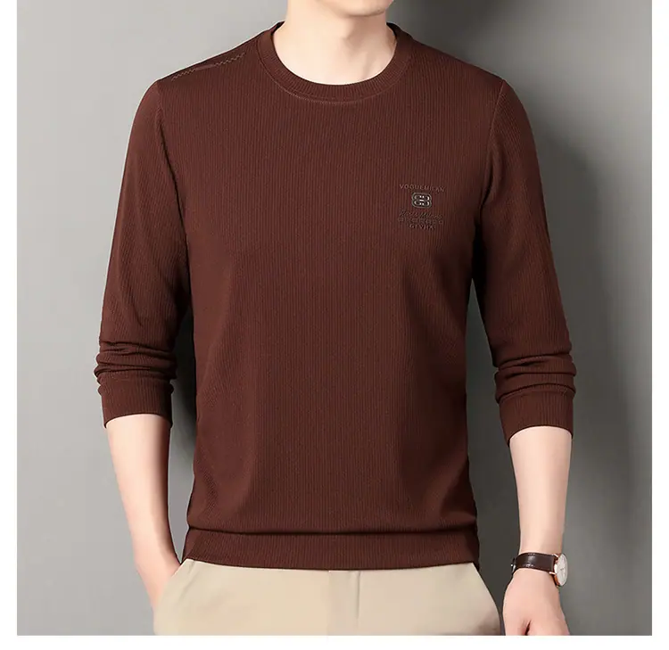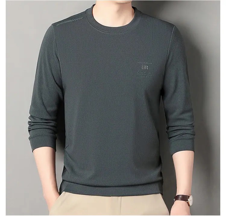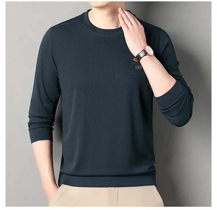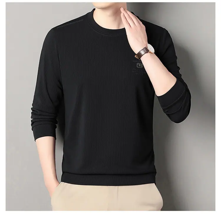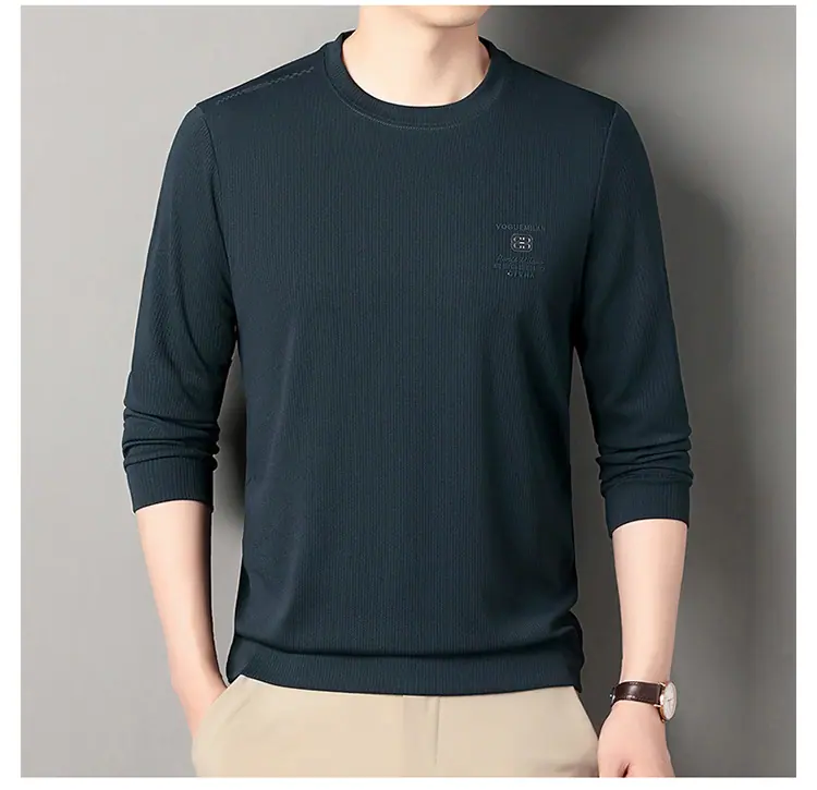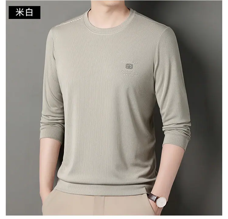 Sudadera para hombres de mediana edad y jóvenes 2025 otoño nueva camiseta de manga larga cuello redondo casual estampado ropa de otoño top camisa base