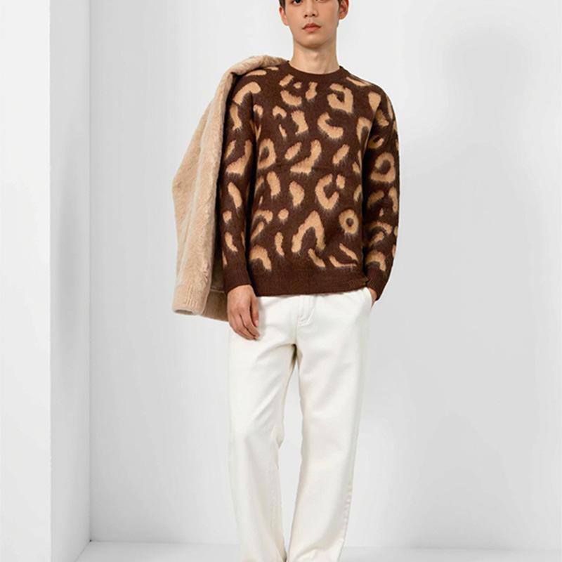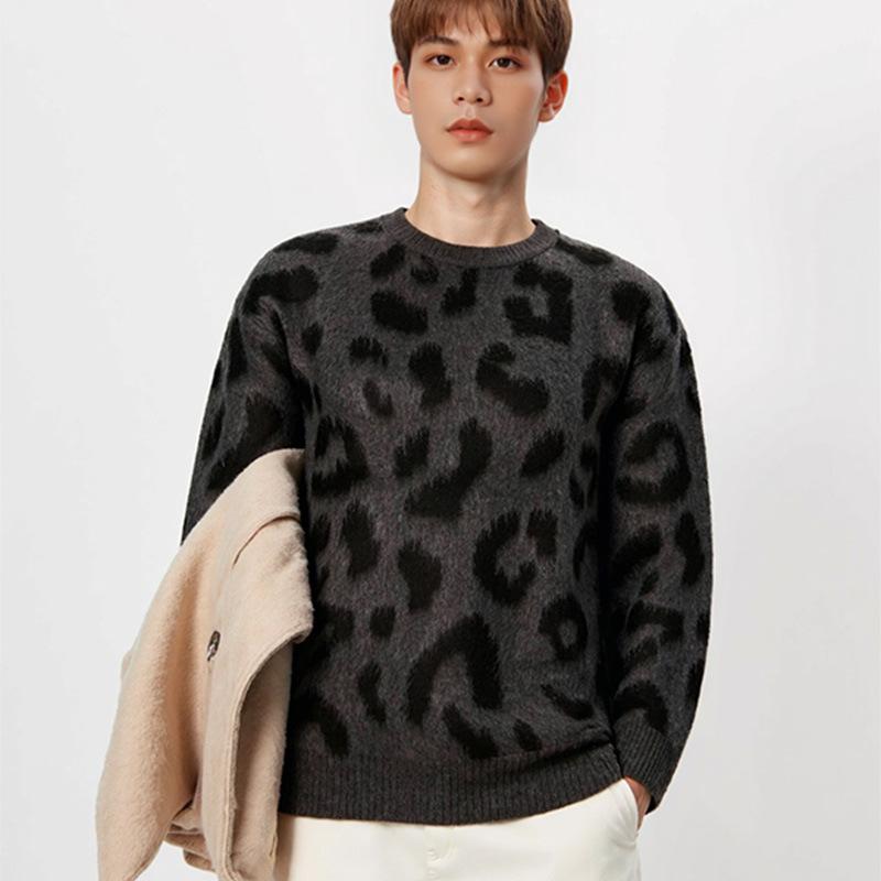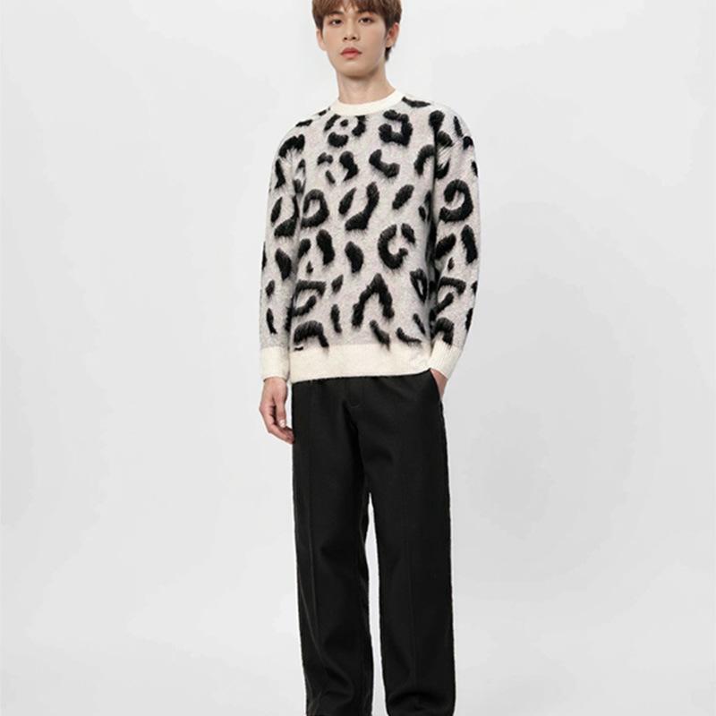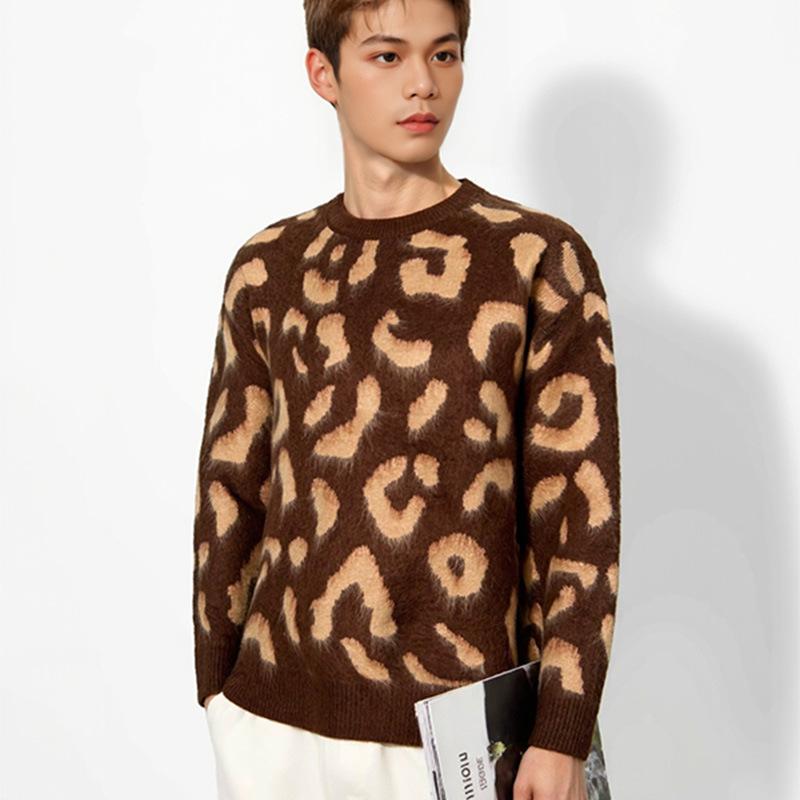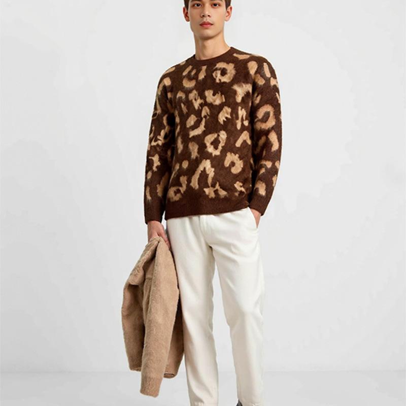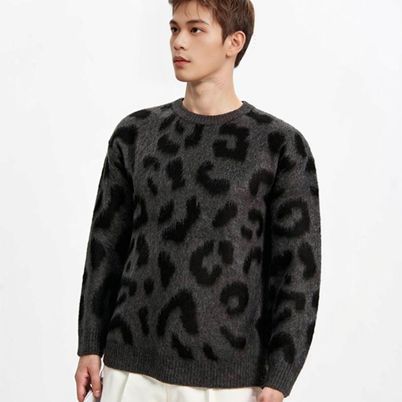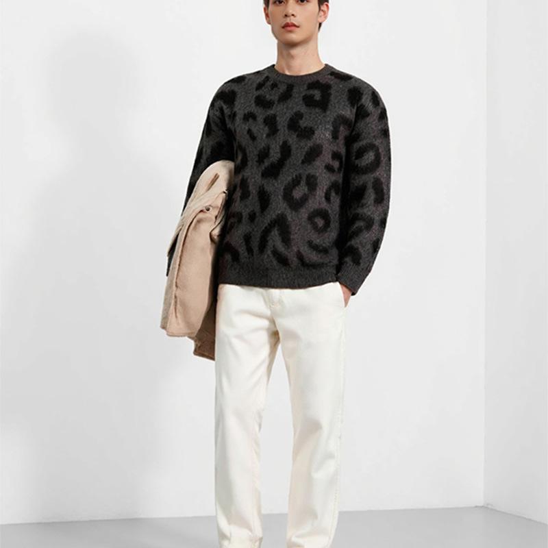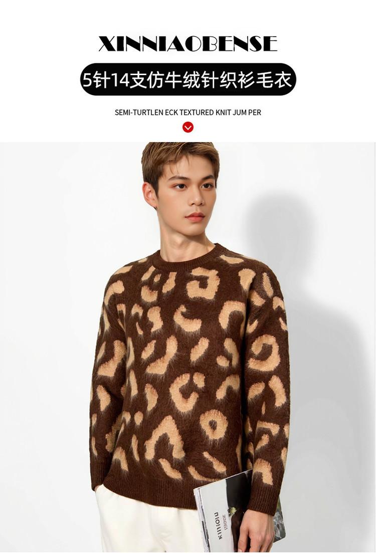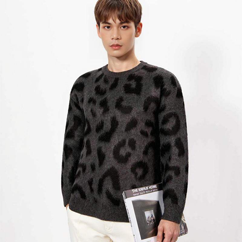 Suéter de Punto para Hombre Otoño e Invierno Nueva Moda Suéter de Cuello Redondo Jersey de Punto Holgado Casual Patrón Suéter de Cuello Redondo