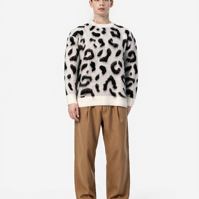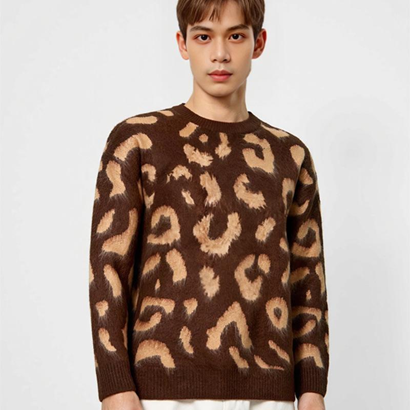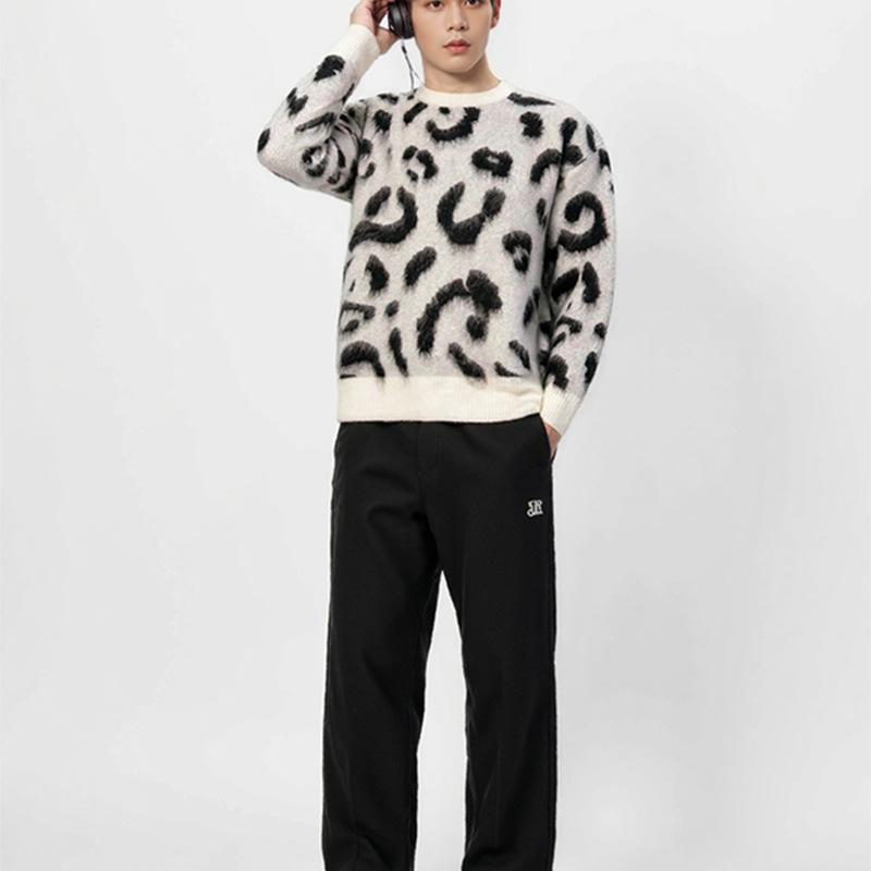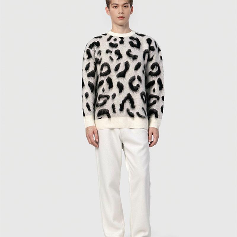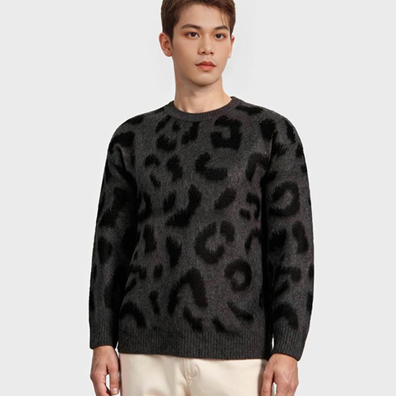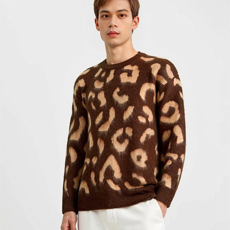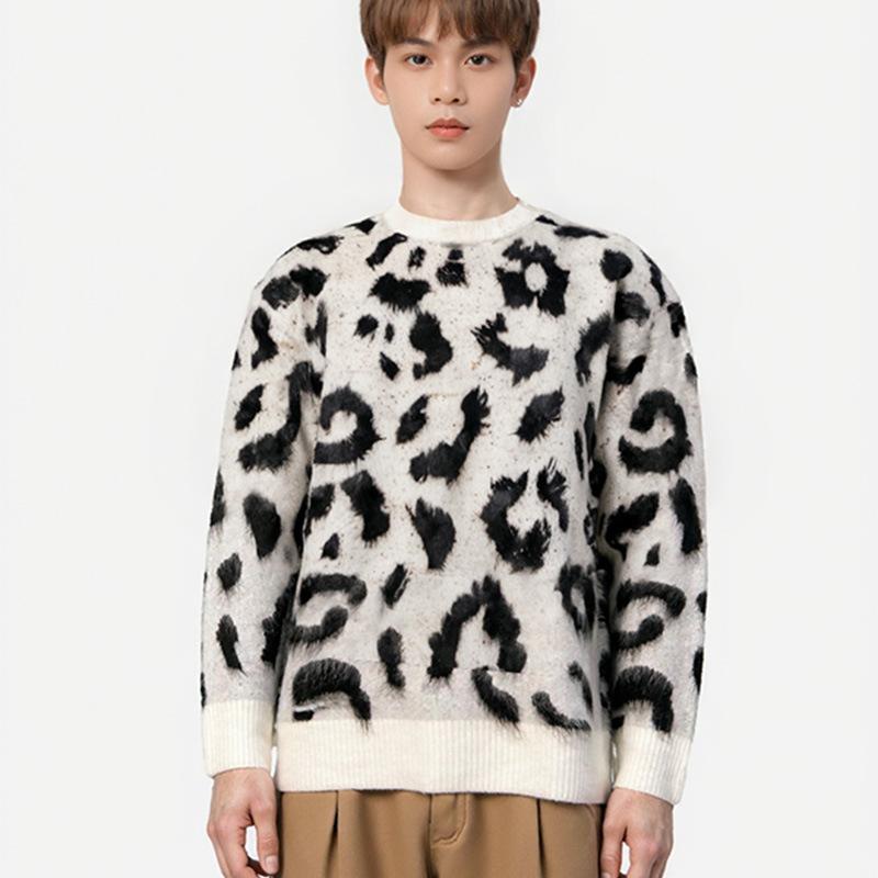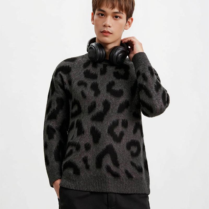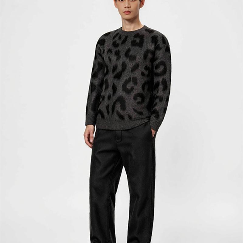 Suéter de Punto para Hombre Otoño e Invierno Nueva Moda Suéter de Cuello Redondo Jersey de Punto Holgado Casual Patrón Suéter de Cuello Redondo