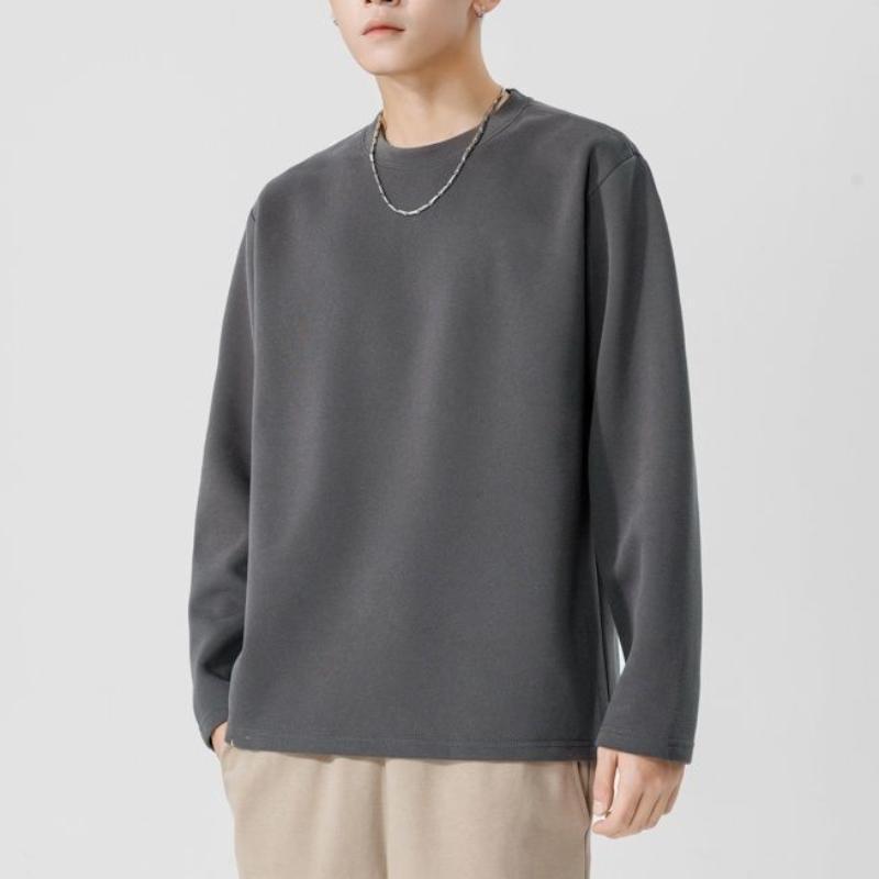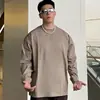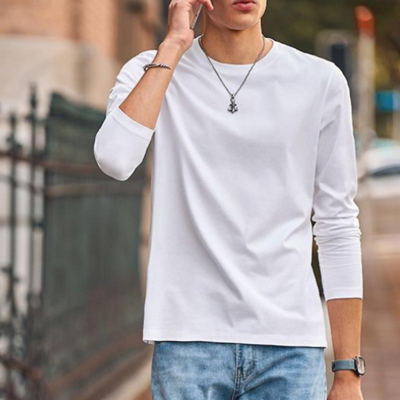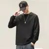 Playera de Manga Larga para Hombre Color Sólido 2025 Algodón Puro Suelta Cuello Redondo Otoño Invierno Desplazamiento Capa Interior Camiseta Base Top Versátil
