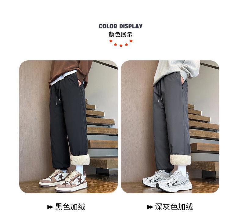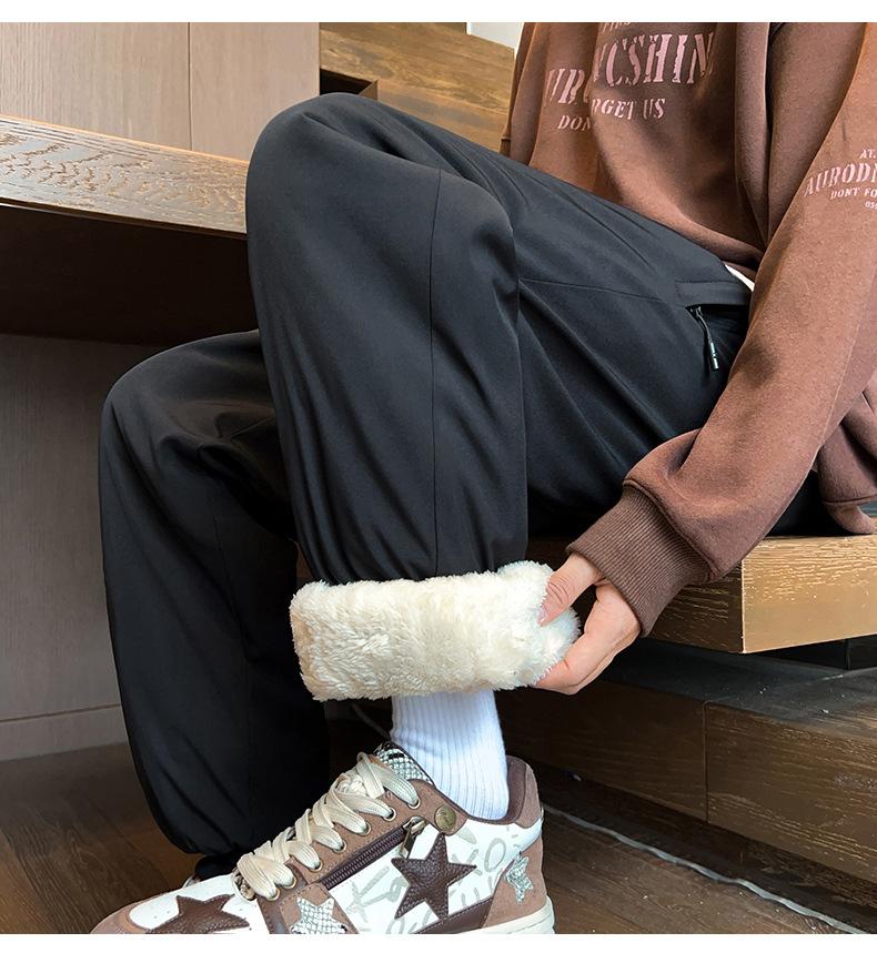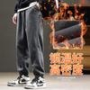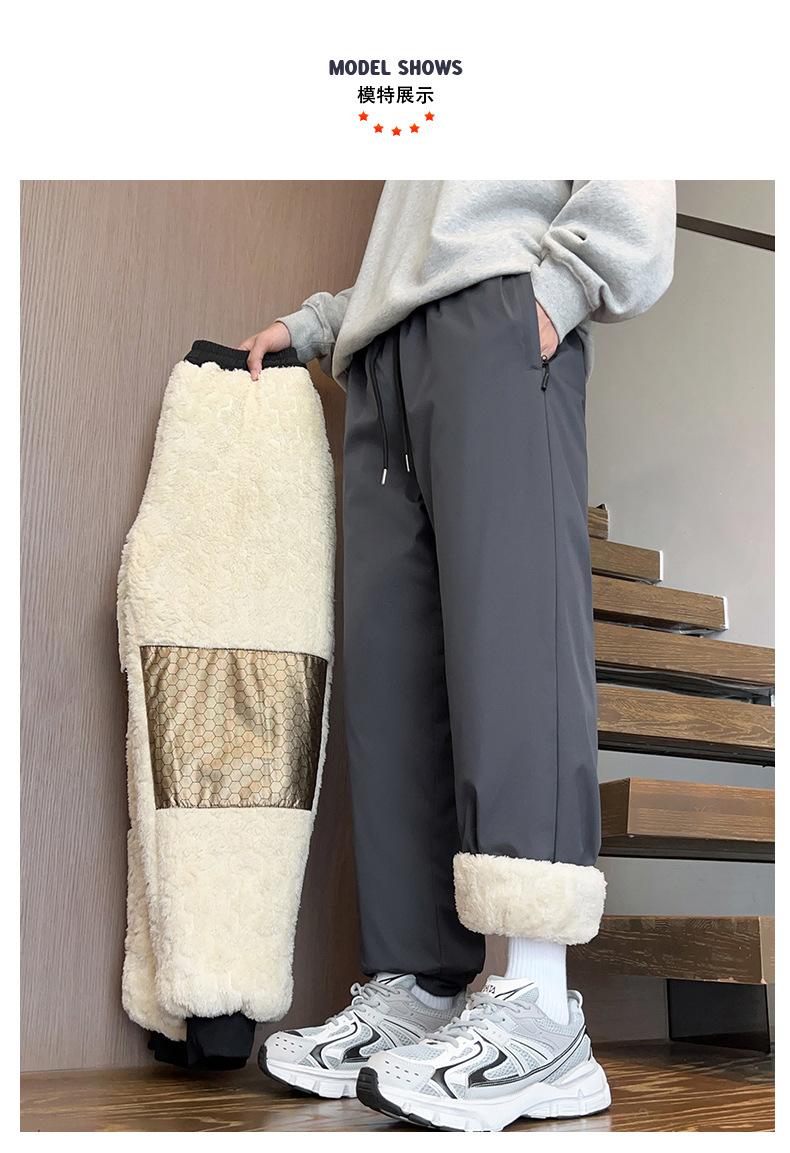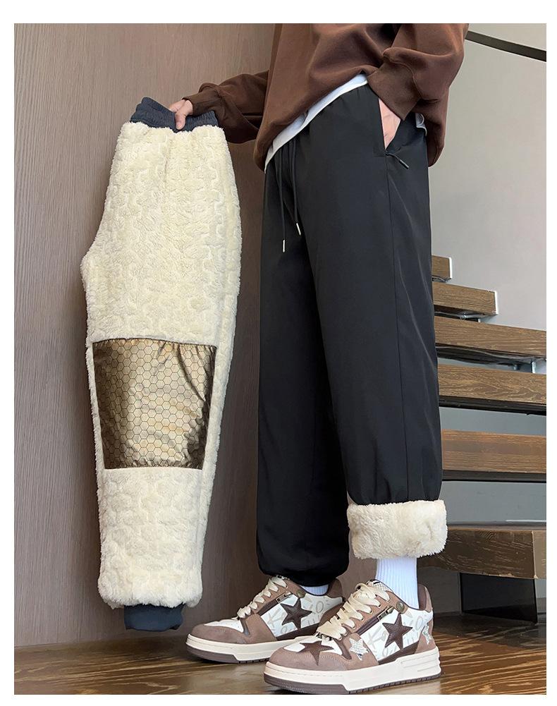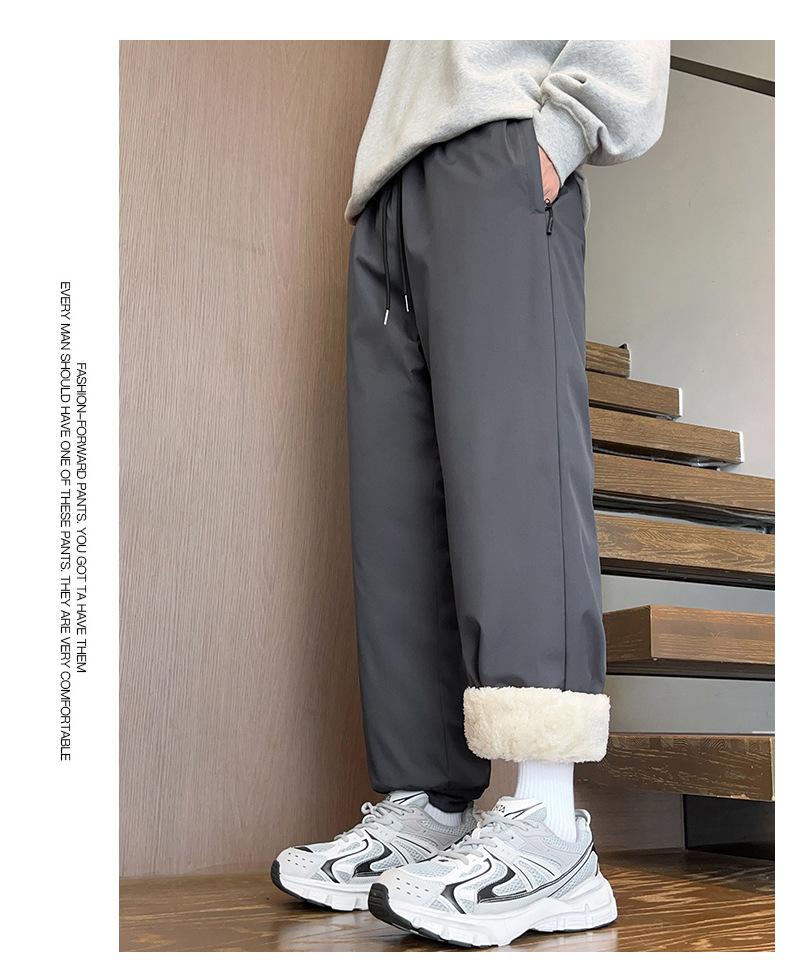 Pantalones de algodón afelpados y gruesos para hombre, cálidos y a prueba de frío para otoño e invierno, pantalones largos casuales con puño, pantalones holgados de lana de cordero para invierno