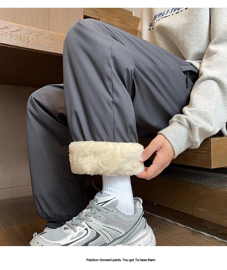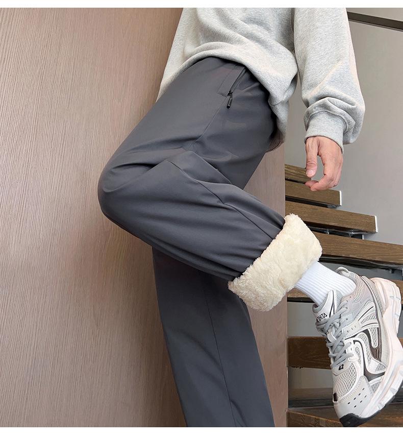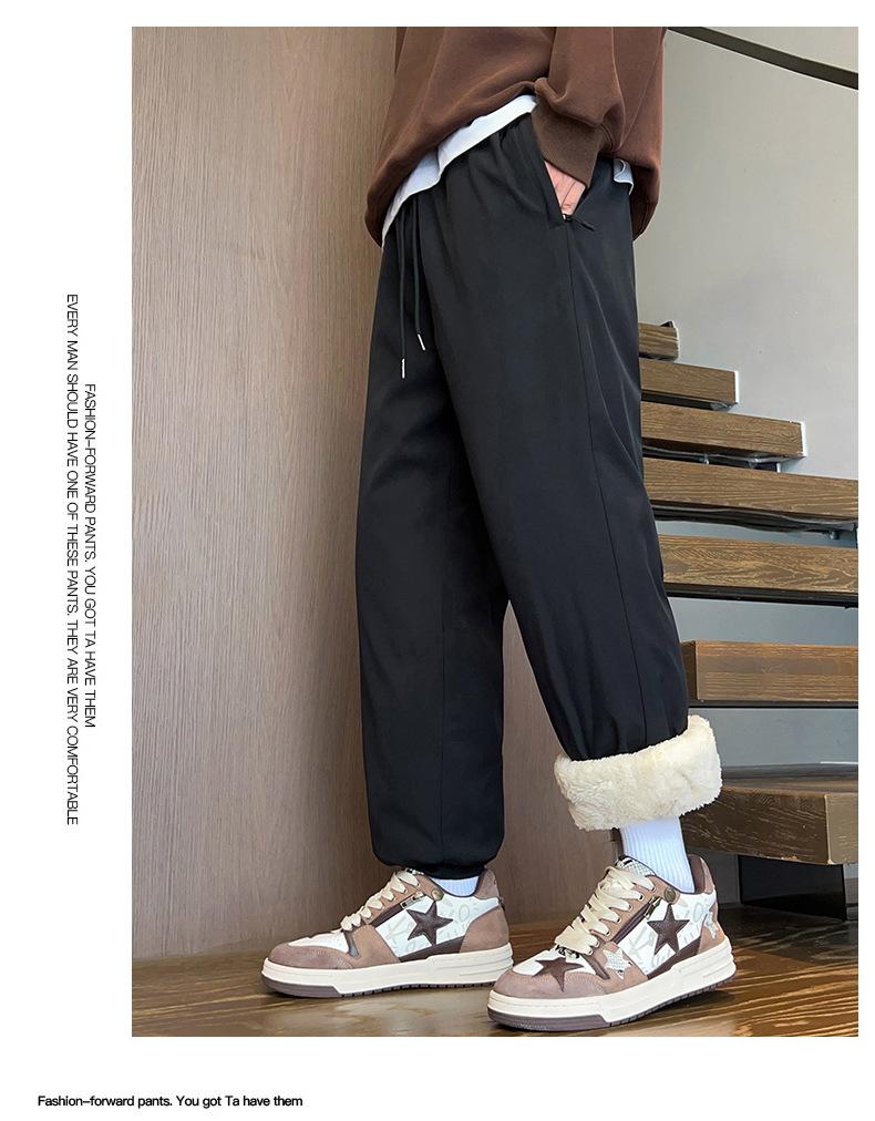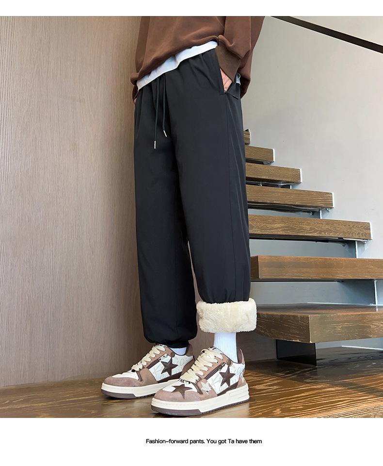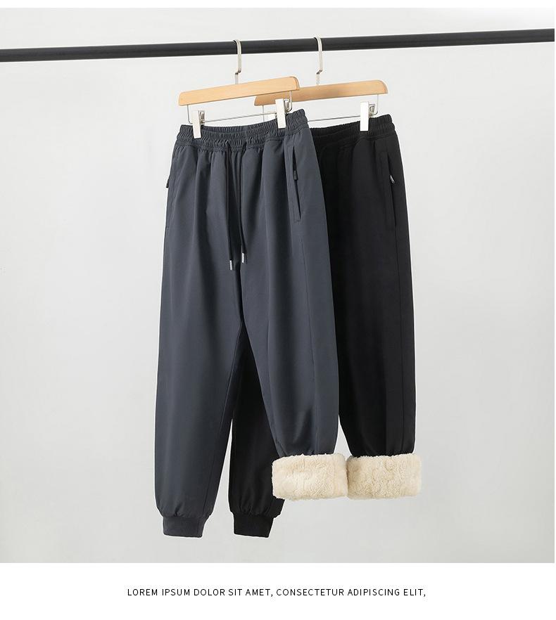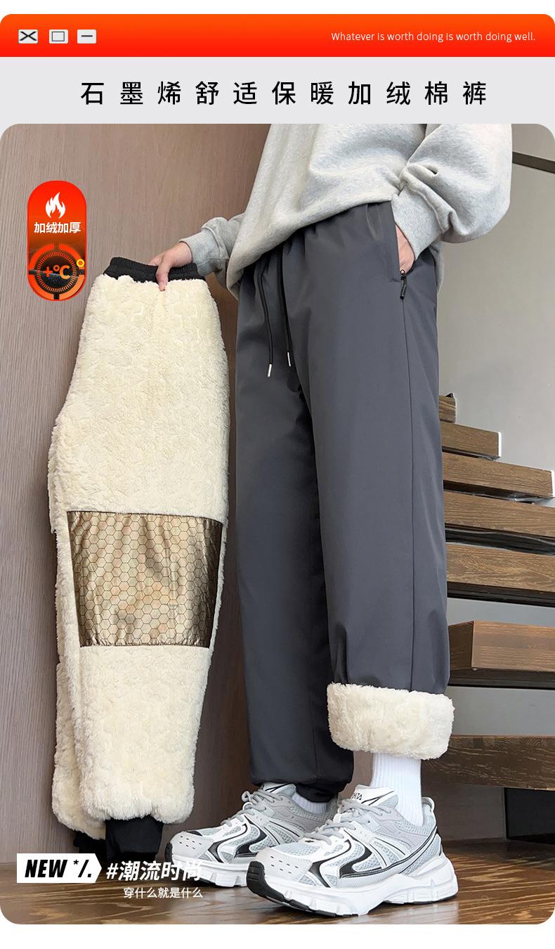 Pantalones de algodón afelpados y gruesos para hombre, cálidos y a prueba de frío para otoño e invierno, pantalones largos casuales con puño, pantalones holgados de lana de cordero para invierno