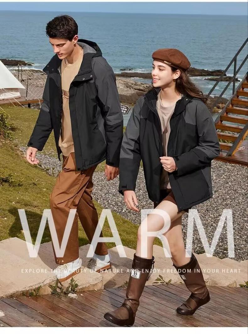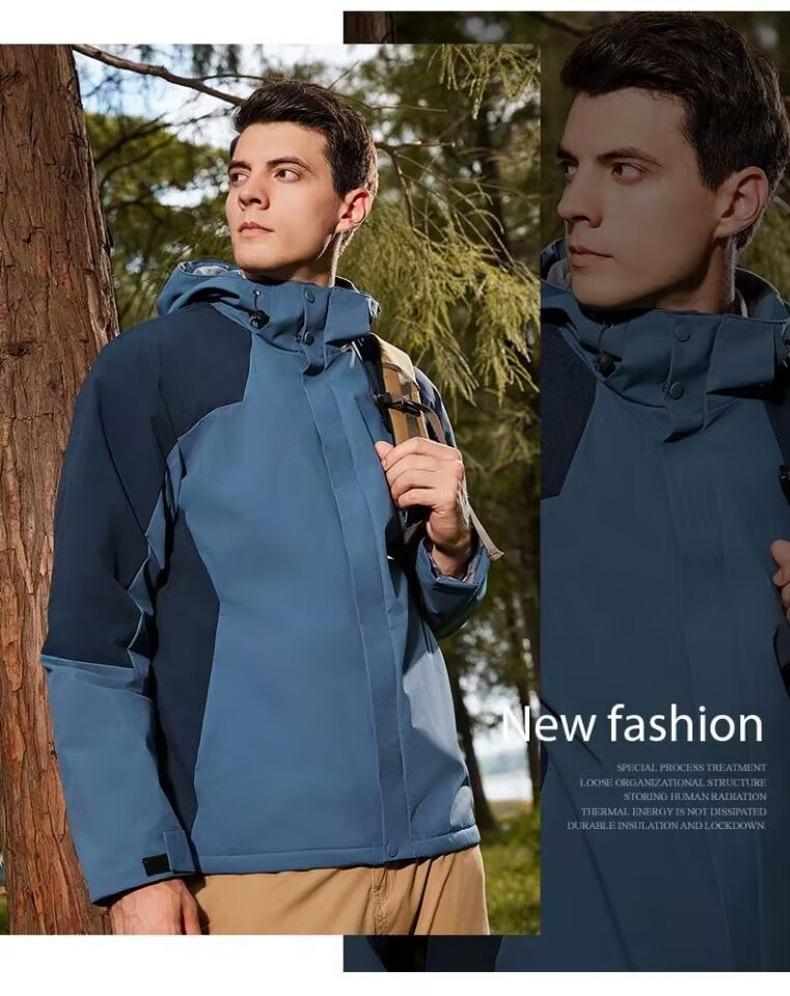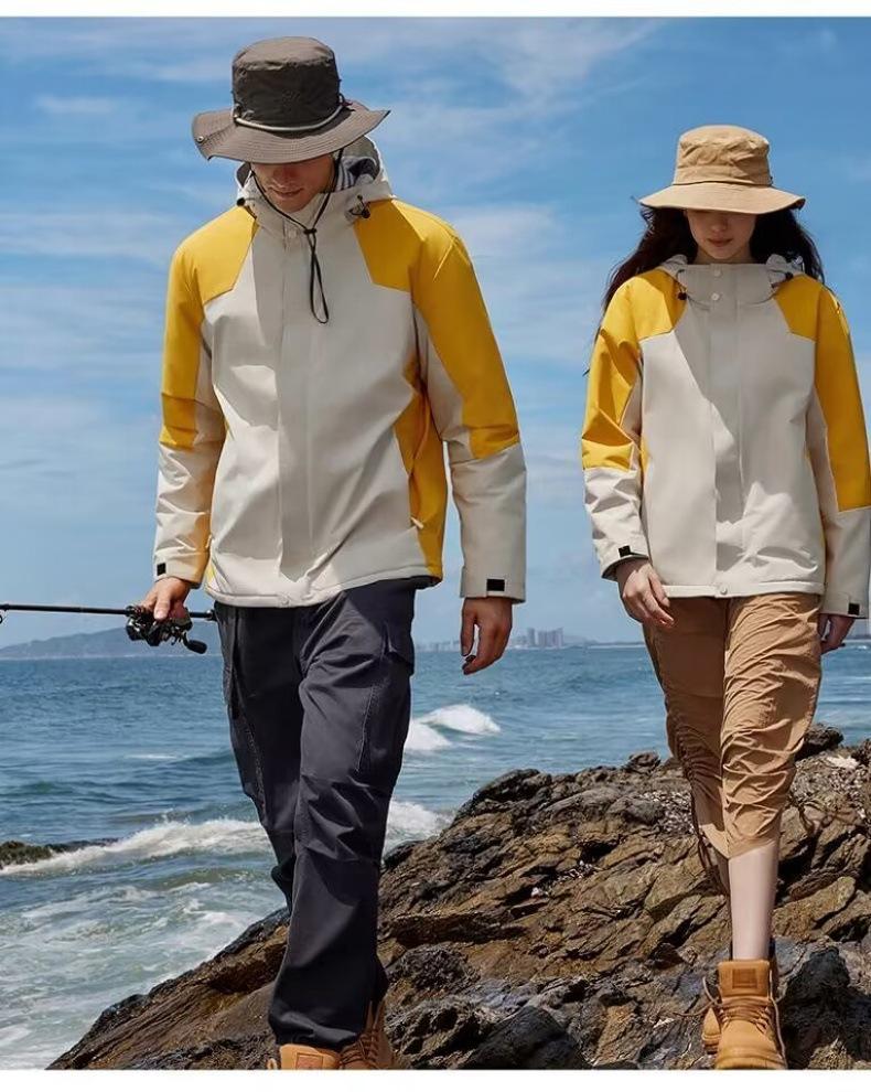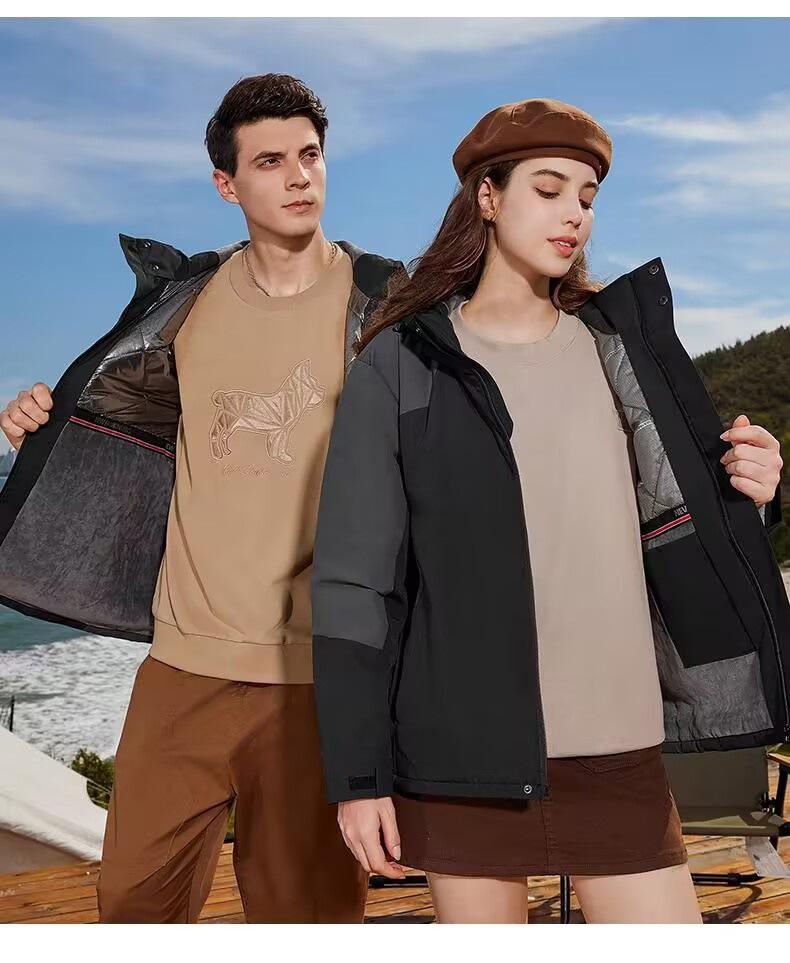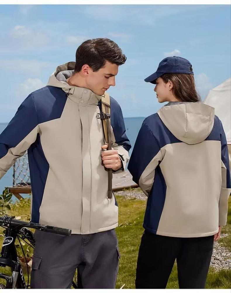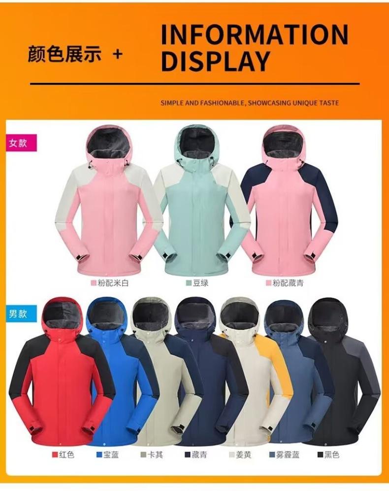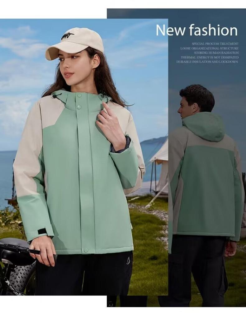 Chaqueta Estampada con Logo, Chaqueta de Invierno con Terciopelo, Ropa de Montaña Impermeable y Cortavientos para Exteriores para Hombres y Mujeres, Viaje en Coche