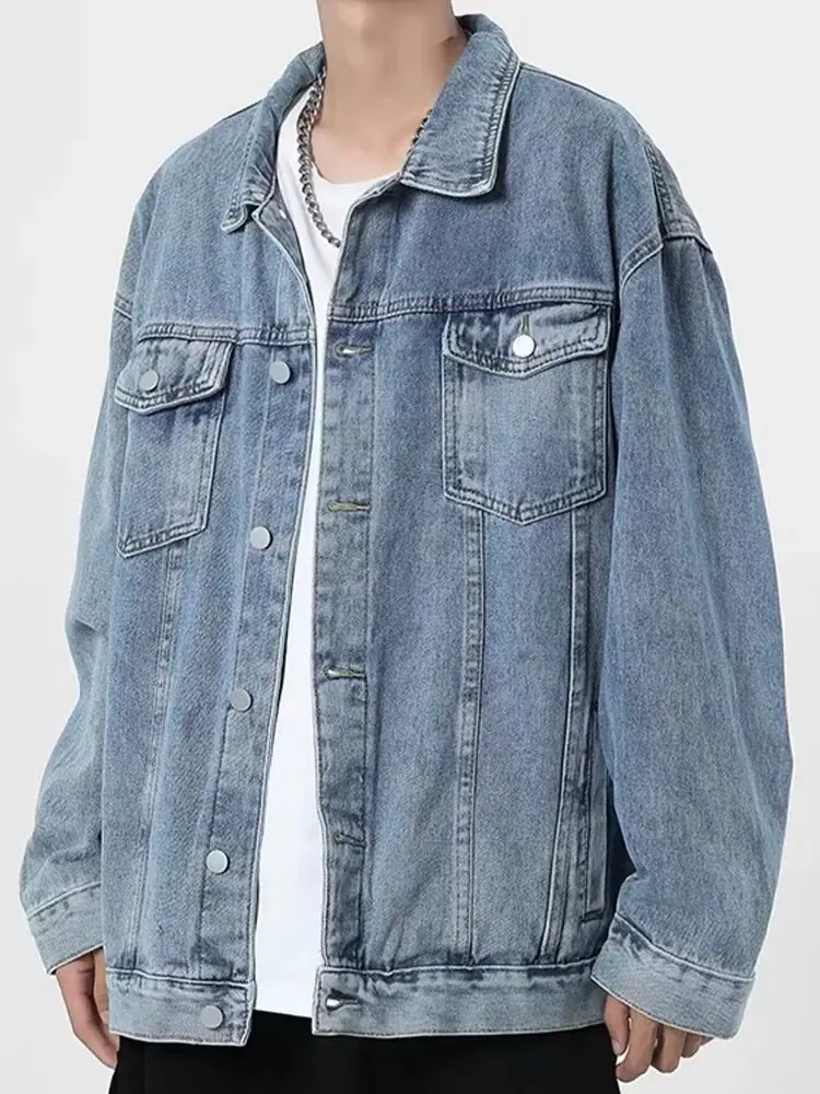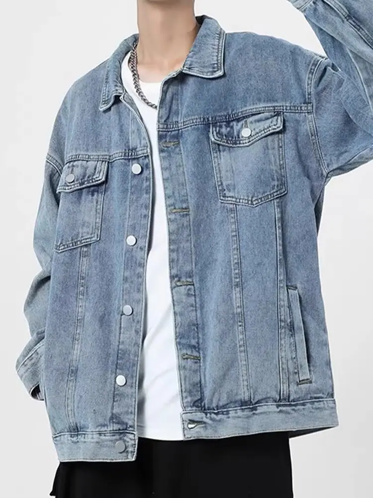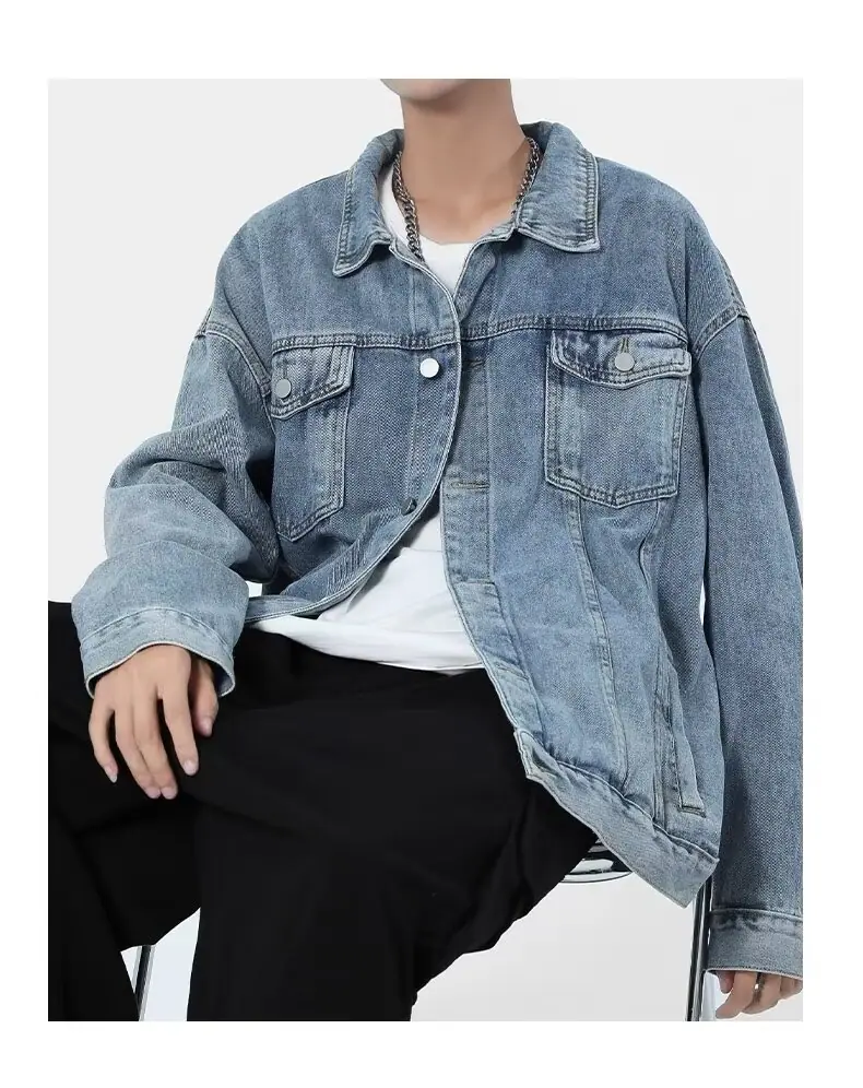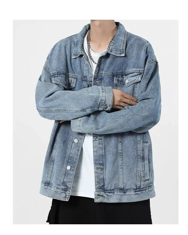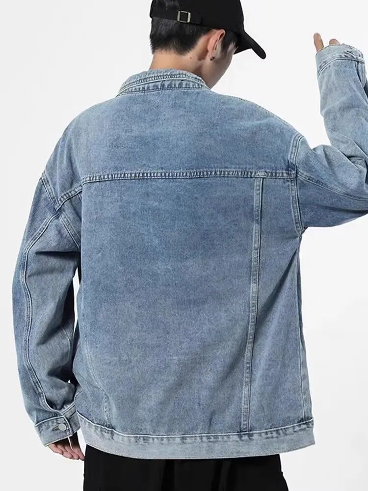 Chamarra de mezclilla retro americana para hombre, top holgado PUNK, guapo, moderno, primavera, otoño, casual, versátil, ropa de trabajo, chamarra de moda