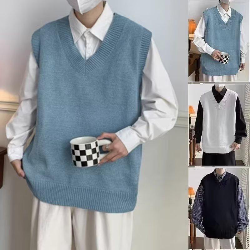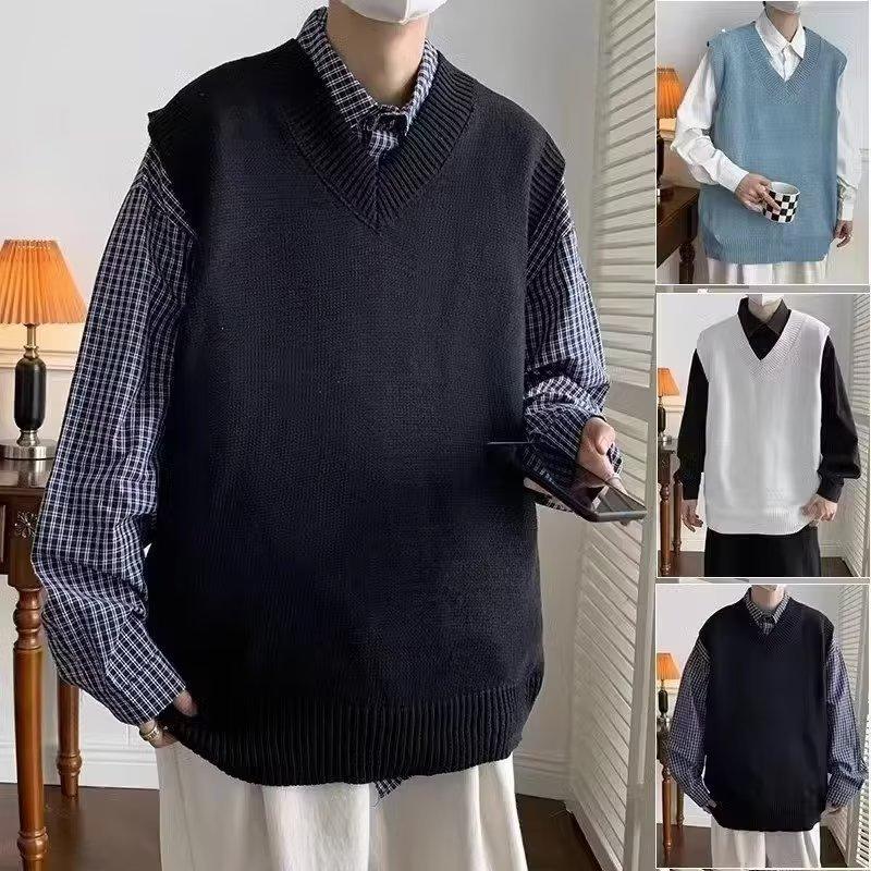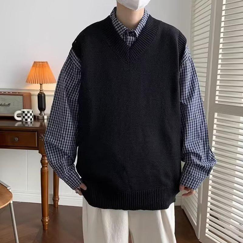 Chaleco de Punto con Cuello en V para Hombre Primavera y Otoño Versátil Ropa Exterior Ropa Interior Sin Mangas Chaleco de Hombro Combinación Casual con Camisa Tejido de Punto