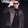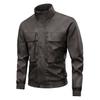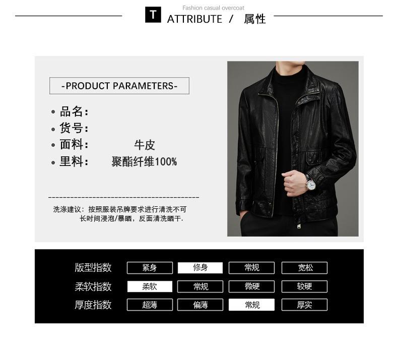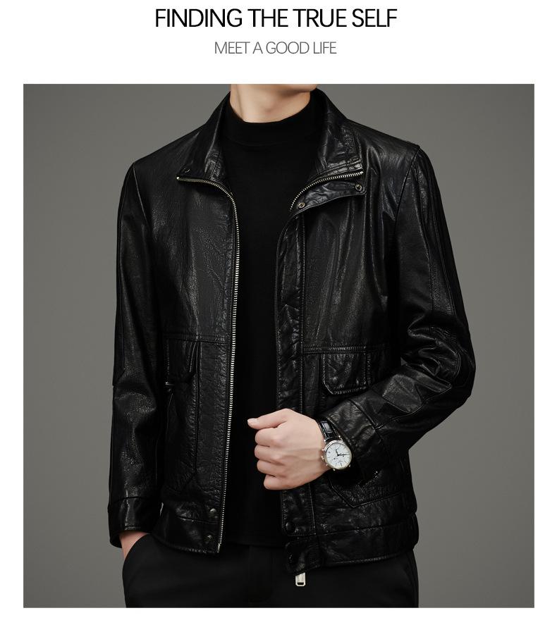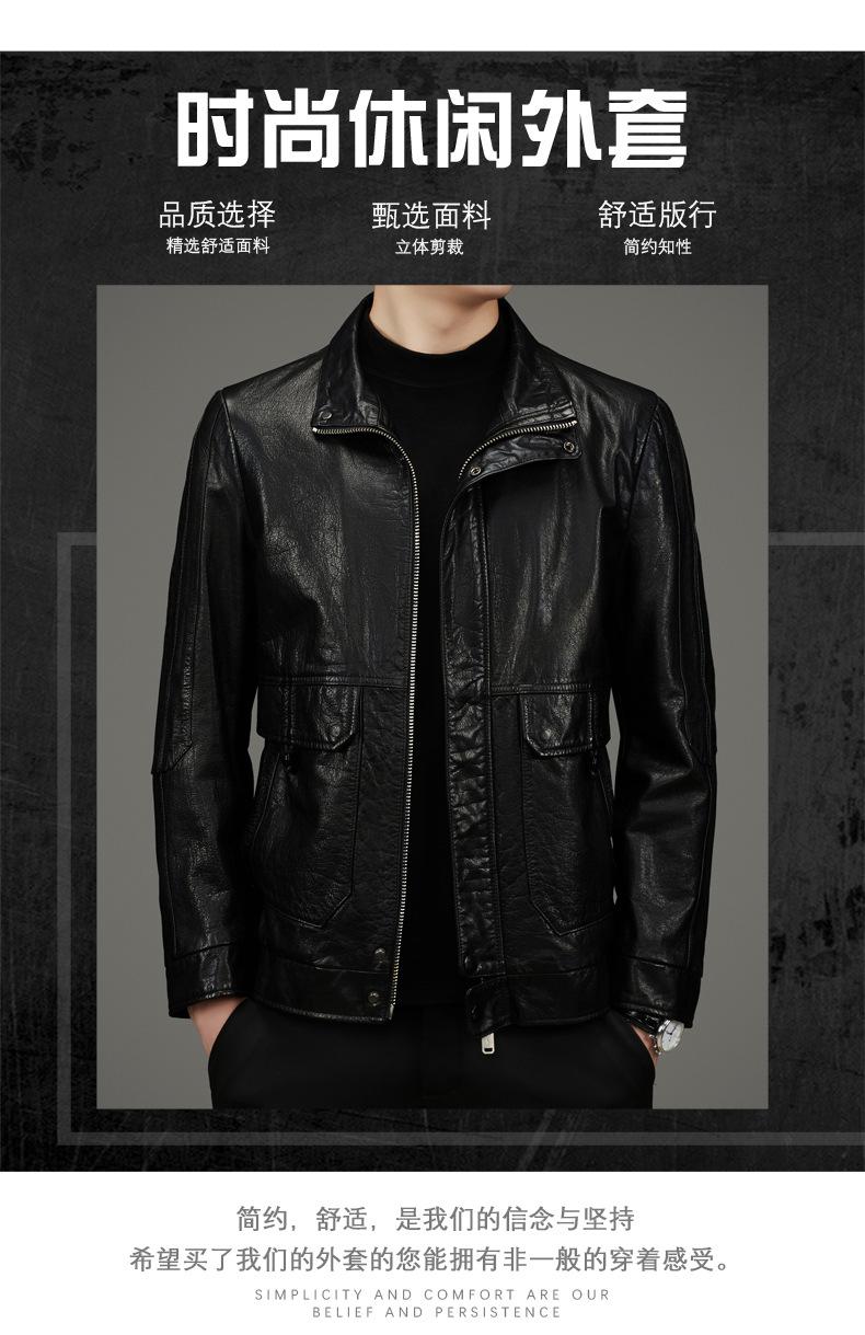 Chaqueta de Cuero Vacuno de Capa Superior Haining para Hombre Chaqueta de Motociclista de Cuero Genuino Cuello Vuelto Chaqueta de Cuero Abrigo de Cuero Vacuno Encerado Top de Moda para Hombre