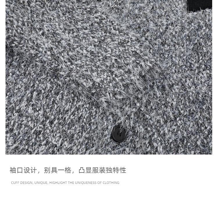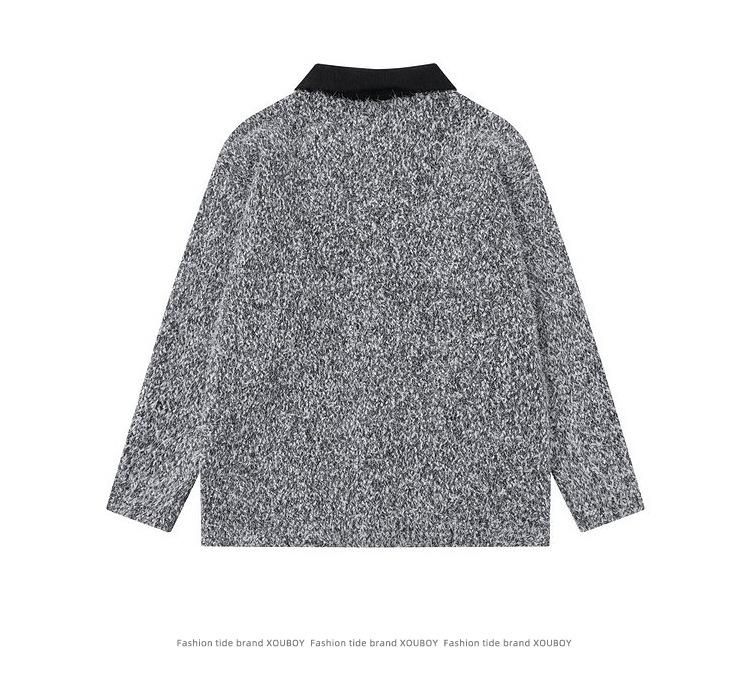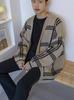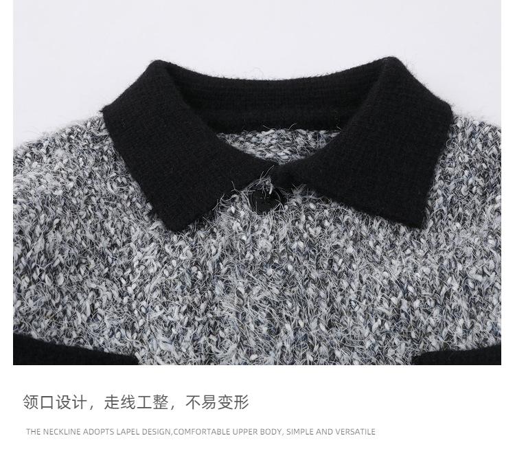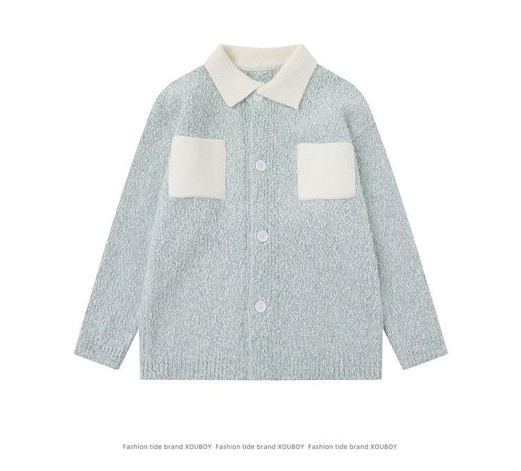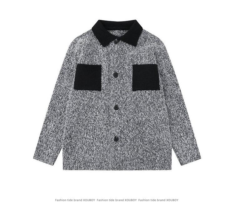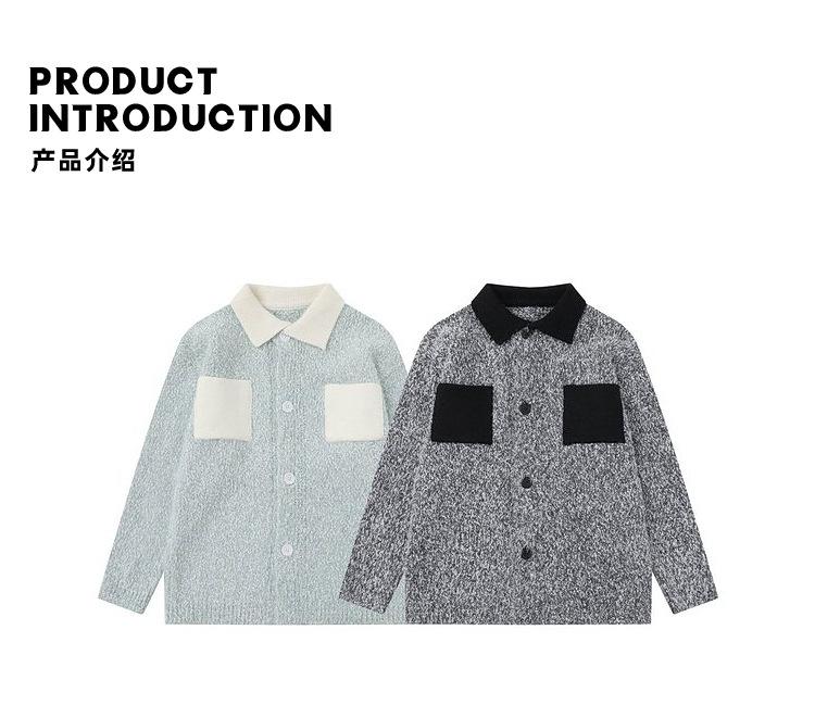 Suéter casual americano cleanfit estilo Chanel con cuello doblado para hombre y mujer, holgado, casual, estilo perezoso, cárdigan con bloques de color