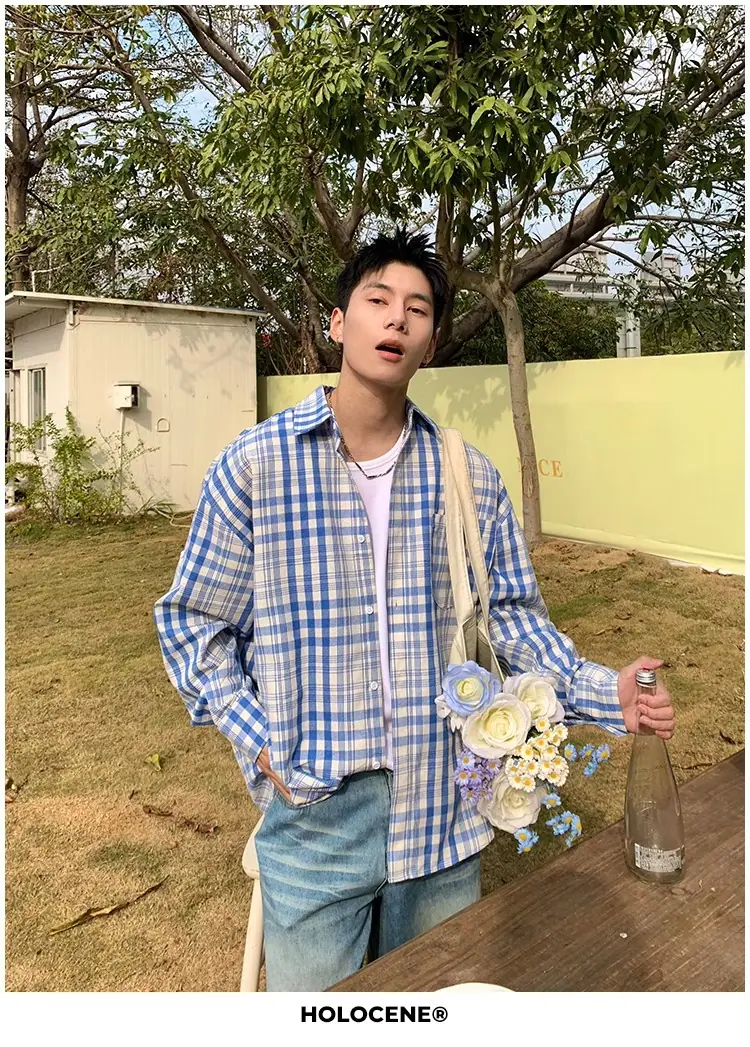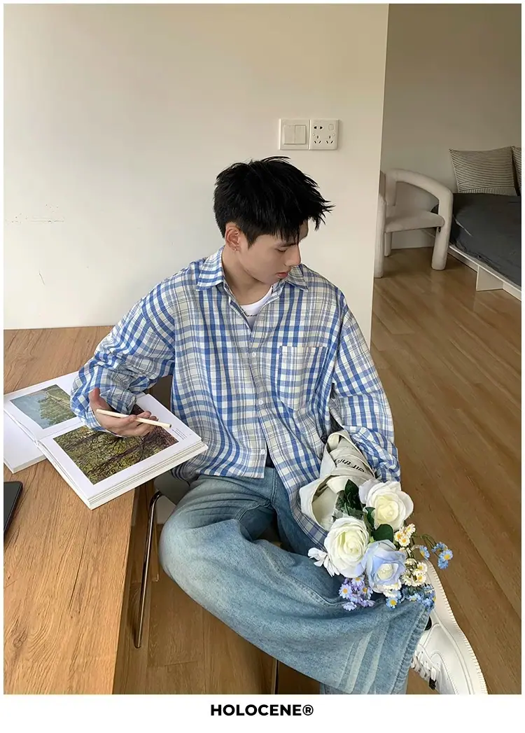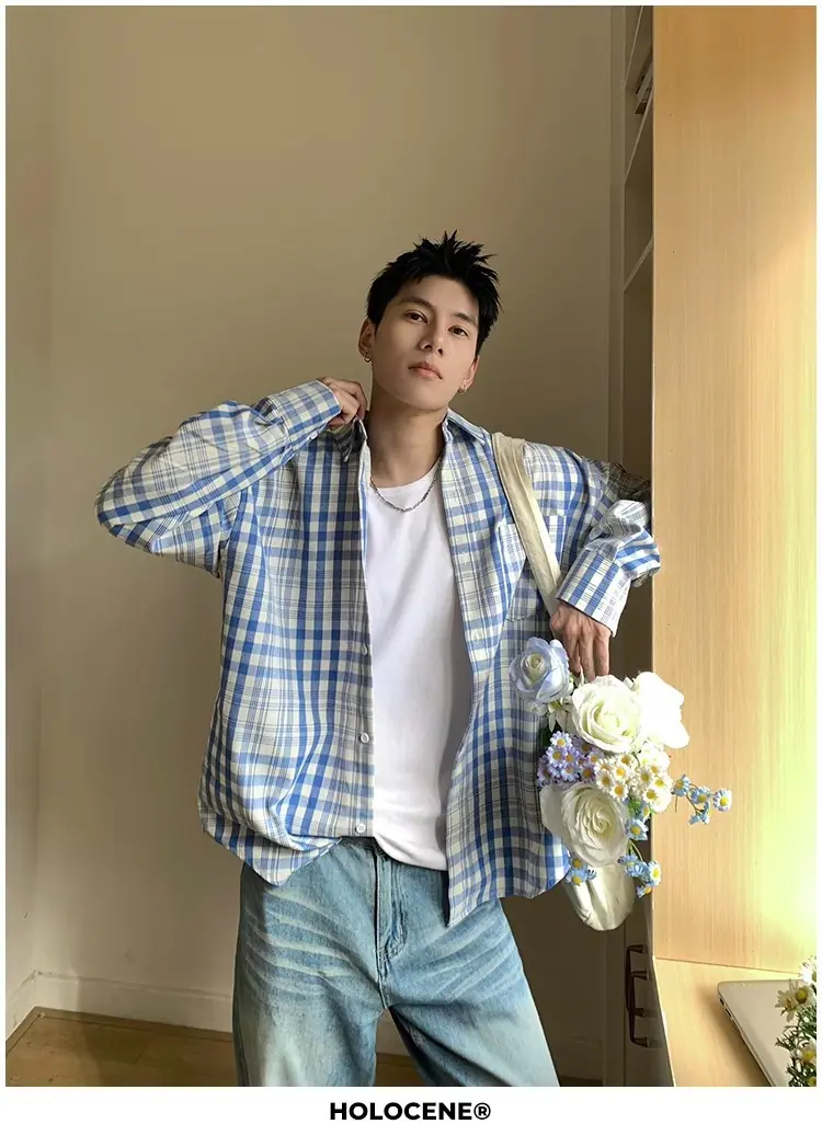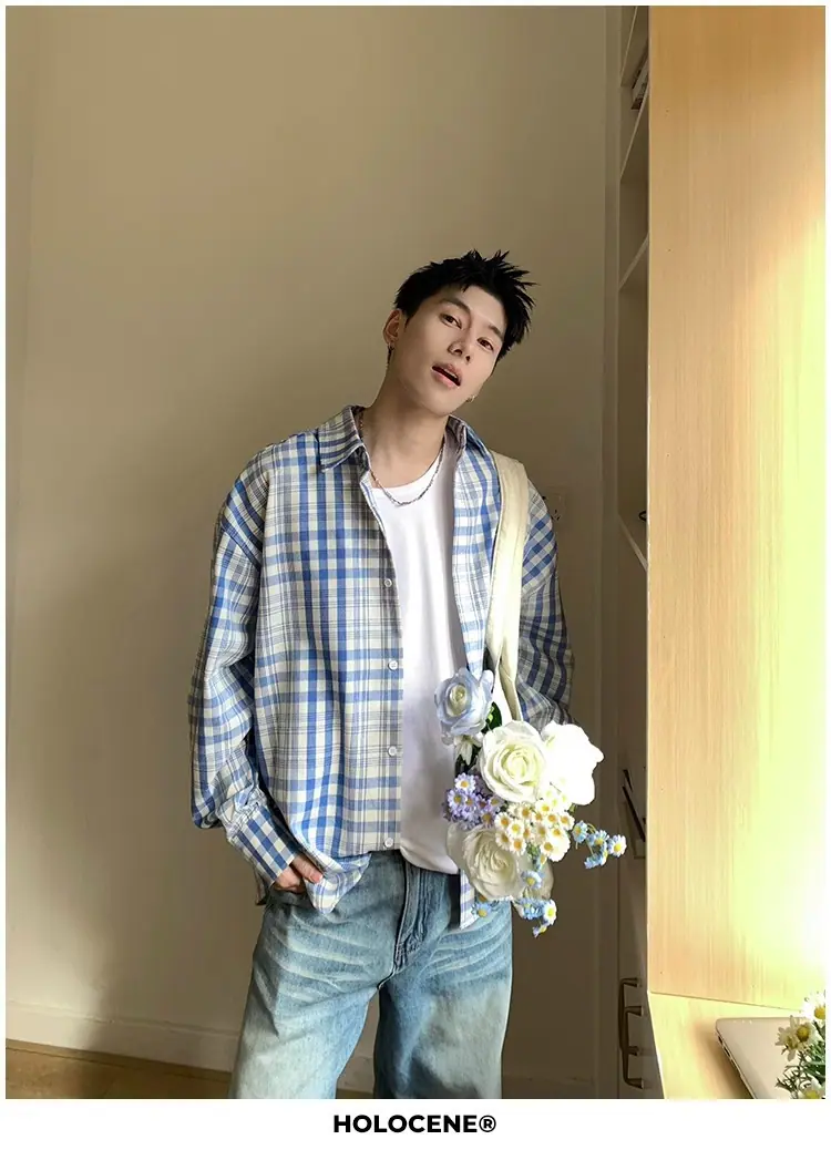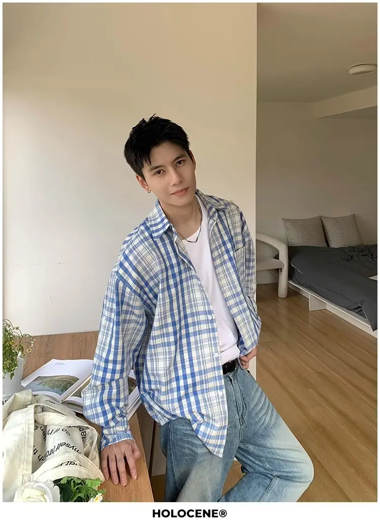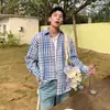 Camisa de Manga Larga a Cuadros con Bloques de Color Retro Americano para Hombre Primavera y Otoño 2025 Nueva Tendencia Marca Camisa Holgada Casual Perezosa