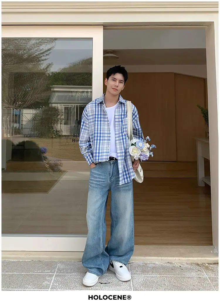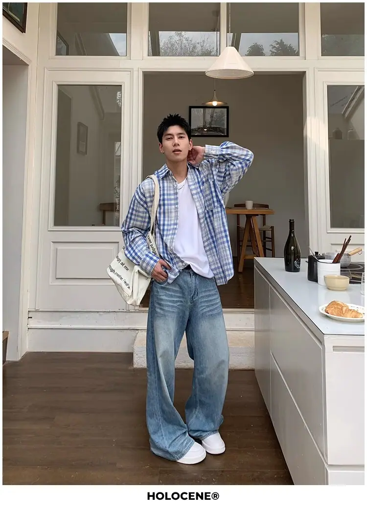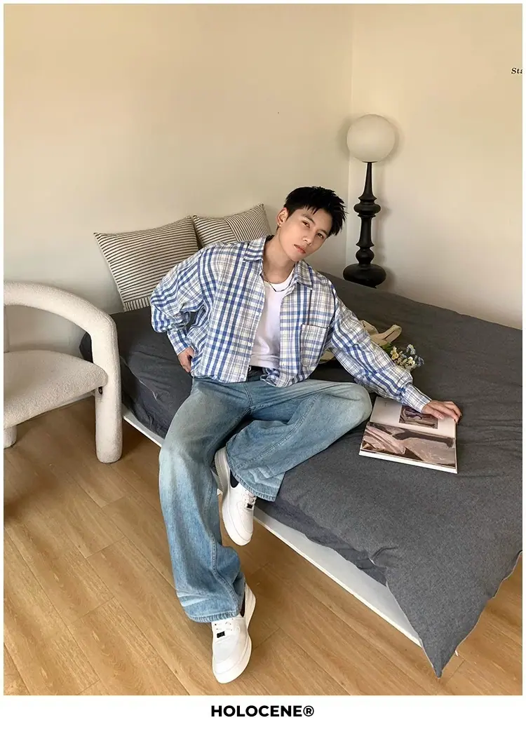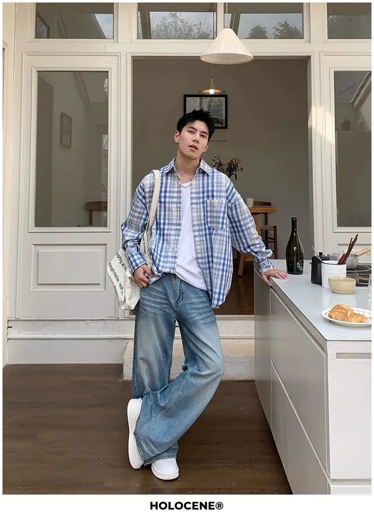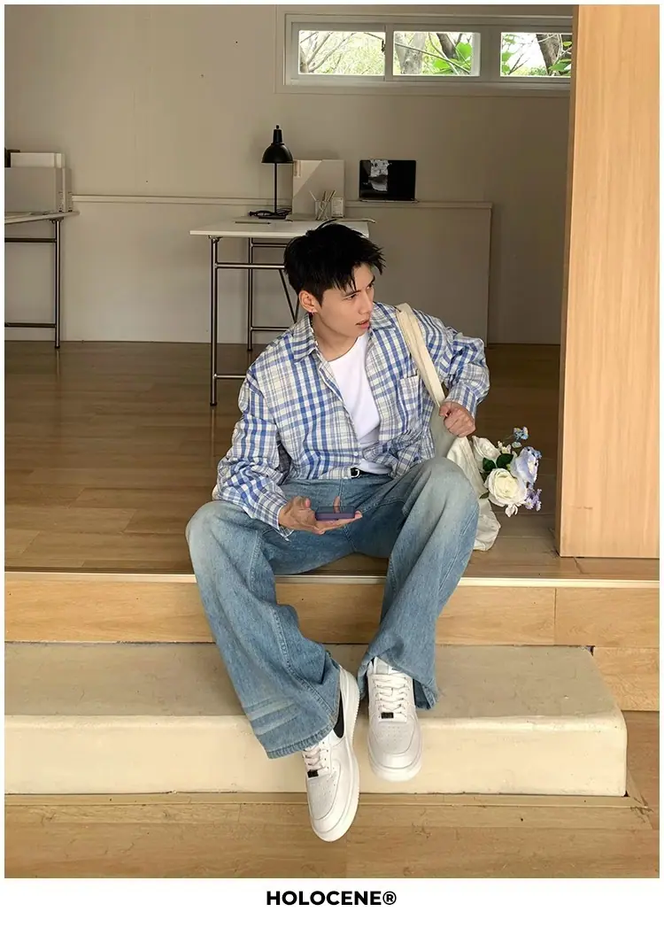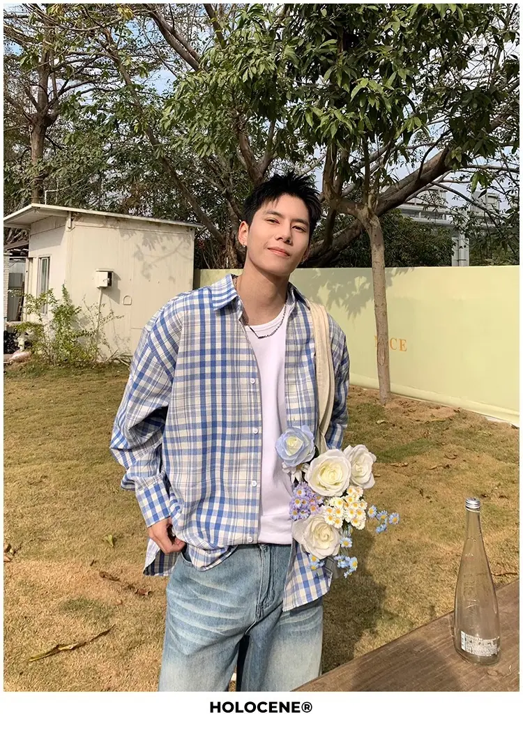 Camisa de Manga Larga a Cuadros con Bloques de Color Retro Americano para Hombre Primavera y Otoño 2025 Nueva Tendencia Marca Camisa Holgada Casual Perezosa
