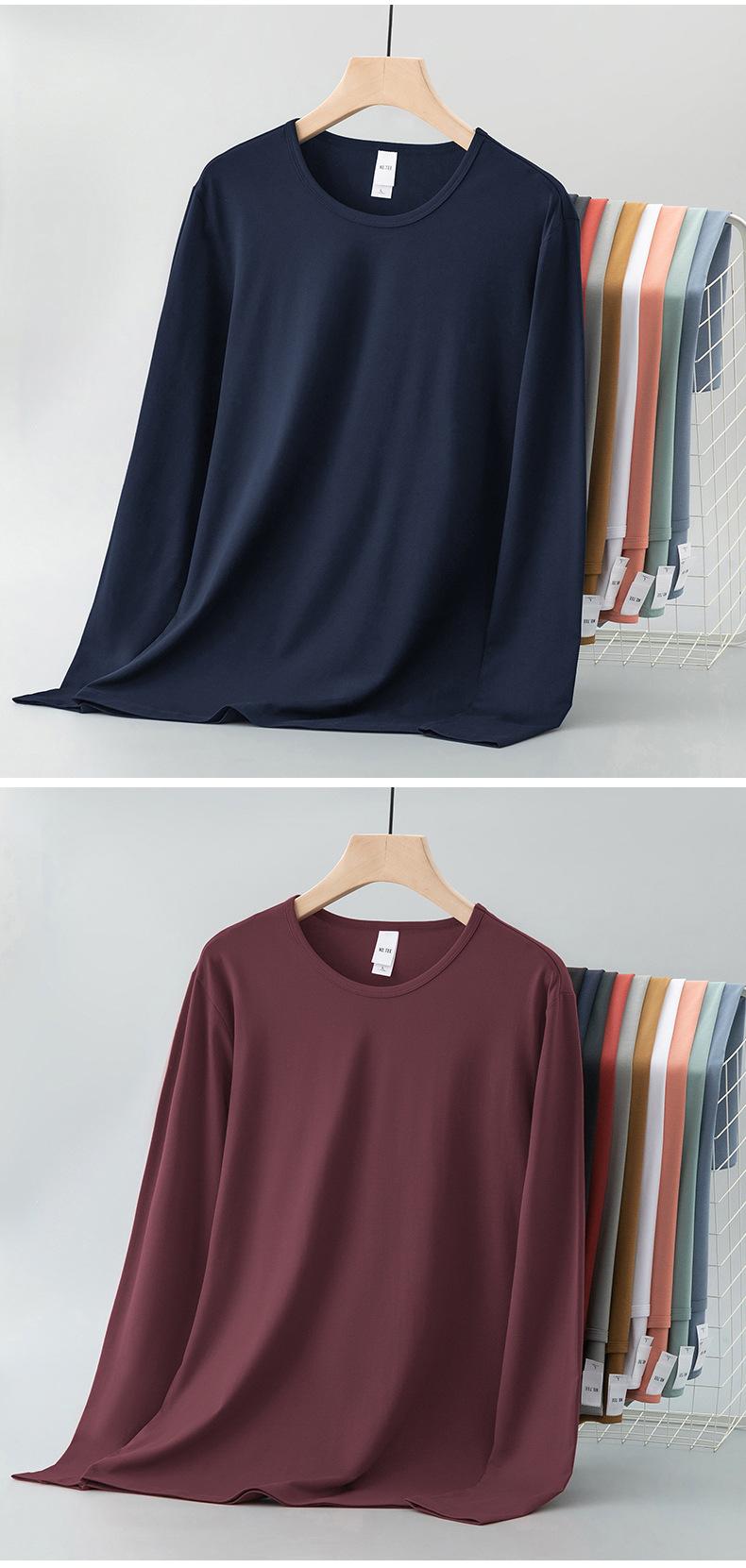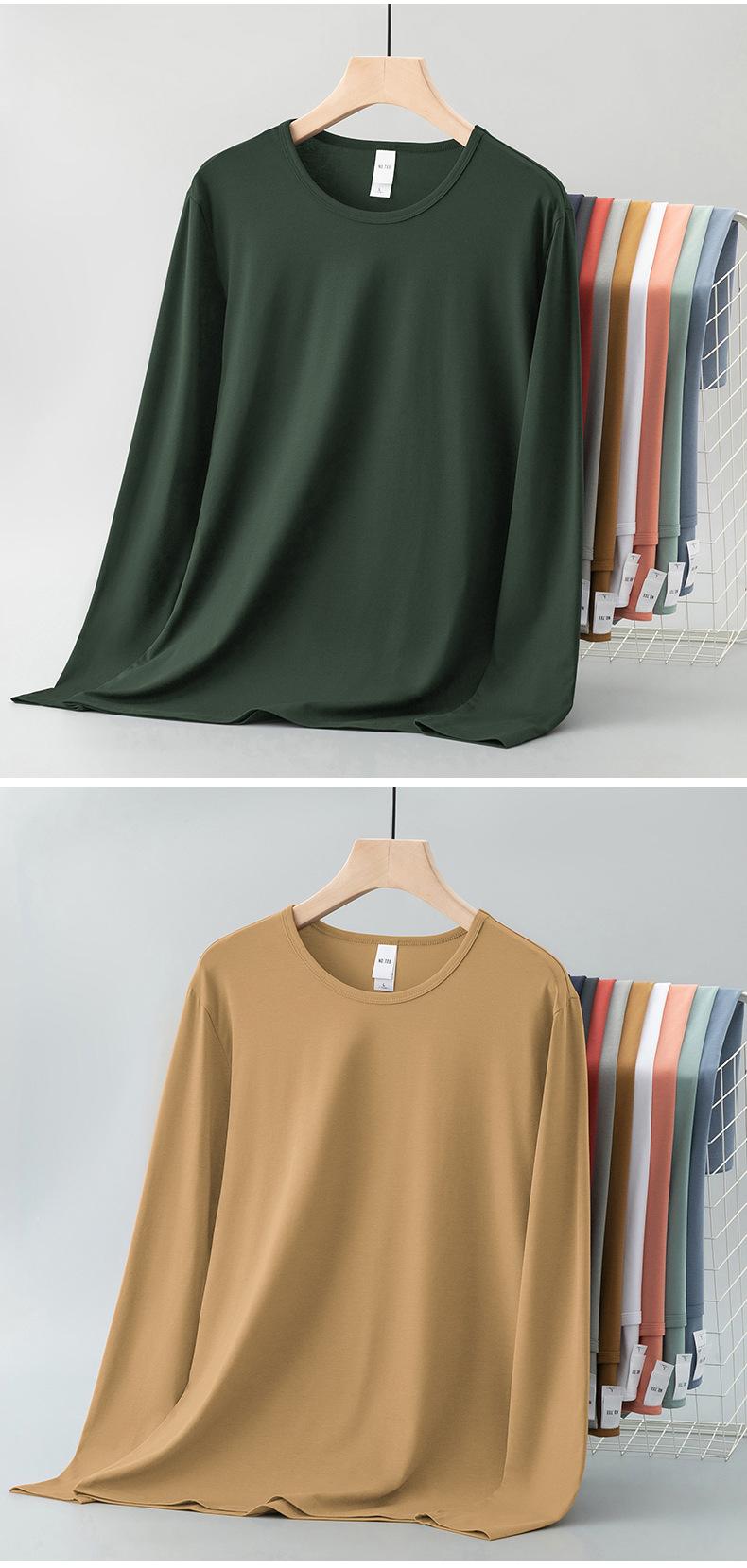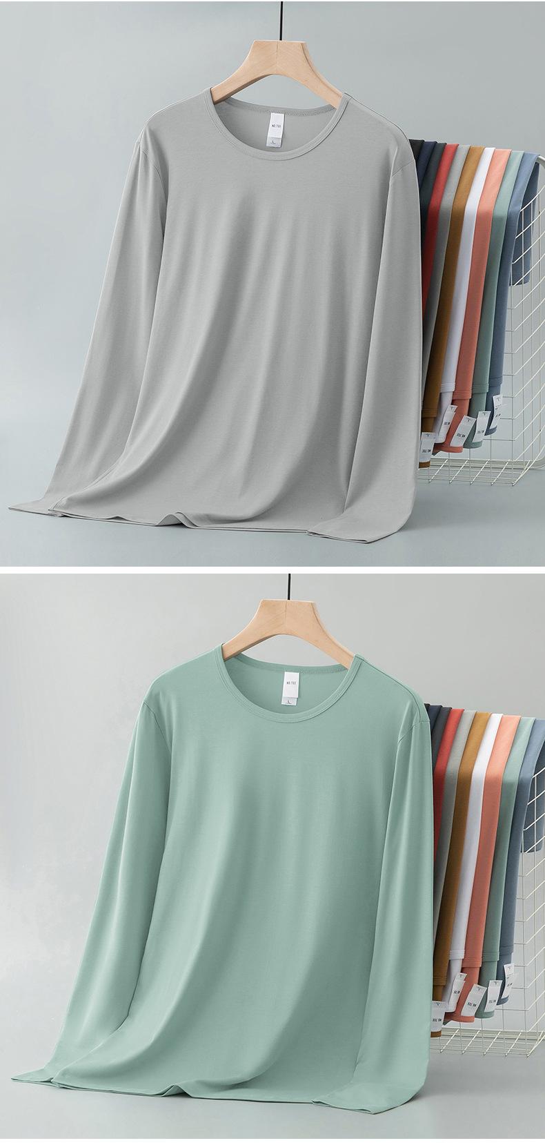 Playera Modal de Manga Larga para Hombre Otoño Invierno Camiseta Pequeña Ropa Interior Top Color Sólido Antibacterial Antiácaros Cuello Redondo Capa Base Trendy