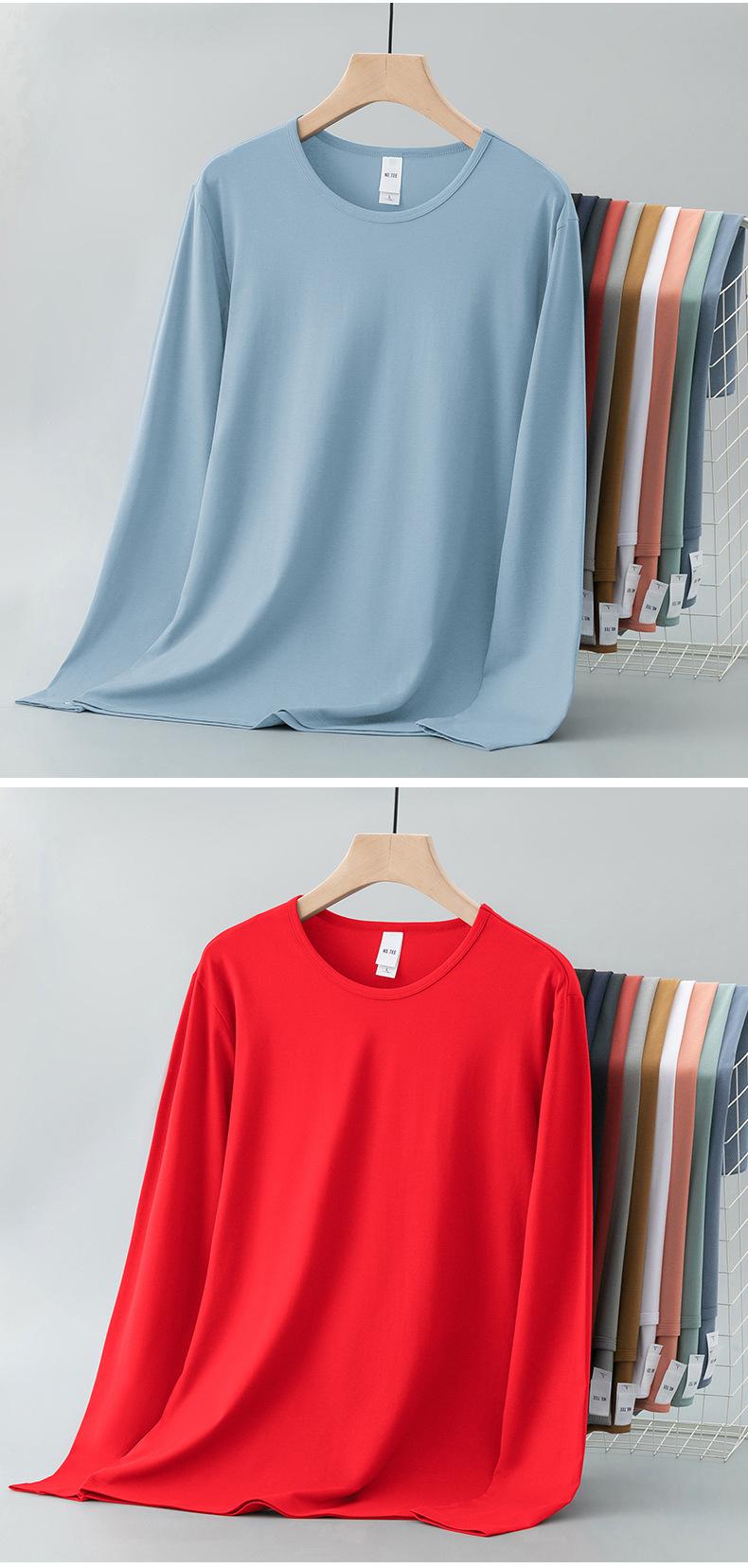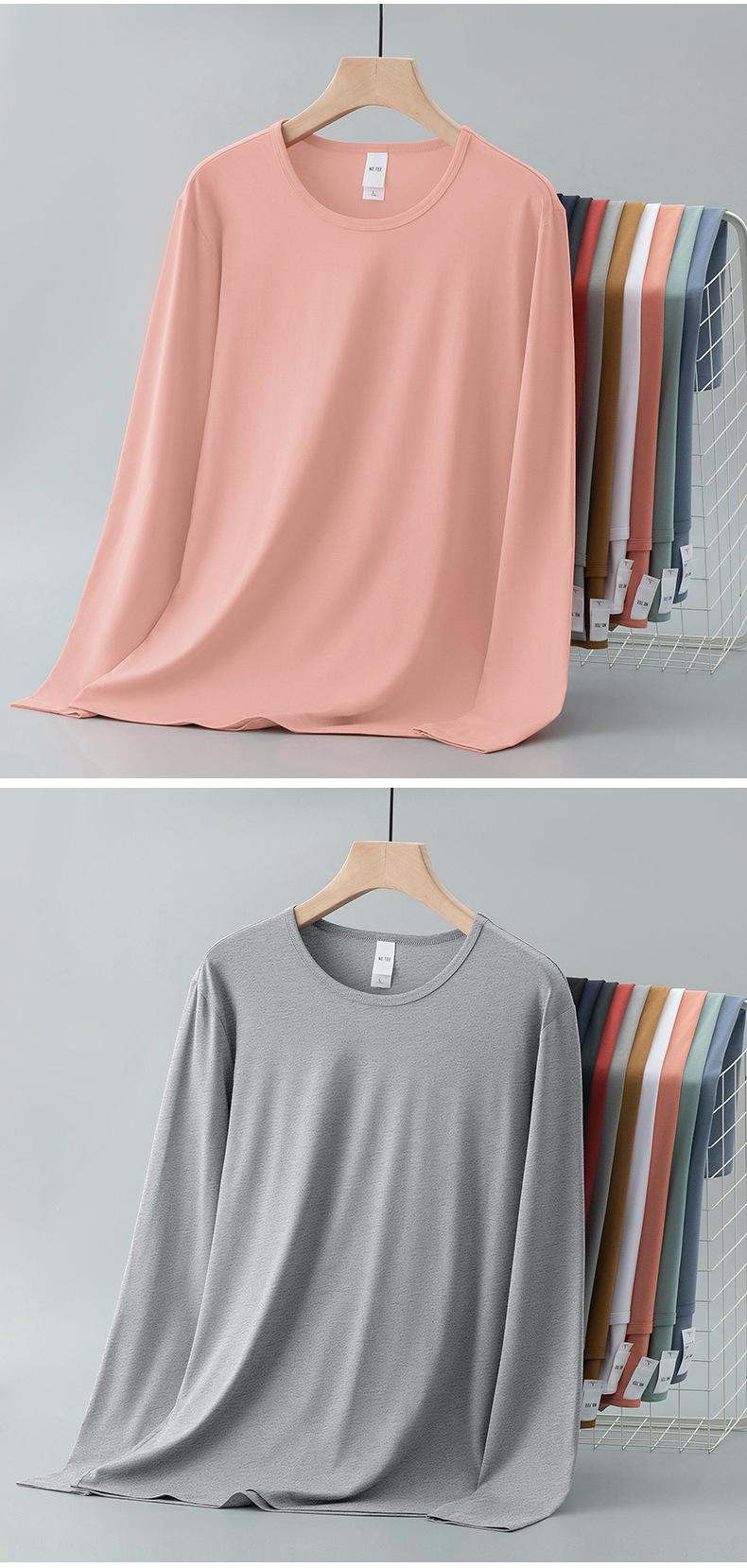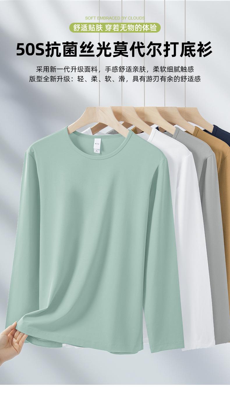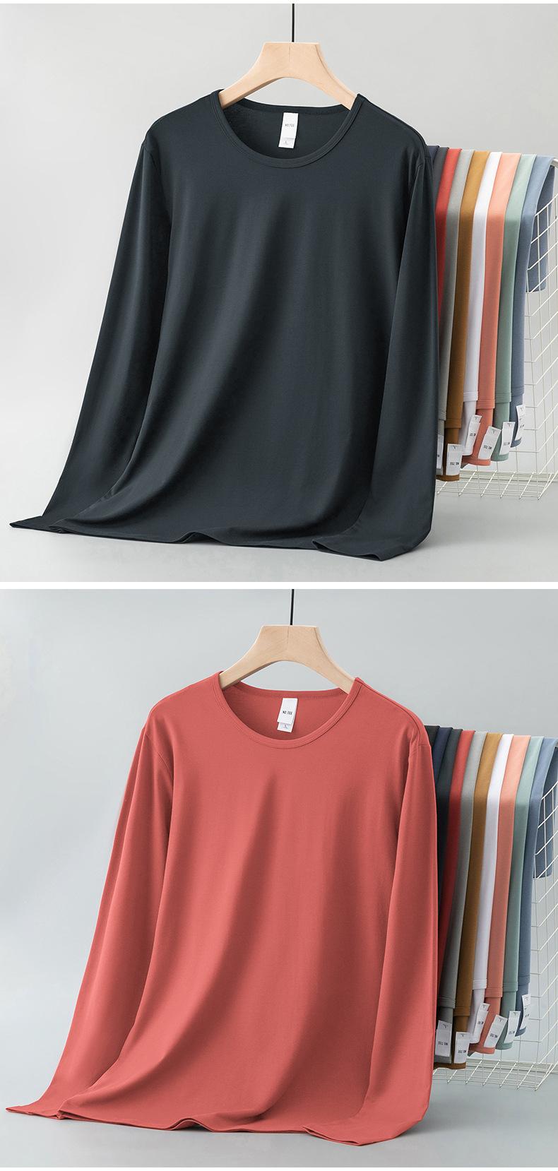 Playera Modal de Manga Larga para Hombre Otoño Invierno Camiseta Pequeña Ropa Interior Top Color Sólido Antibacterial Antiácaros Cuello Redondo Capa Base Trendy