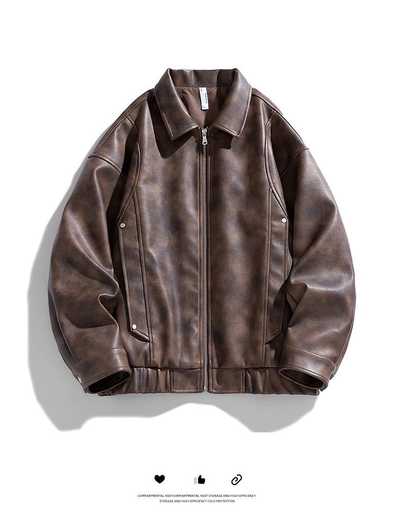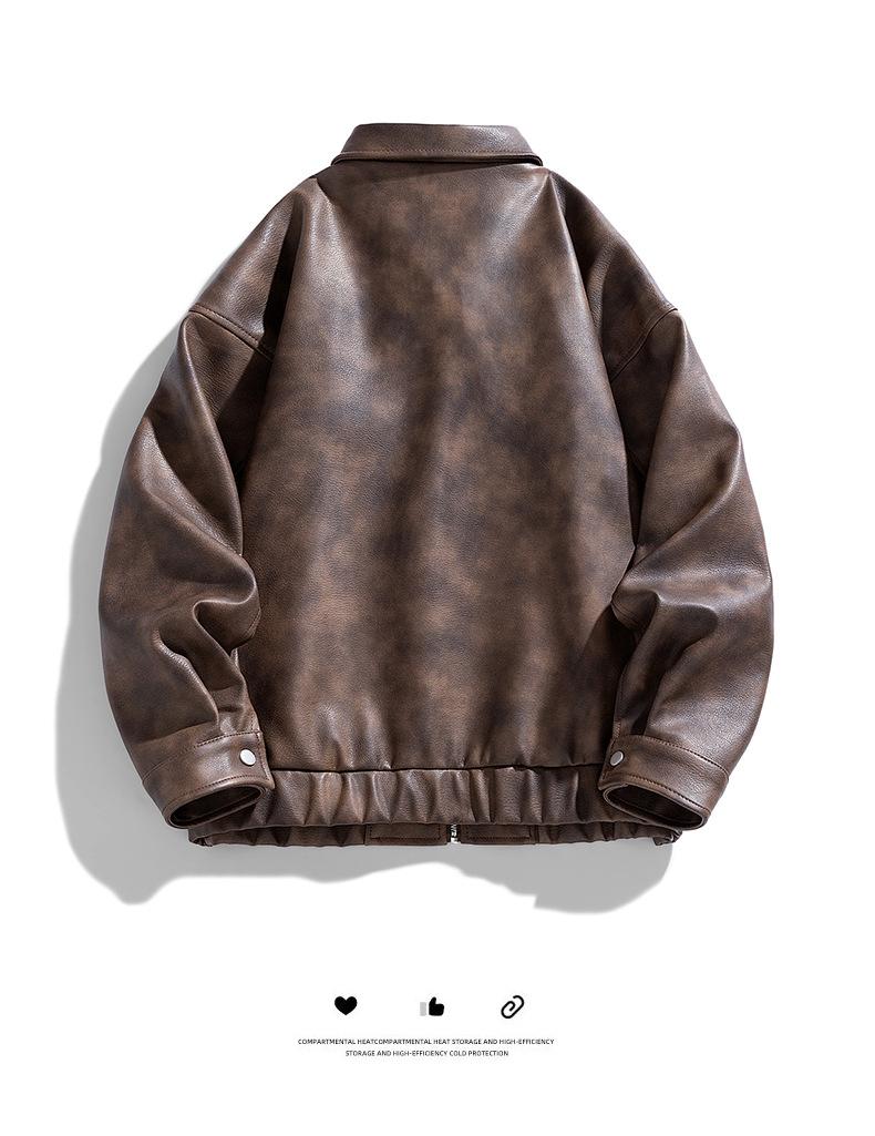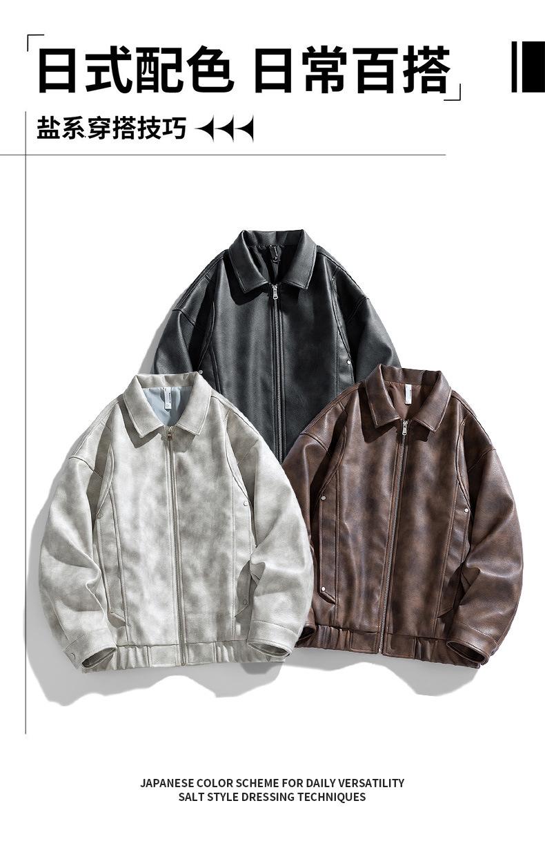 2024 Otoño Nueva Chaqueta Suelta Chaqueta de Cuero Hombres Traje de Motociclista Moda Casual Chaqueta de Cuero Abrigo Tendencia Material PU