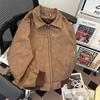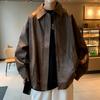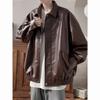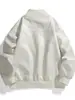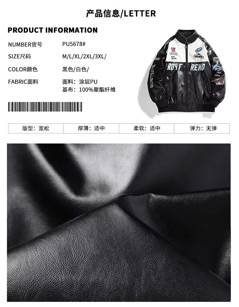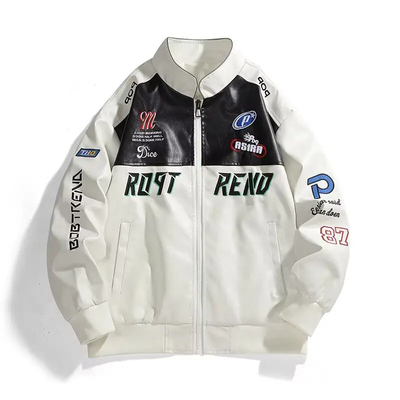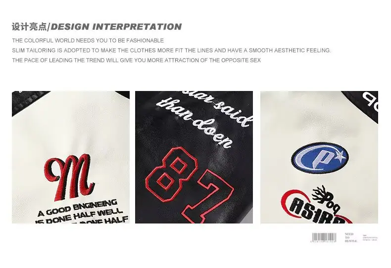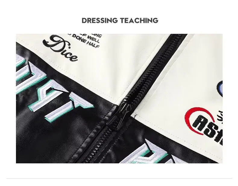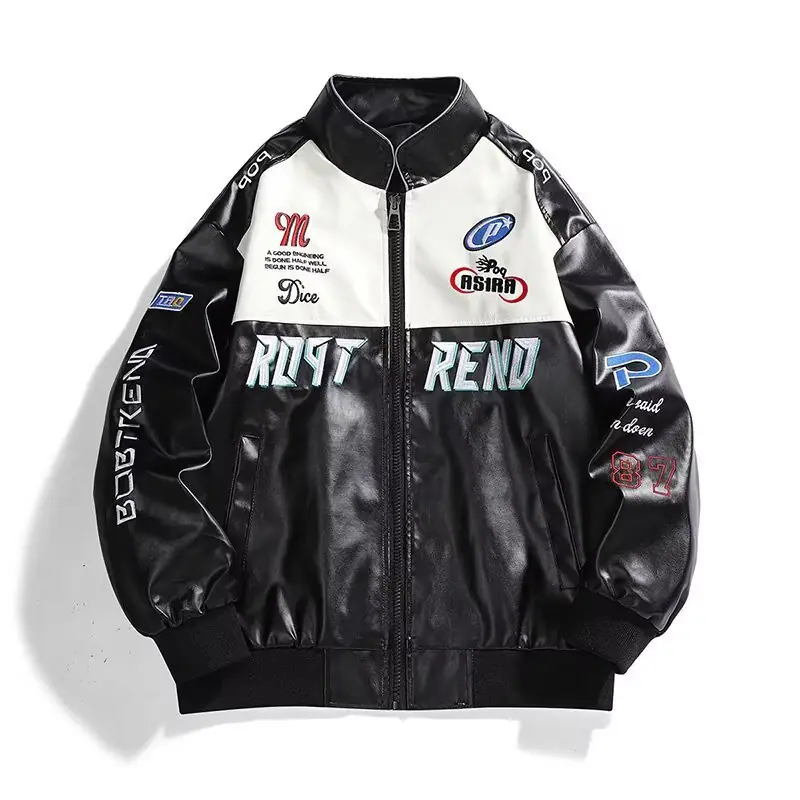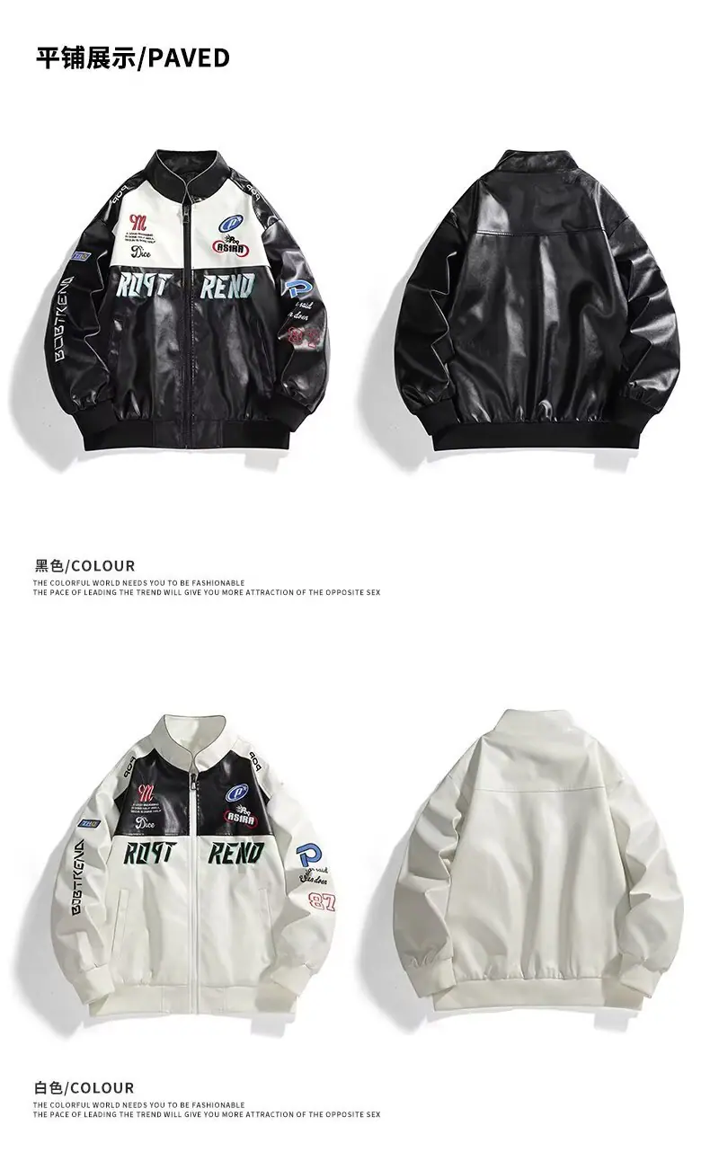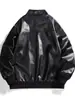 Chaqueta de Retazos de Cuero PU con Bordado de Letras para Primavera y Otoño para Hombre, Cuello Alto, Americana Retro Moderna, Piqué, Guapo, Holgada, Versátil