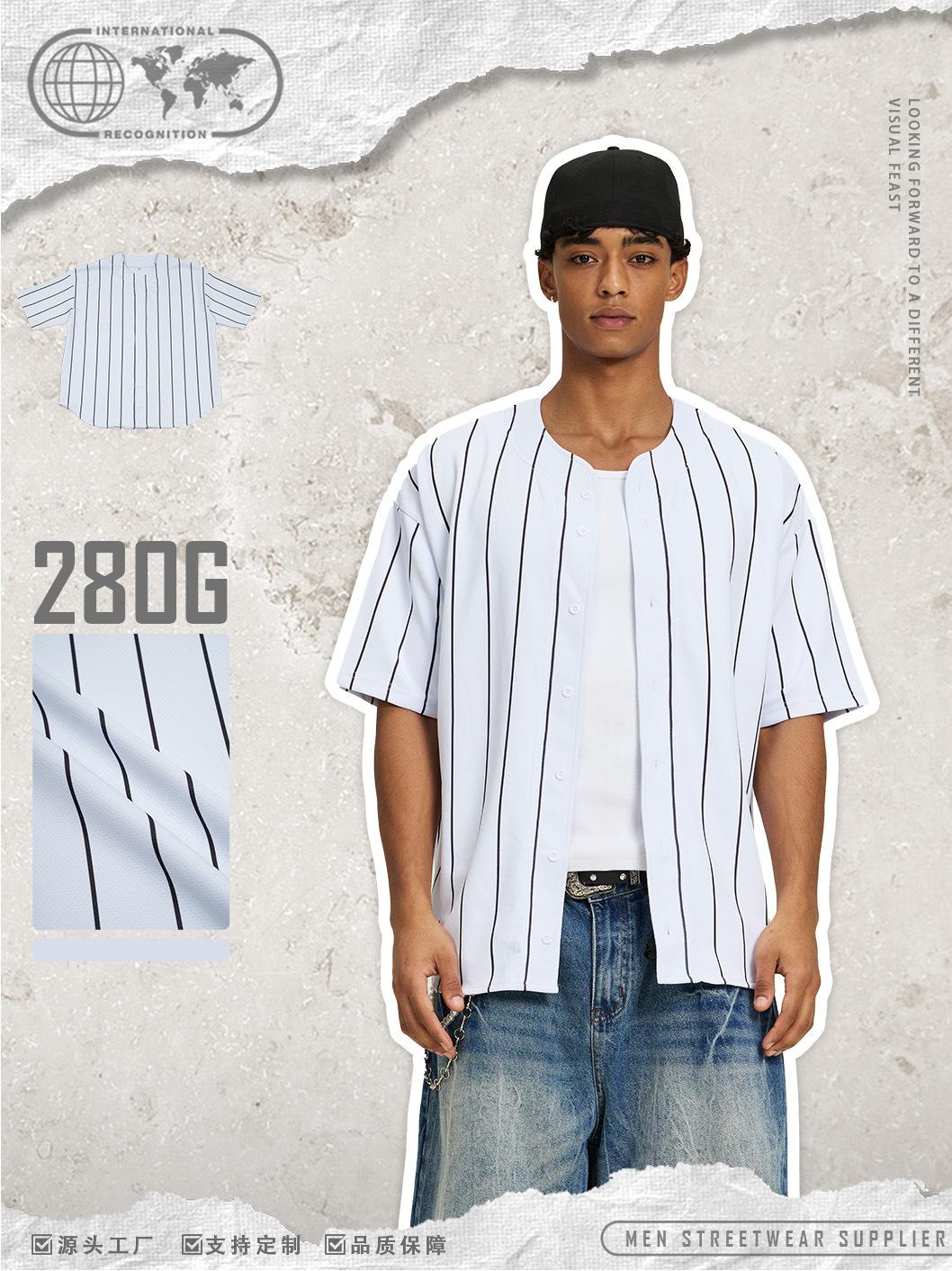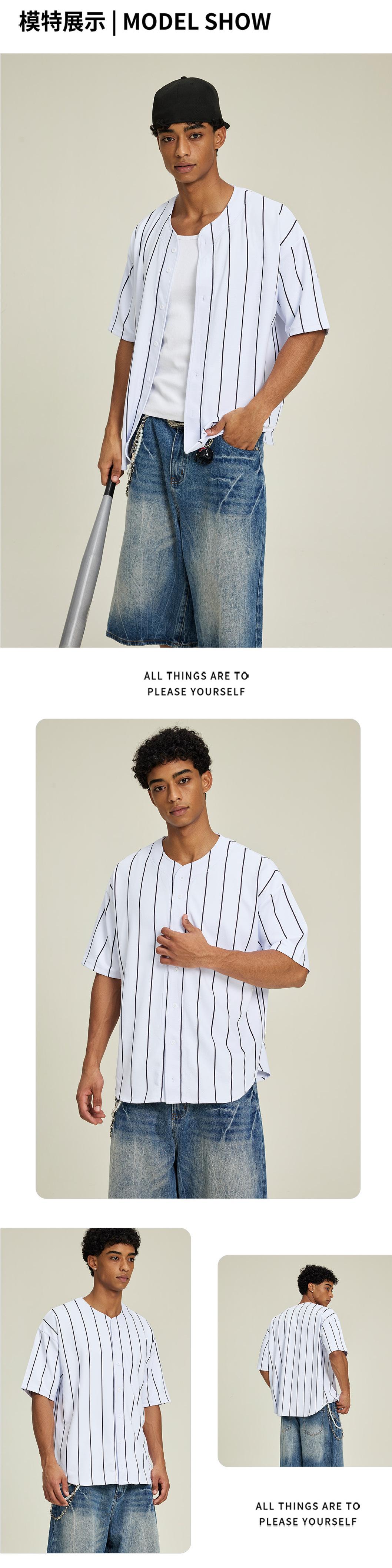 Ropa de Hombre ETAI|Camiseta de Béisbol de Rayas Finas Estilo Deportivo Casual Transfronterizo Cárdigan Holgado de Moda para Hombre Manga Corta