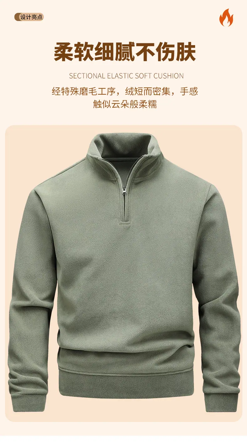 Sudadera Nueva de Otoño e Invierno 400g para Hombre Sencilla Casual Holgada de Manga Larga Camiseta para Hombre Medio Pecho Cuello Vuelto Sudadera de Color Sólido