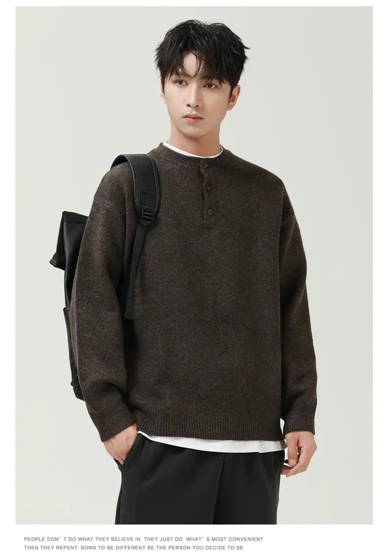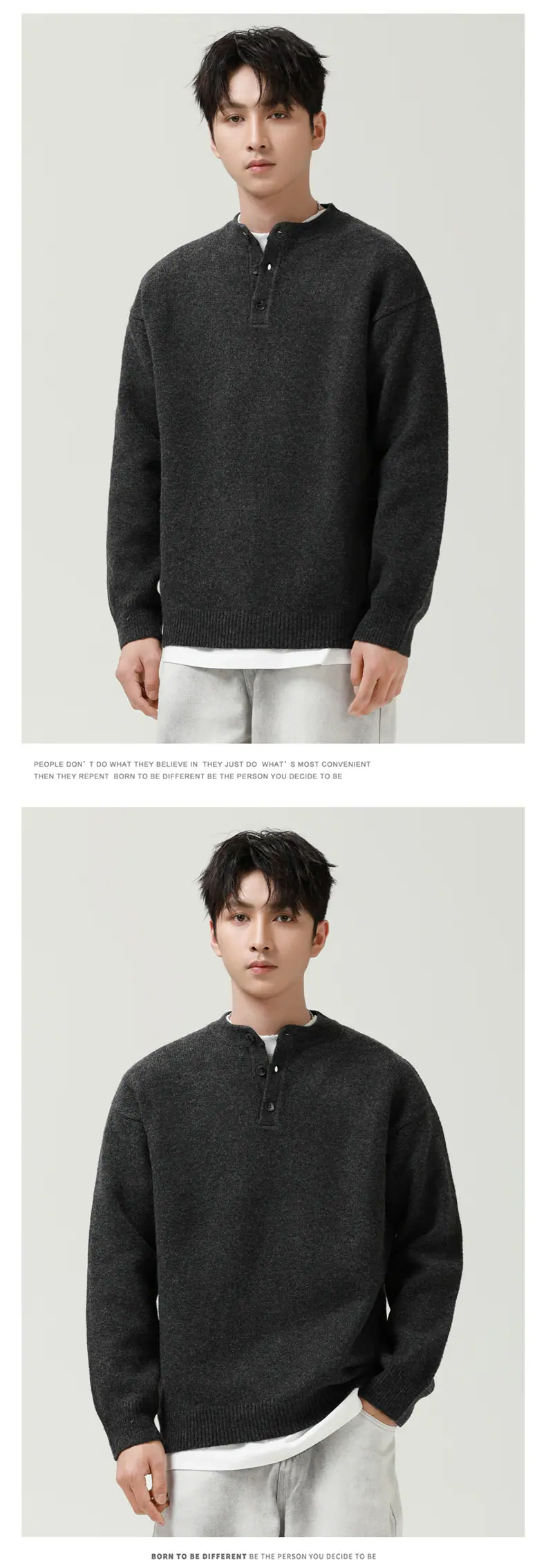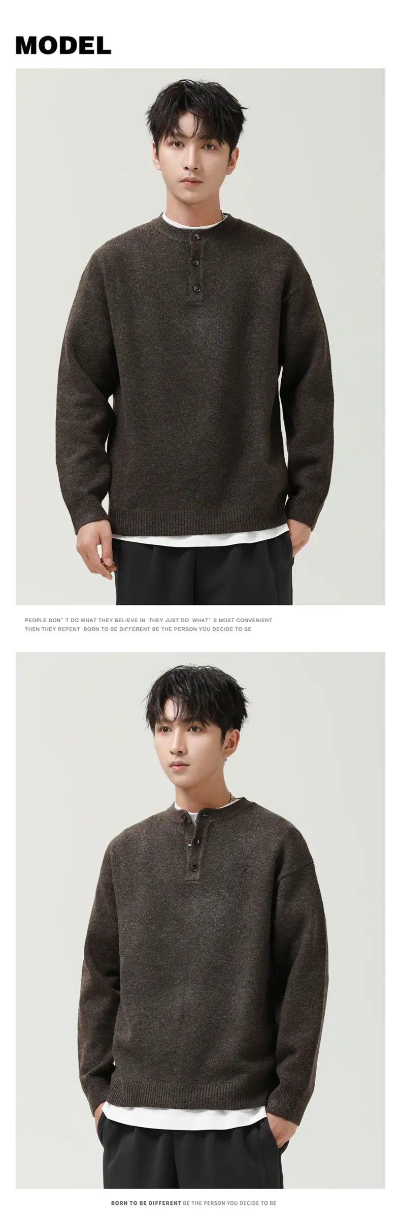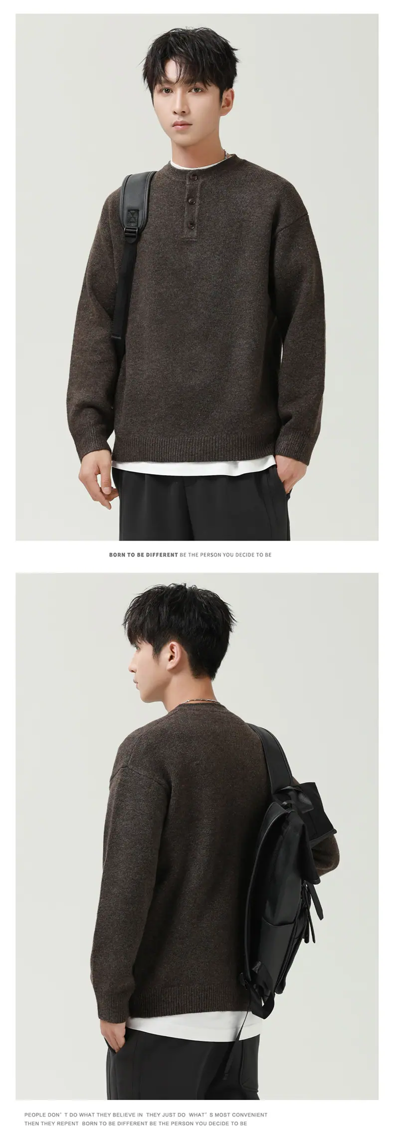 Suéter de punto para hombre con cuello redondo y tres botones 2025 otoño nuevo moda para hombre casual moderno minimalista top punto