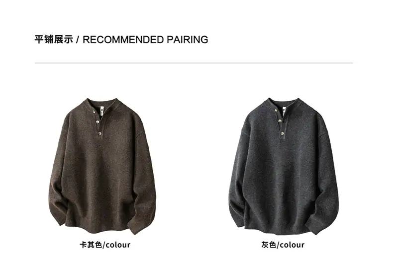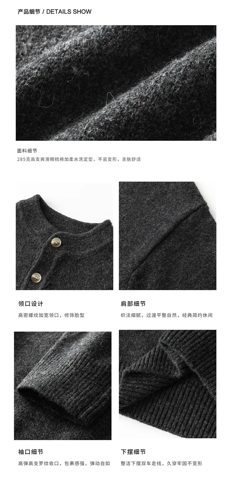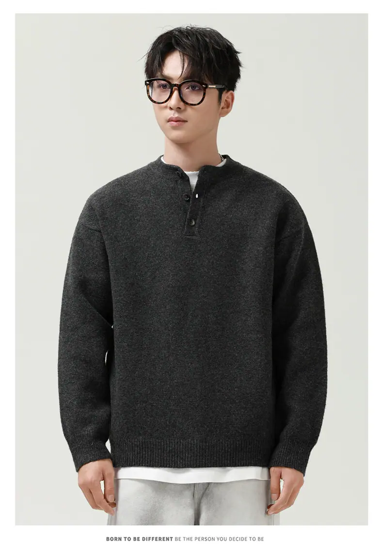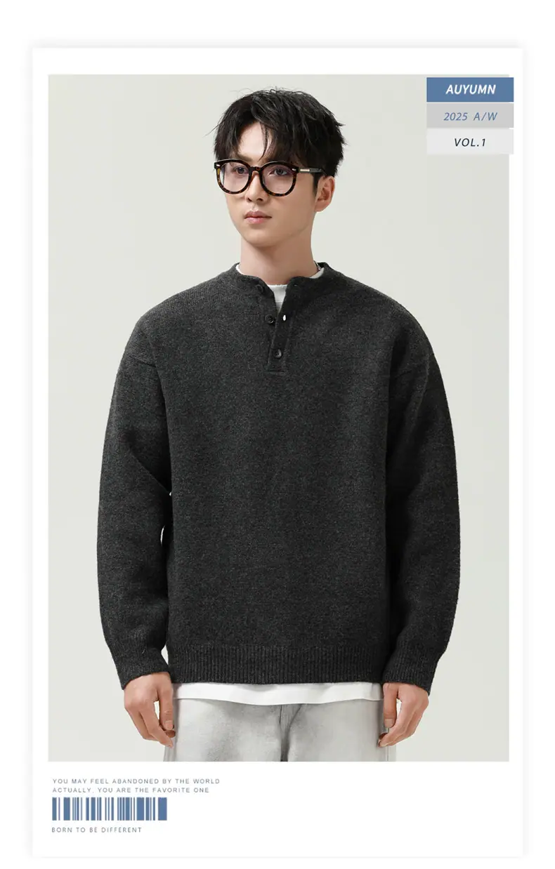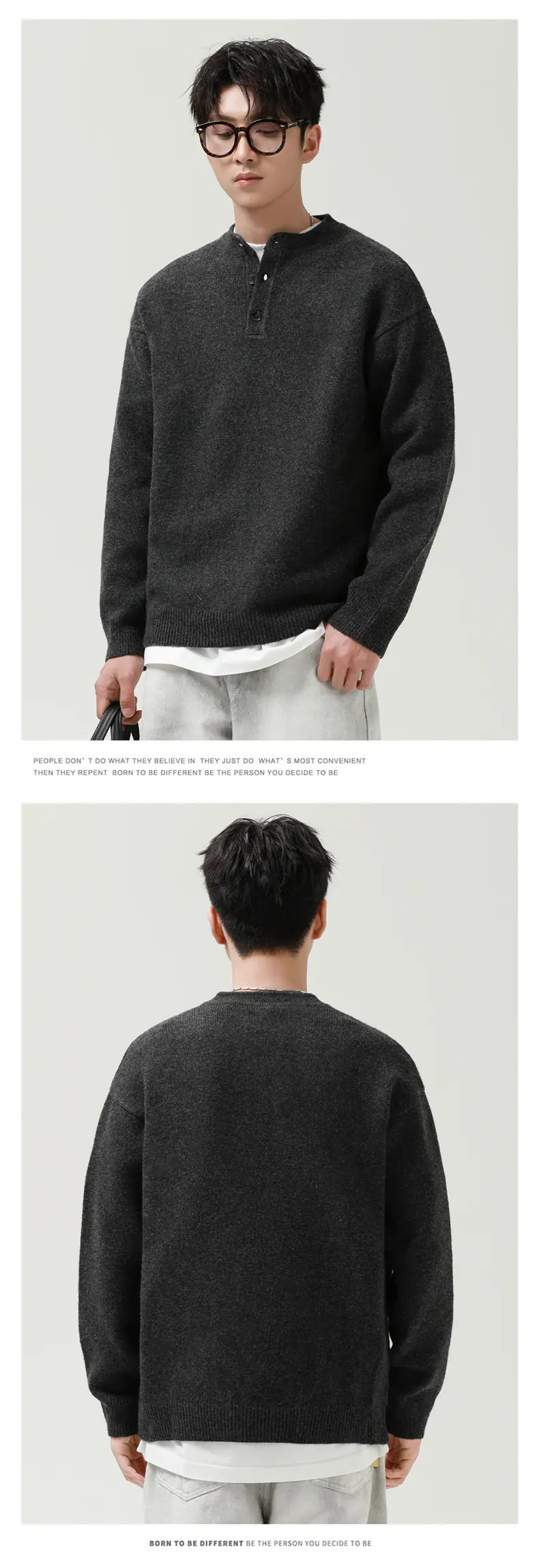 Suéter de punto para hombre con cuello redondo y tres botones 2025 otoño nuevo moda para hombre casual moderno minimalista top punto
