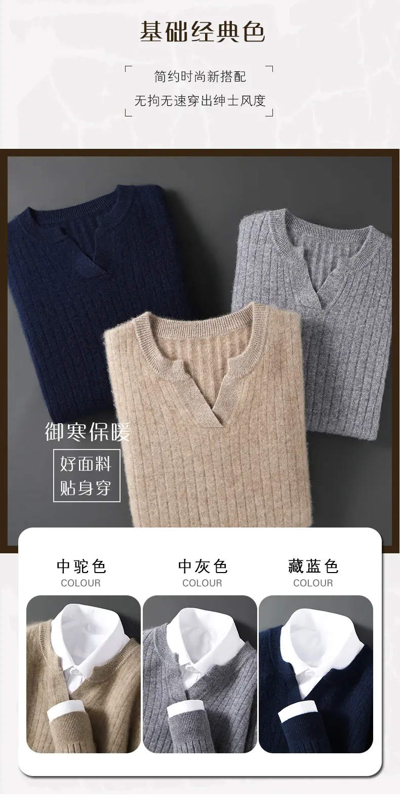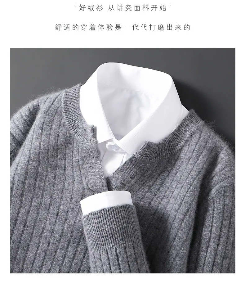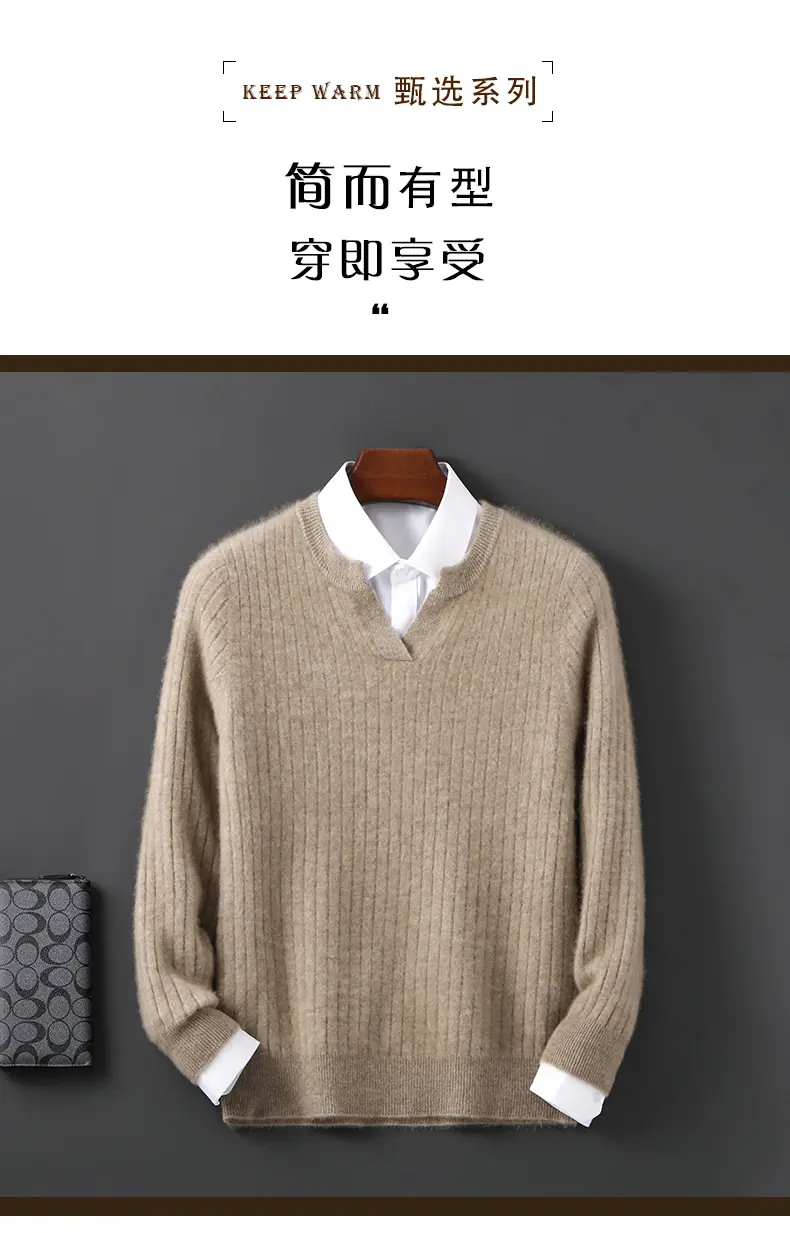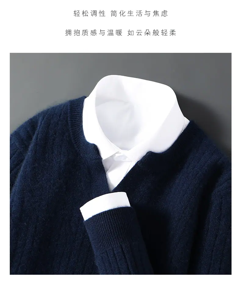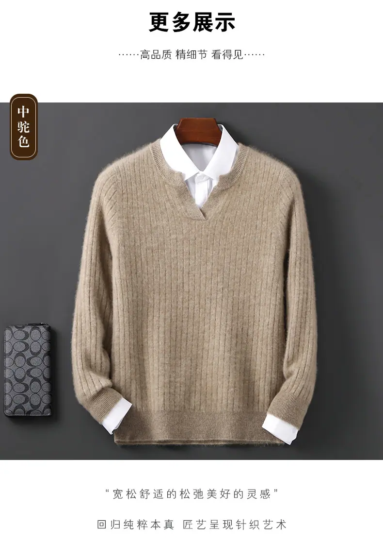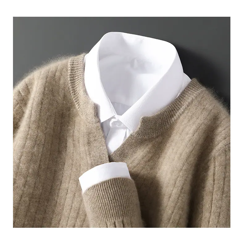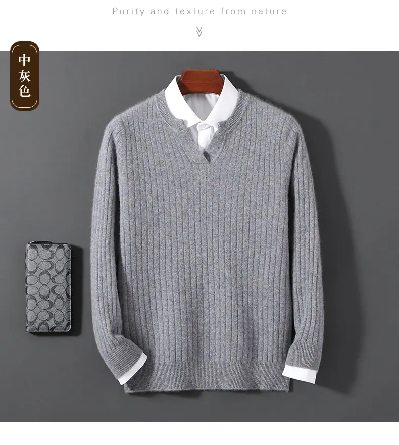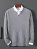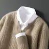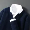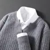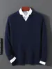 Suéter Nuevo Otoño/Invierno 100% Lana para Hombre Cuello en V Color Sólido Versátil Suelto Manga Larga Casual Tejido Jacquard Camisa Base
