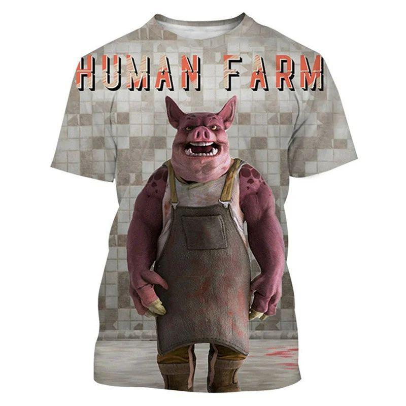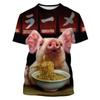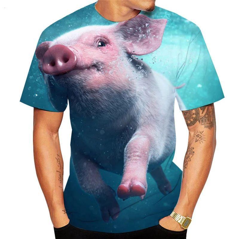 Playera para Hombre con Estampado Digital 3D de Cerdo Tocando la Guitarra Divertida Verano Animal Cuello Redondo Manga Corta Casual Cómoda