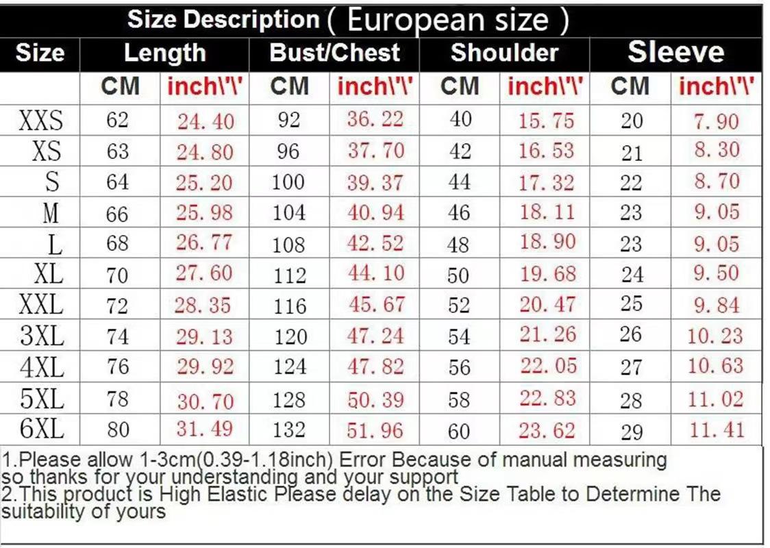 XXS, XS, S, M, L, XL, 2XL, 3XL, 4XL, 5XL, 6XL