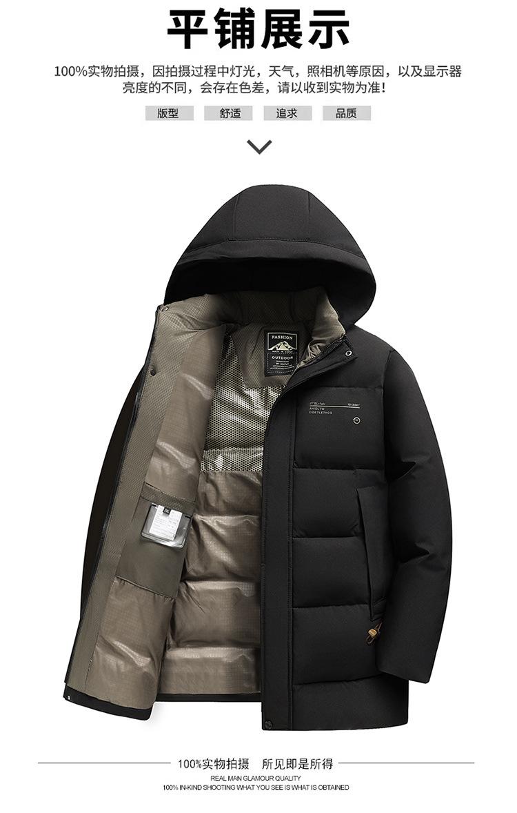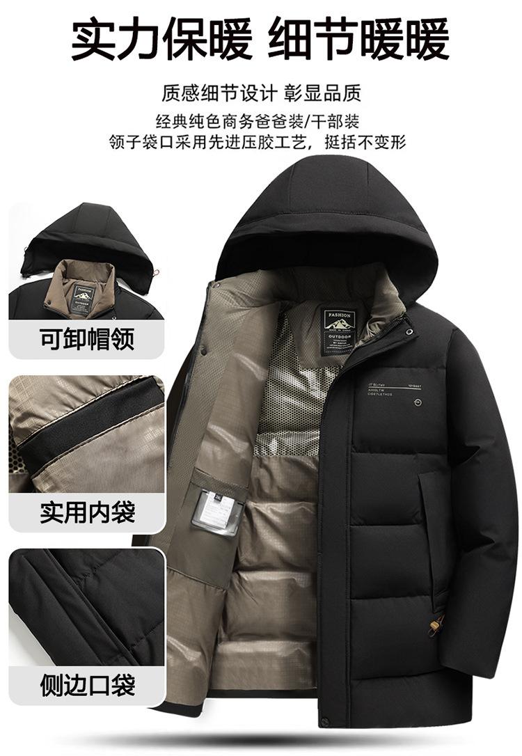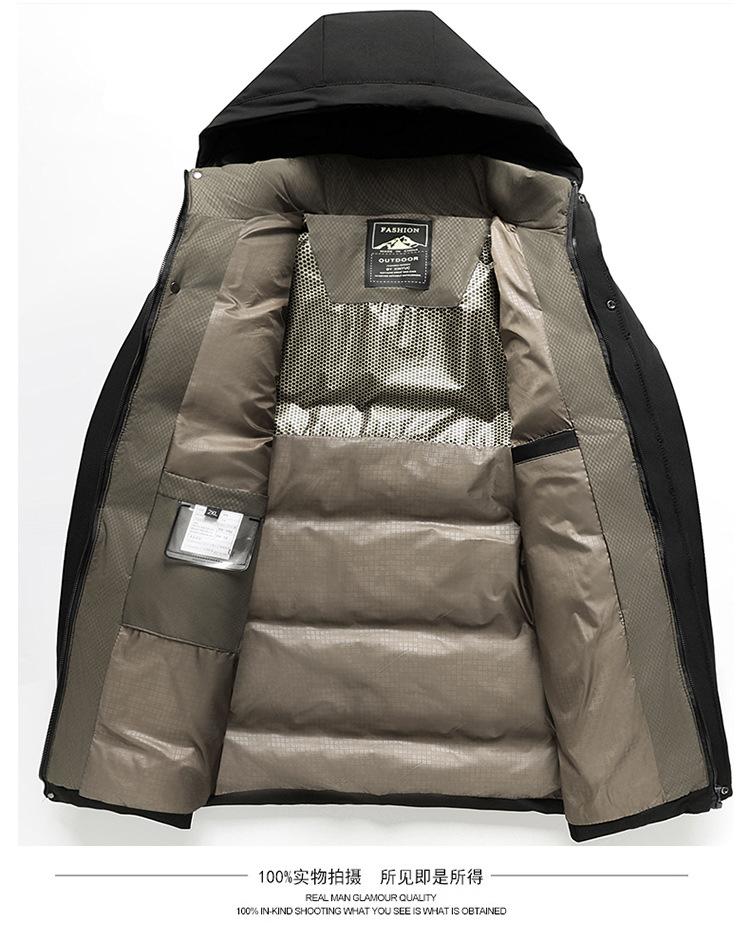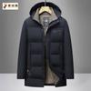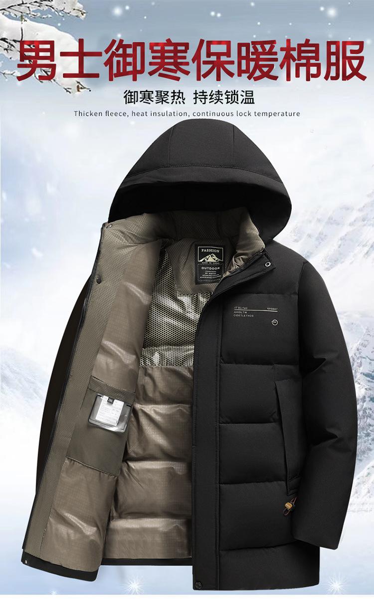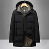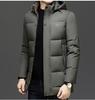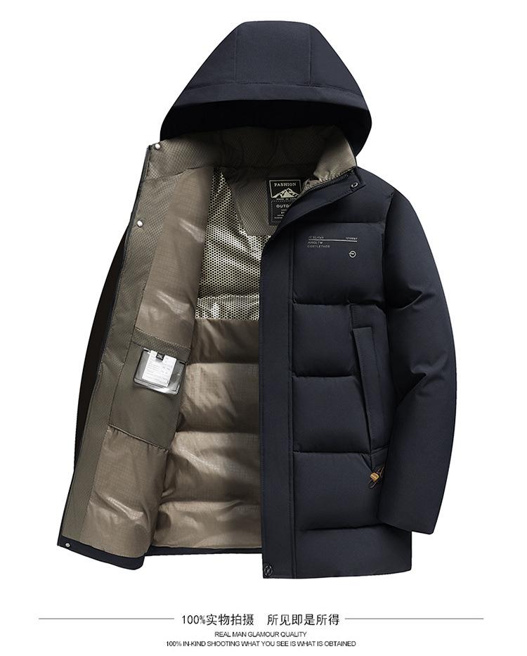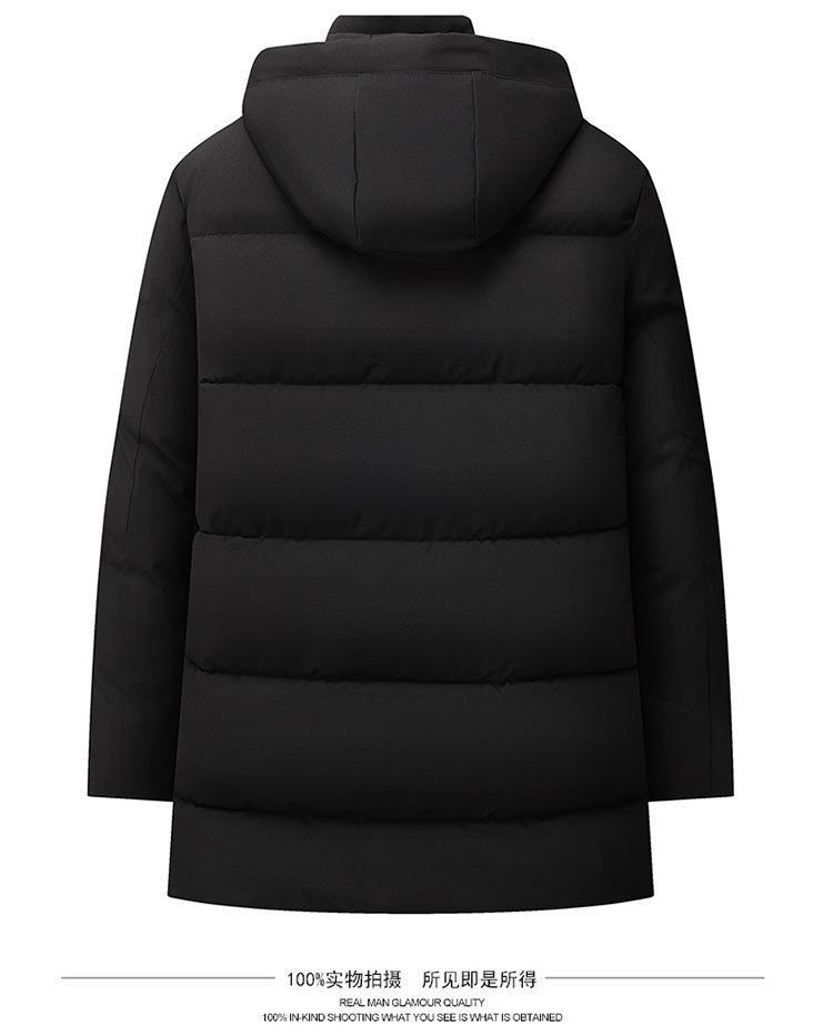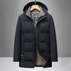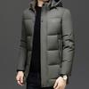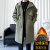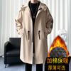 Abrigo nuevo de longitud media con capucha para hombre 2025, casual versátil de corte ajustado, cálido, color sólido, grueso, de algodón