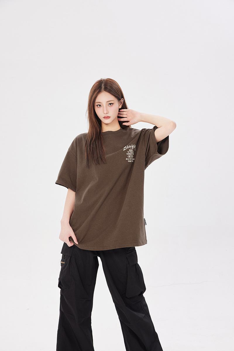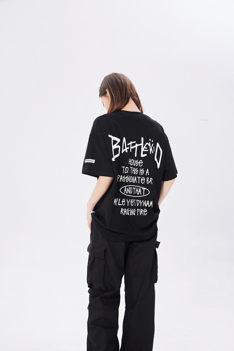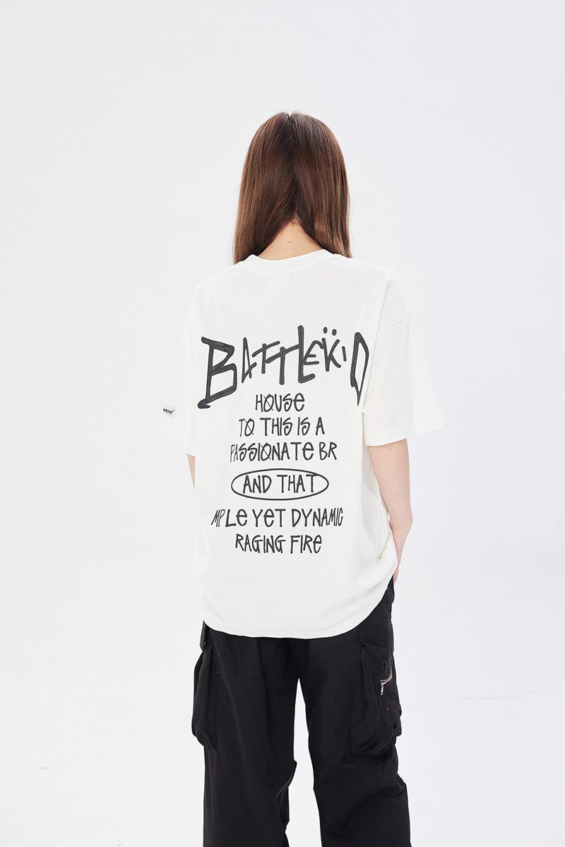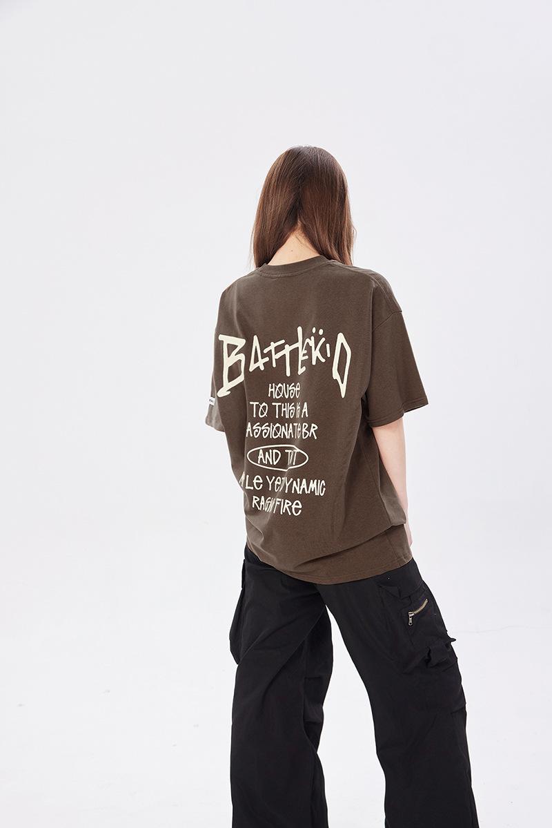 Moda Nacional Americano Verano Suelto Cuello Redondo Pareja Manga Corta Top Bordado Cuello Redondo Calle Hip Hop Pesado Manga Corta Camiseta