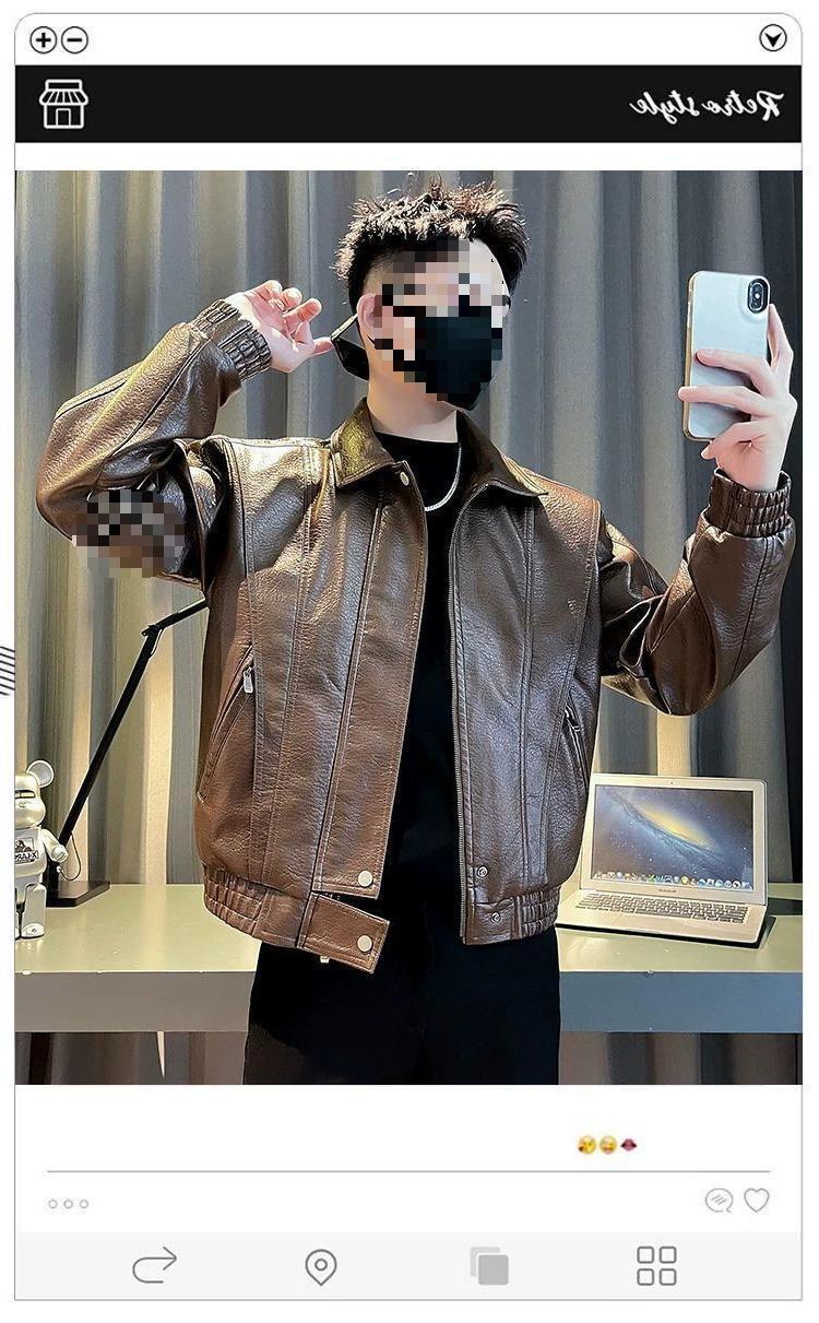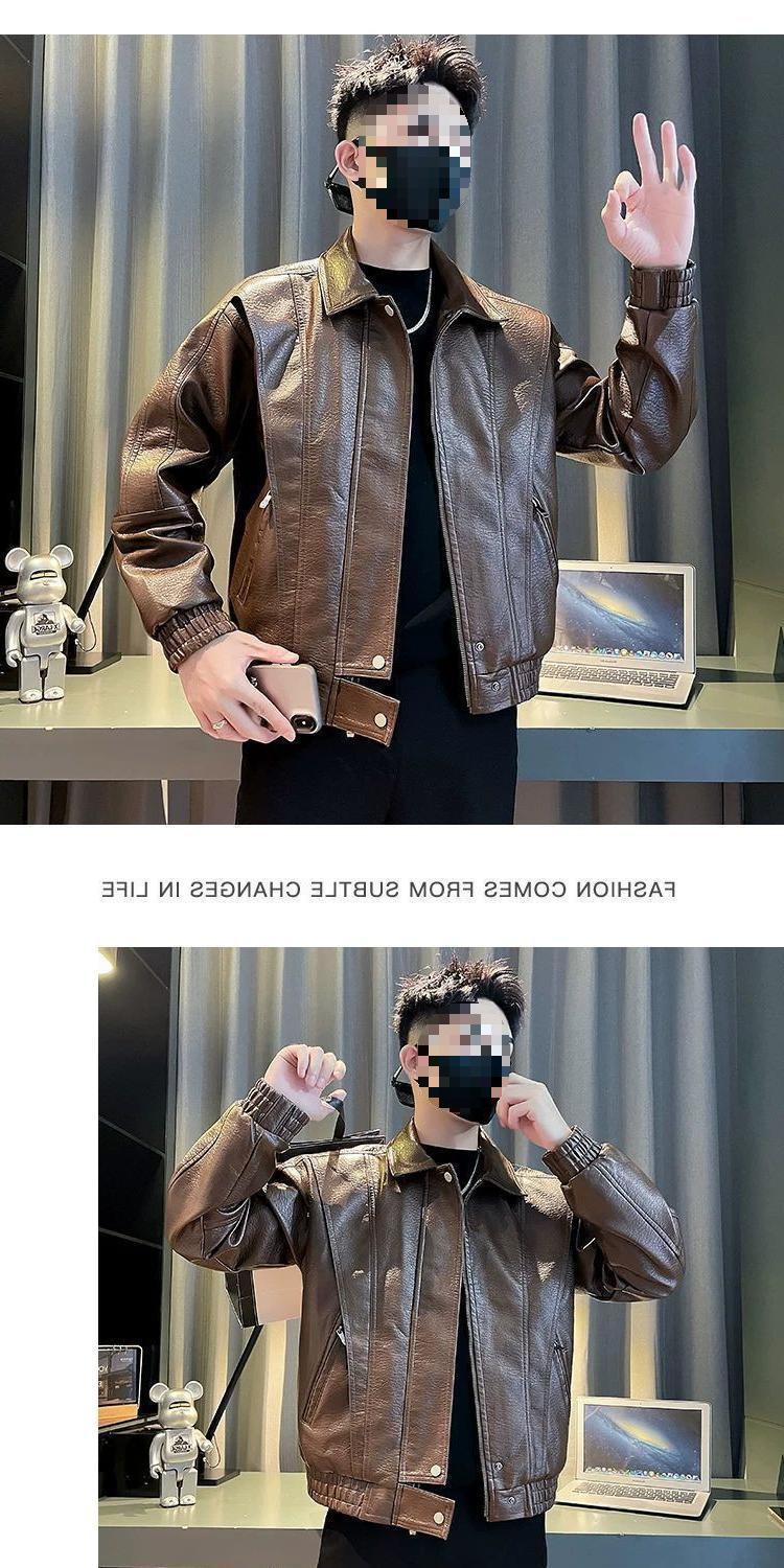 Chaqueta de cuero PU pícaro guapo abrigo pesado chaqueta cuero casual moderno diseño de motocicleta primavera y otoño ropa exterior sentido de hombre ropa de otoño