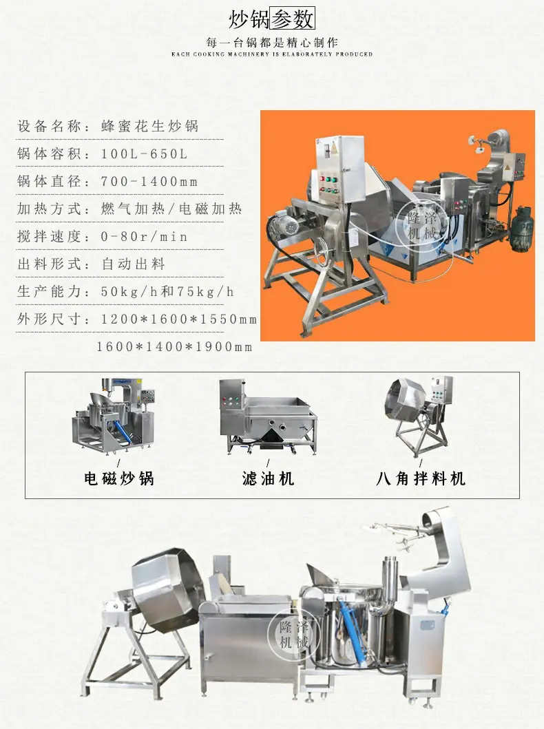 Equipo para procesamiento de almendras Máquina todo en uno totalmente automática para freír y glasear con azúcar Equipada con un conjunto completo de equipos