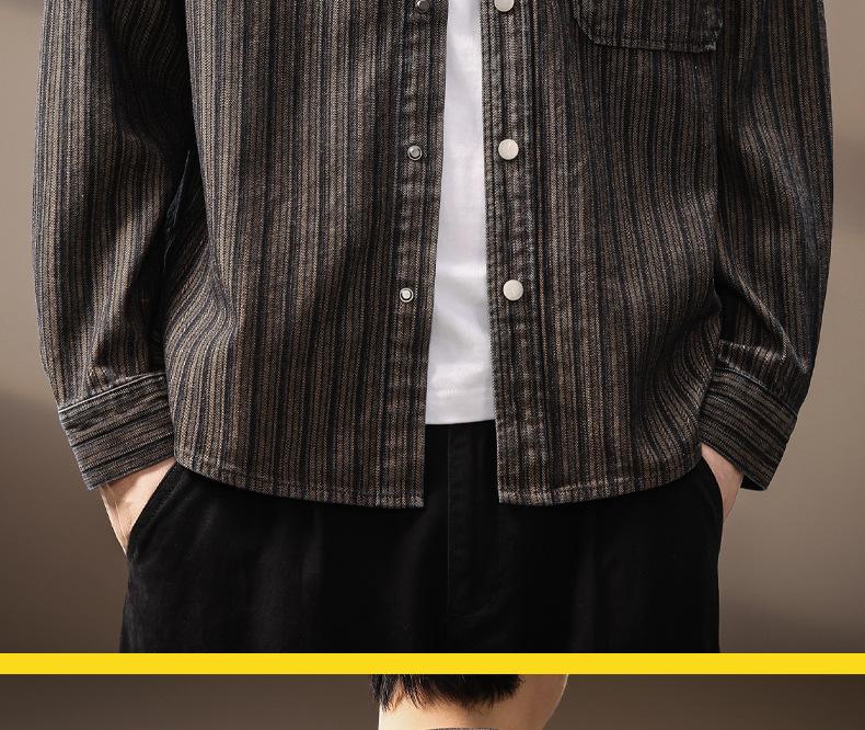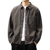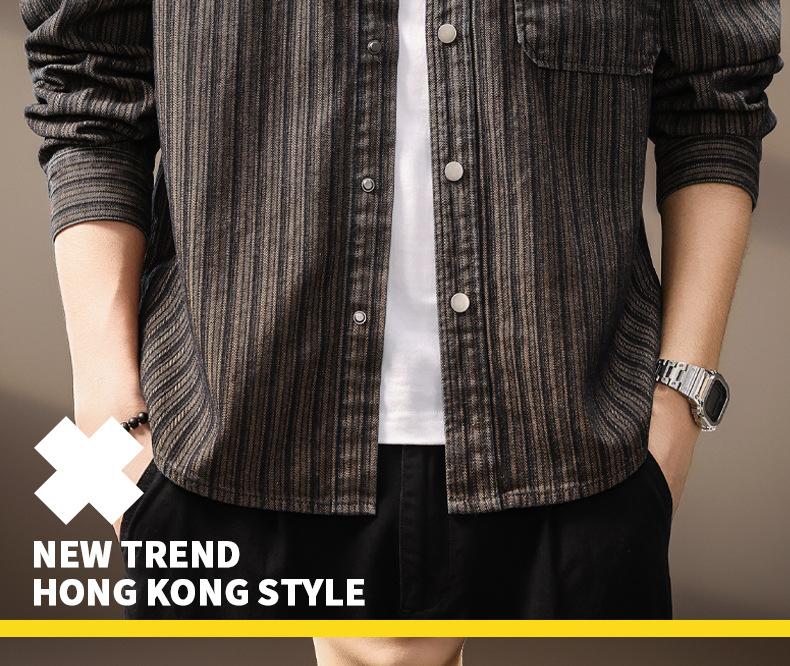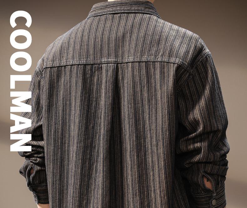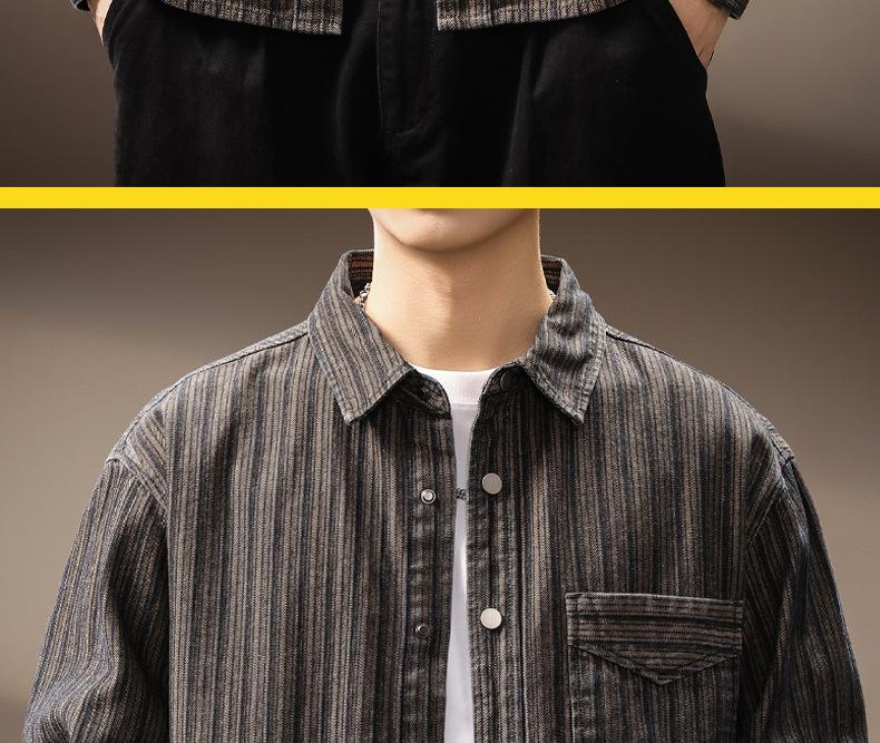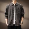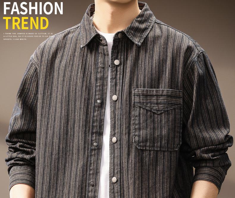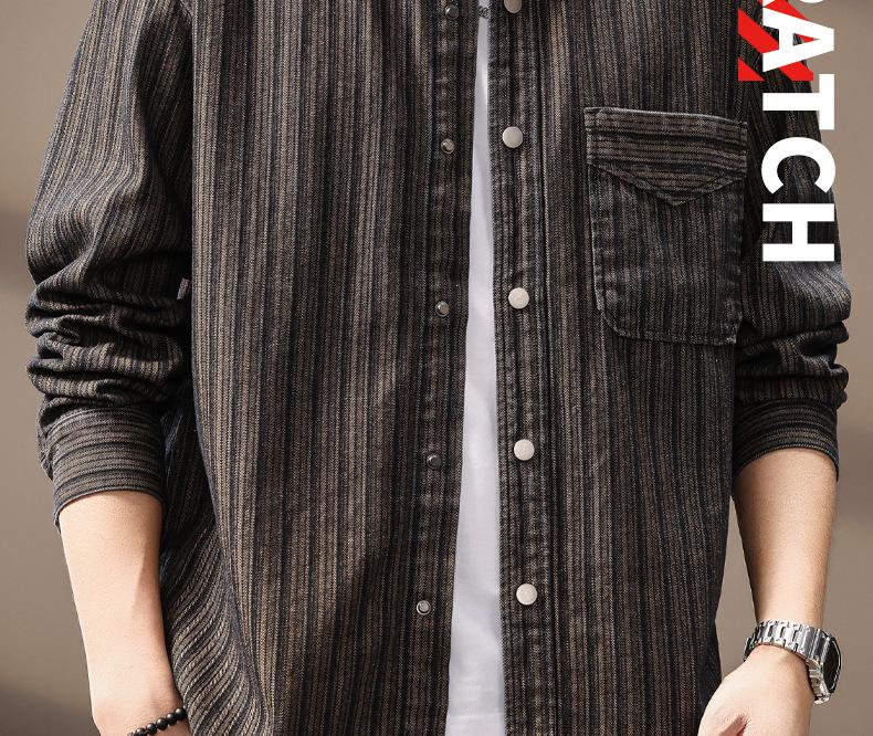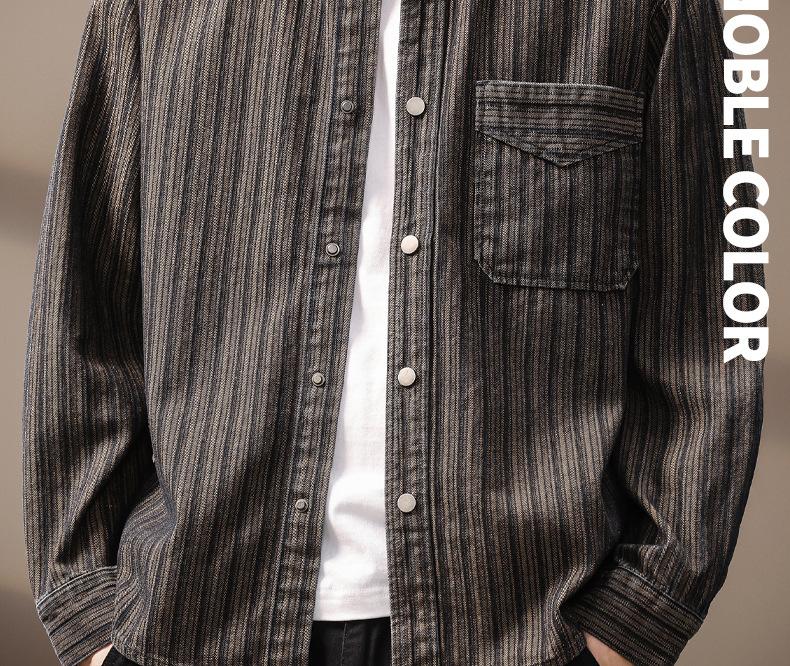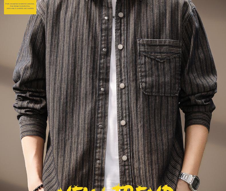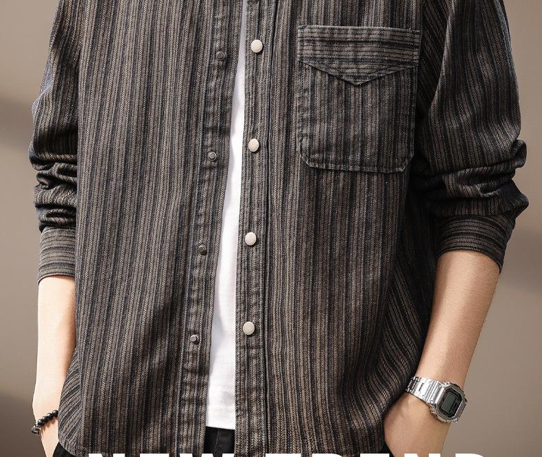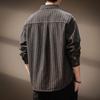 Camisa de Manga Larga Jacquard a Rayas Retro Americana de Gama Alta para Hombre Otoño Suelta Cuello Vuelto Casual Ropa de Trabajo Chaqueta Camisa Tendencia