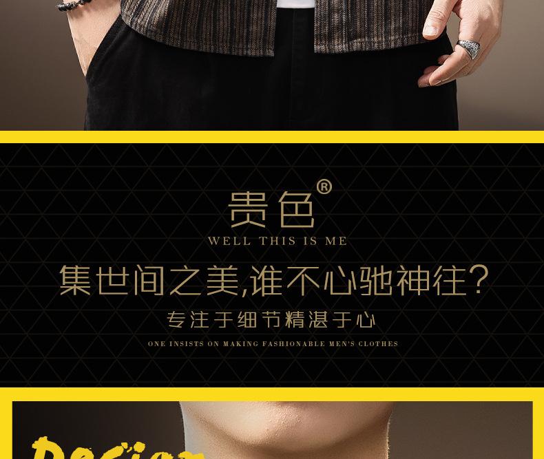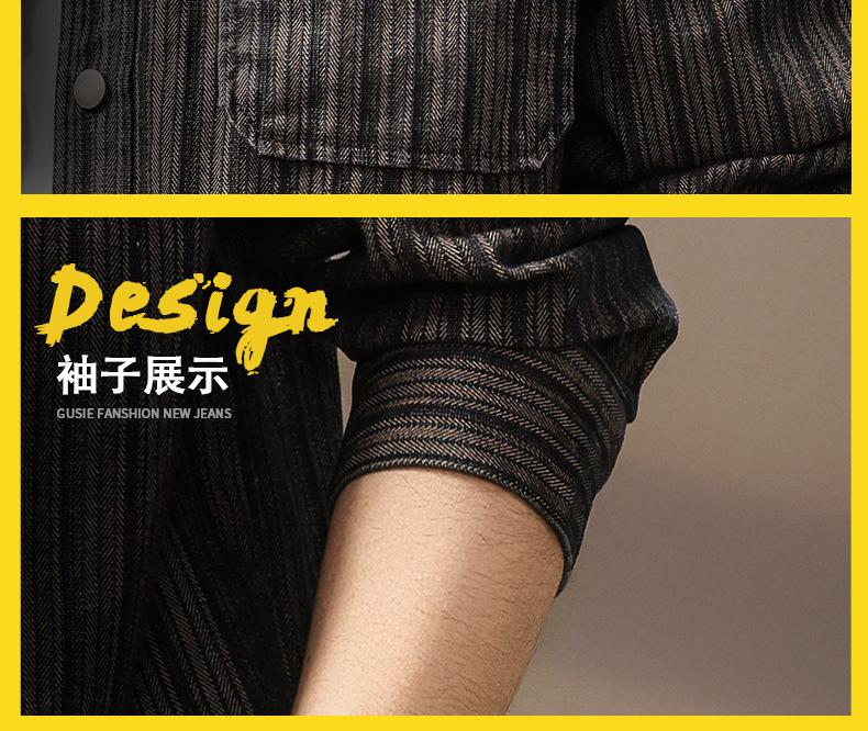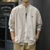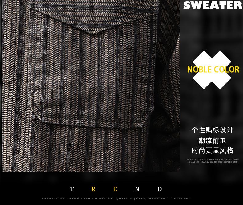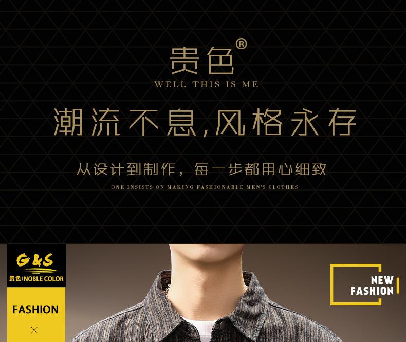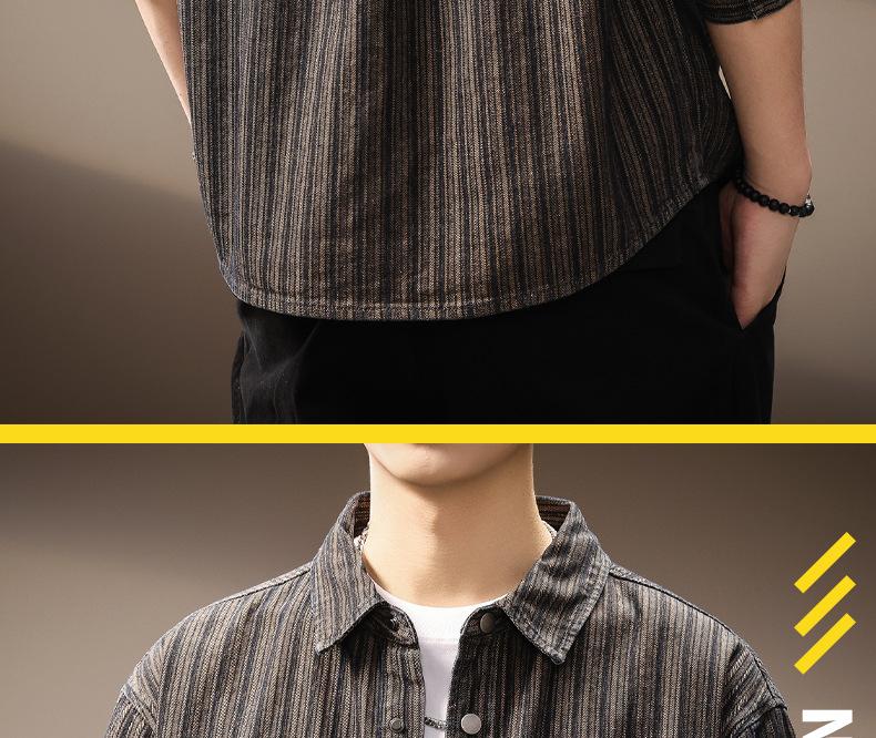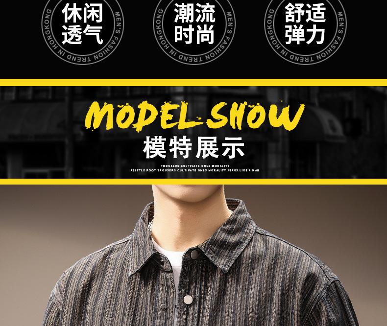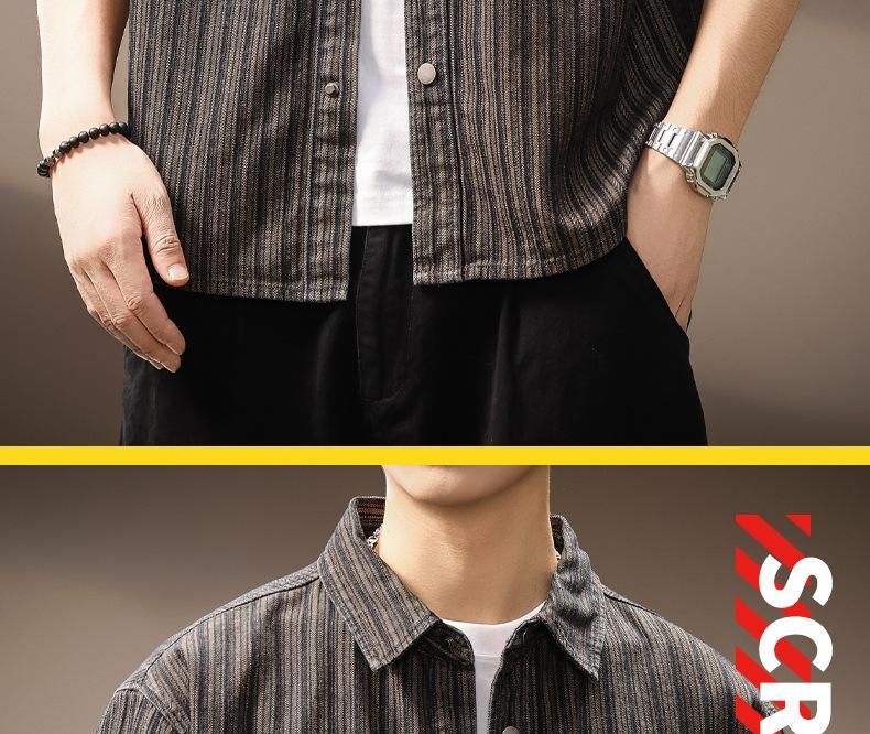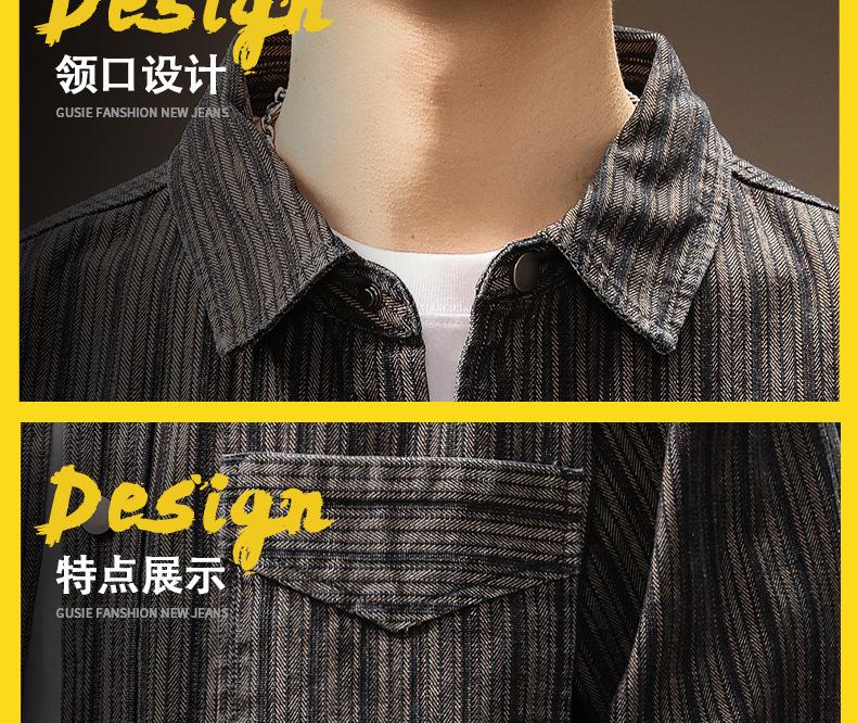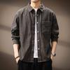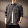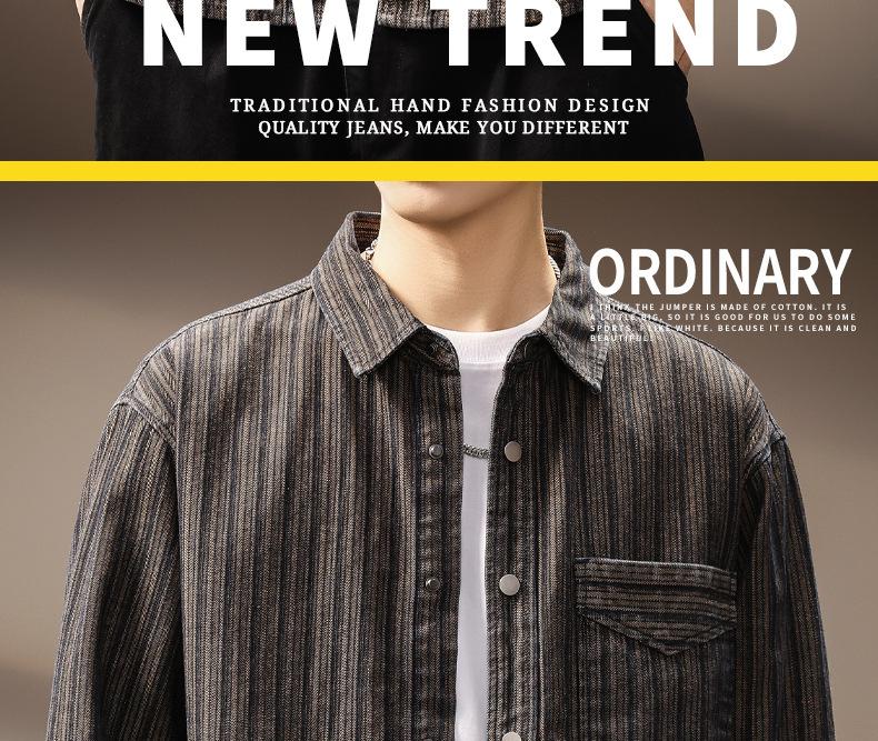 Camisa de Manga Larga Jacquard a Rayas Retro Americana de Gama Alta para Hombre Otoño Suelta Cuello Vuelto Casual Ropa de Trabajo Chaqueta Camisa Tendencia