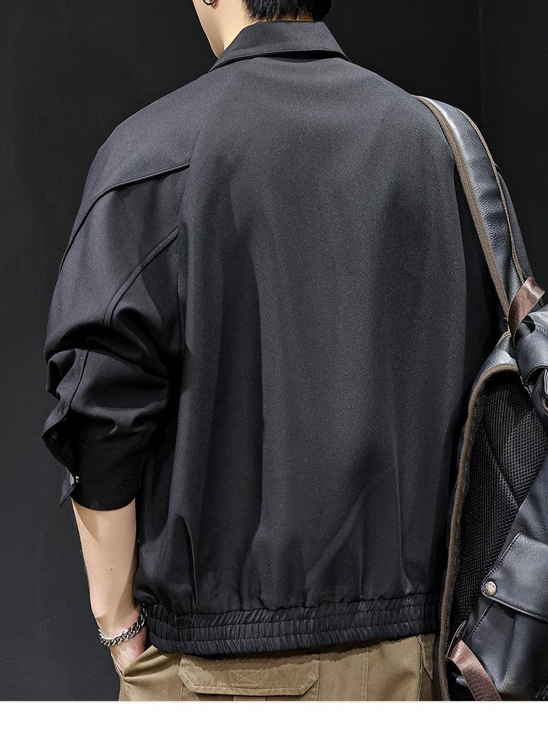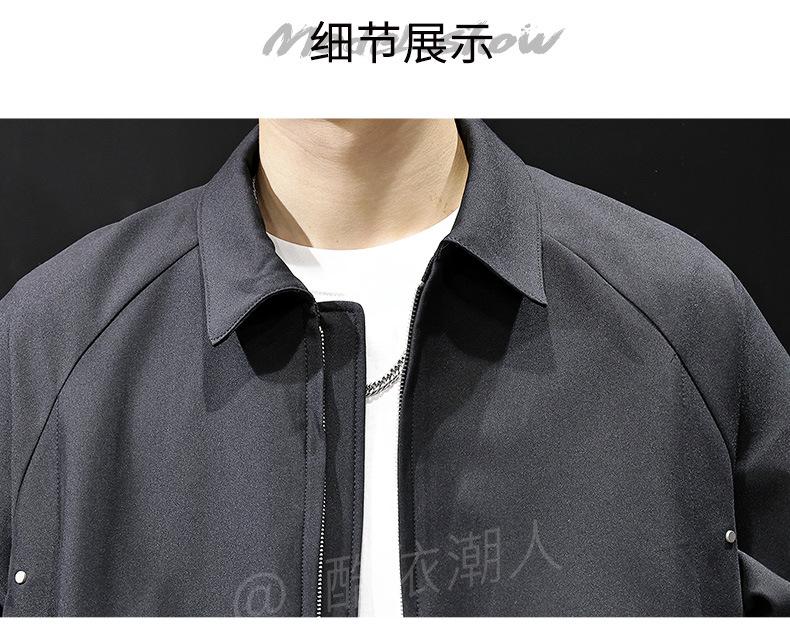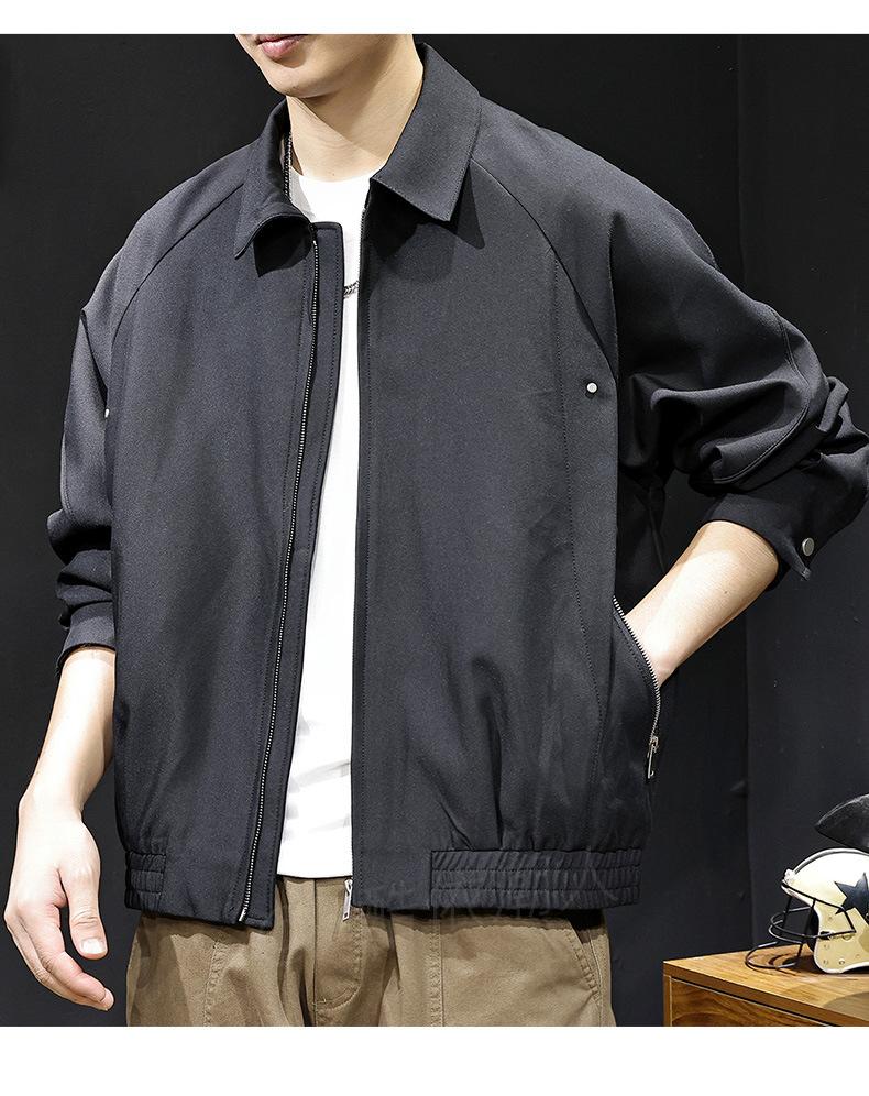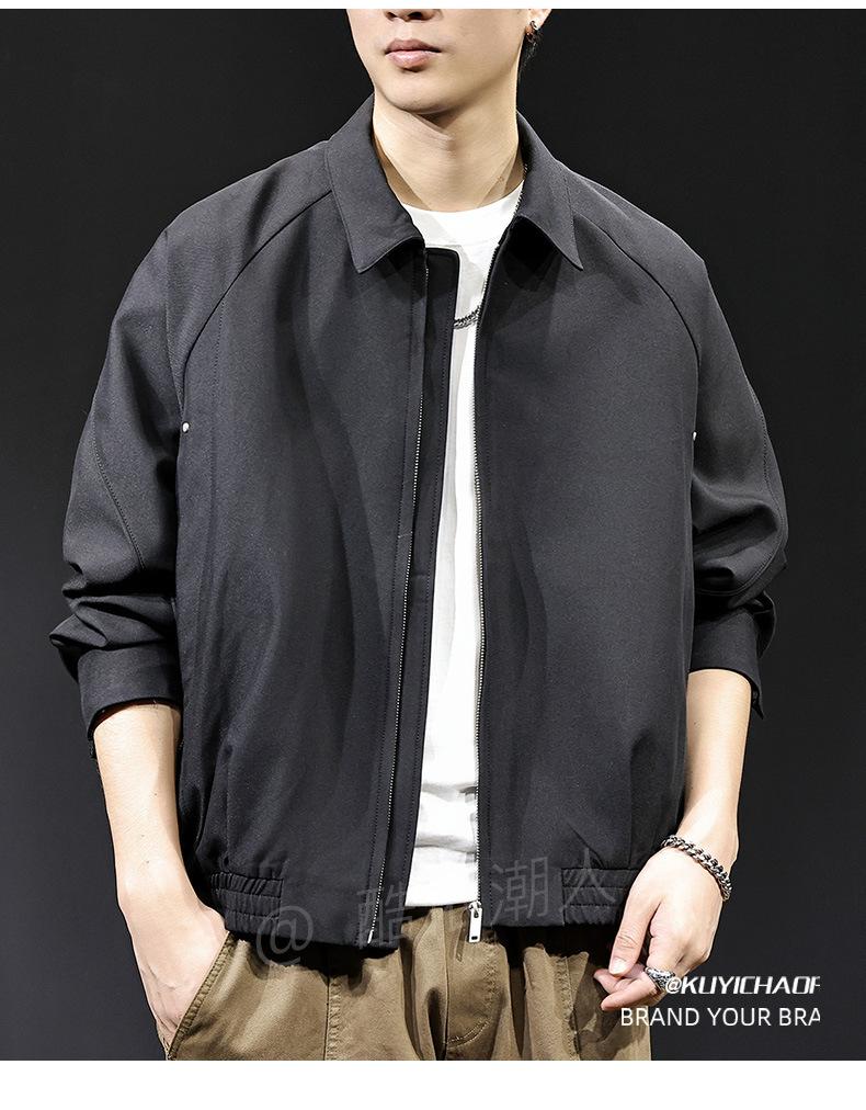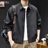 Chaqueta Casual de Otoño con Bolsillo Americano y Cierre de Cremallera para Hombre, Abrigo Delgado con Solapa 2025 Nuevo Estilo de Otoño Tendencia Marca Talla Extra