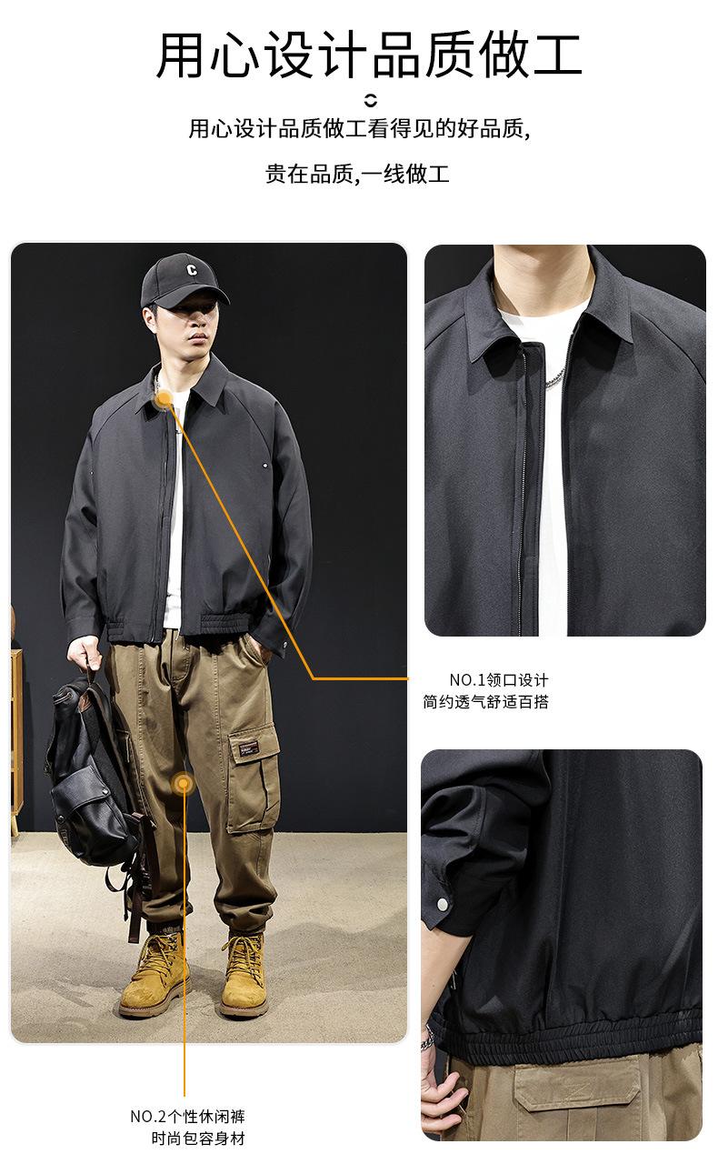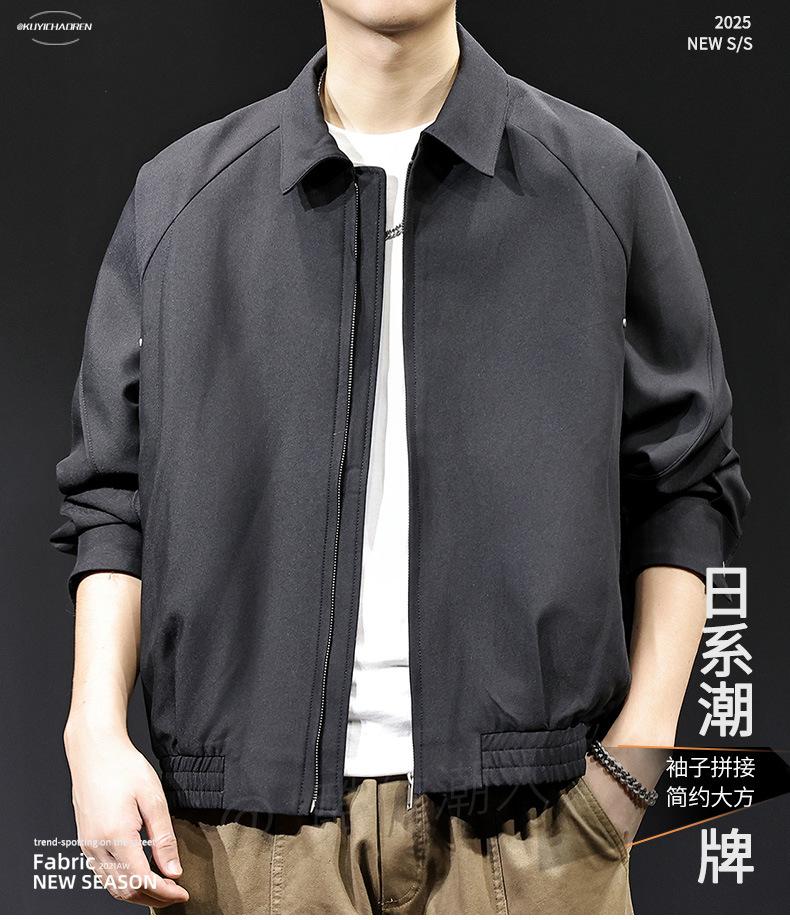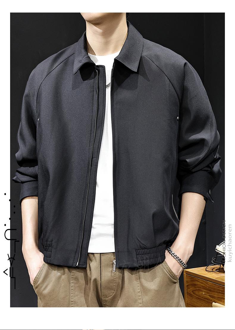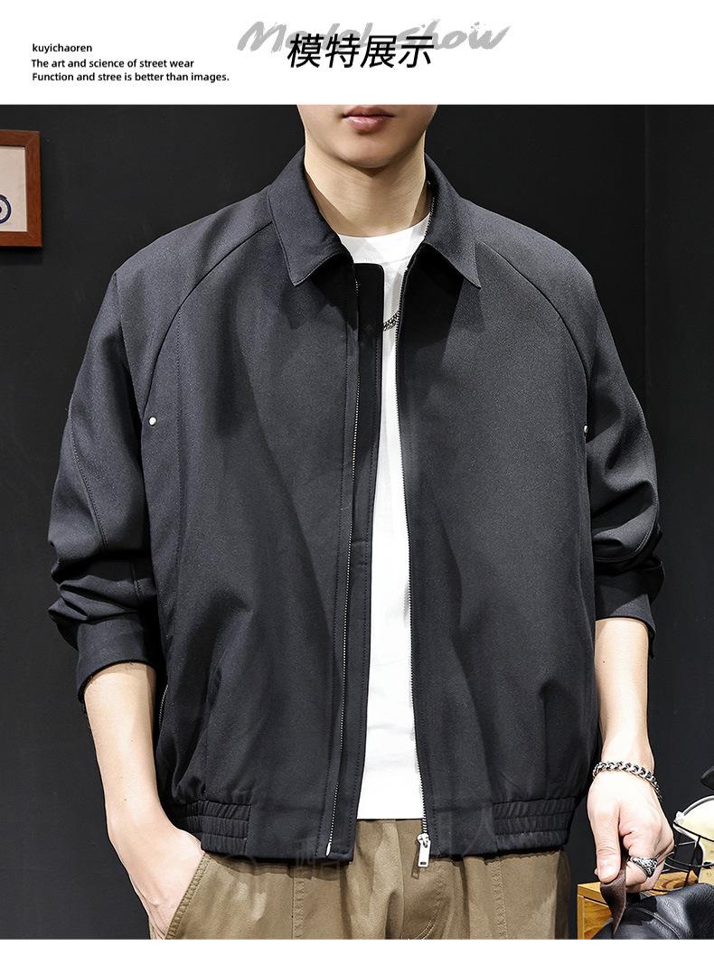 Chaqueta Casual de Otoño con Bolsillo Americano y Cierre de Cremallera para Hombre, Abrigo Delgado con Solapa 2025 Nuevo Estilo de Otoño Tendencia Marca Talla Extra