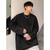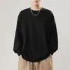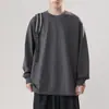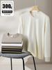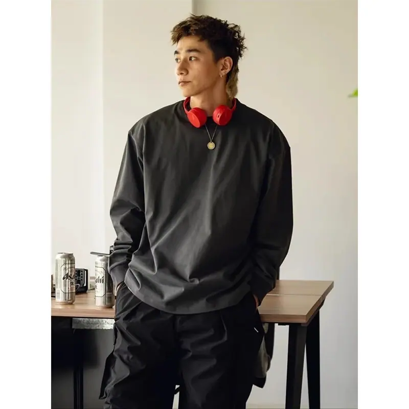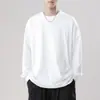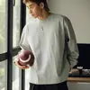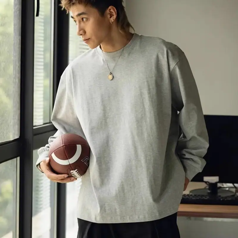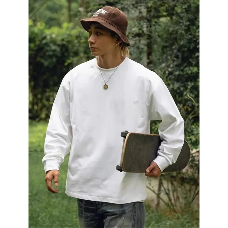 Camiseta de Manga Larga para Hombre de Algodón Puro Pesado de Color Sólido Otoño/Invierno Corte Holgado Versátil Casual Capa Base Moda Acanalada ins