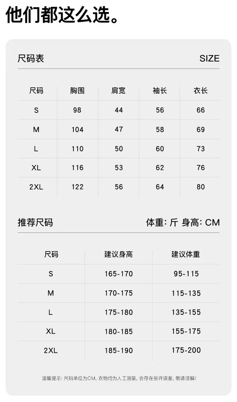 S [Recommended 95-115 catties], M [recommended 115-135 catties], L[suggest 135-155 jin], XL[suggested 155-175 ...